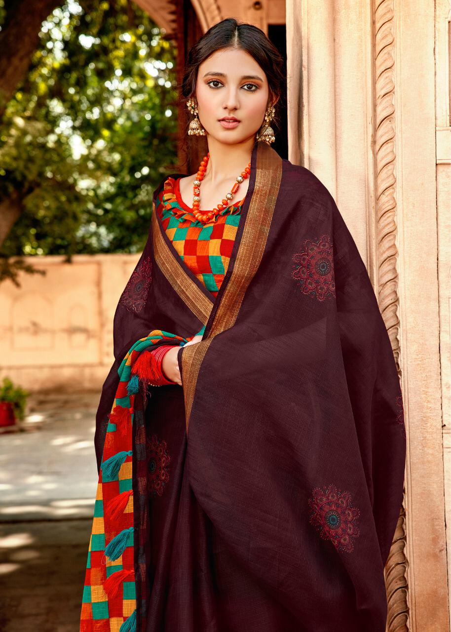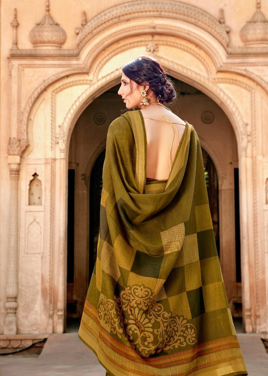 *Triveni Sarees* Catalogue Name :- *Sonam* Fabric :- *Cotton linen Print* Price :-*Rate - 651* per pcs Set to set GST 5 Percent Extra. Delivery from today |