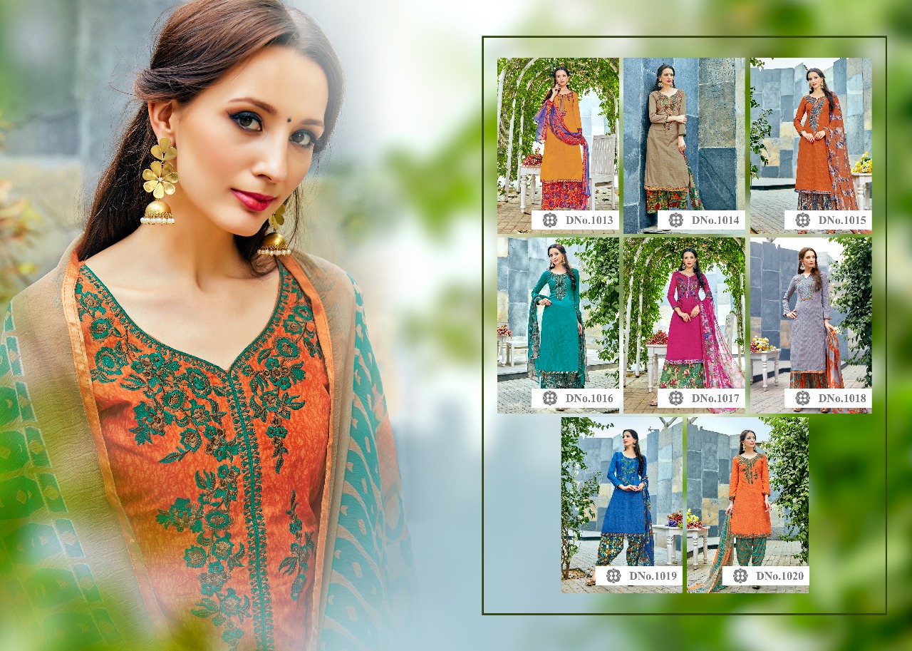 "Here we introduce our new exclusive Brand "SAGAR" And with the new brand we also launch fabulous collection New catalog patiyala ? launching Cotton-Cemric to Cemric printed with embroidery on fabrics With the Name... " SONI-KUDI" cotton collection catalog ?Quality Fabrics.... ?Best Designs.... ?Latest Colours.... ?Rich Combinations.... Fabric Details:- ? Top :-Cemrik Cotton print with embroidery on fabrics ? Bottom :- Cemrik cotton print 3.00 mitr aprox ?Duptta :- Siffon printed with four side lace ? Rate :- 5?7?5?+ G.S.T Total design -0?8? Dispatch :- Ready Have a look to this awesome catalogue & book your orders... Always with you.... order and inquiry +919898838984 |