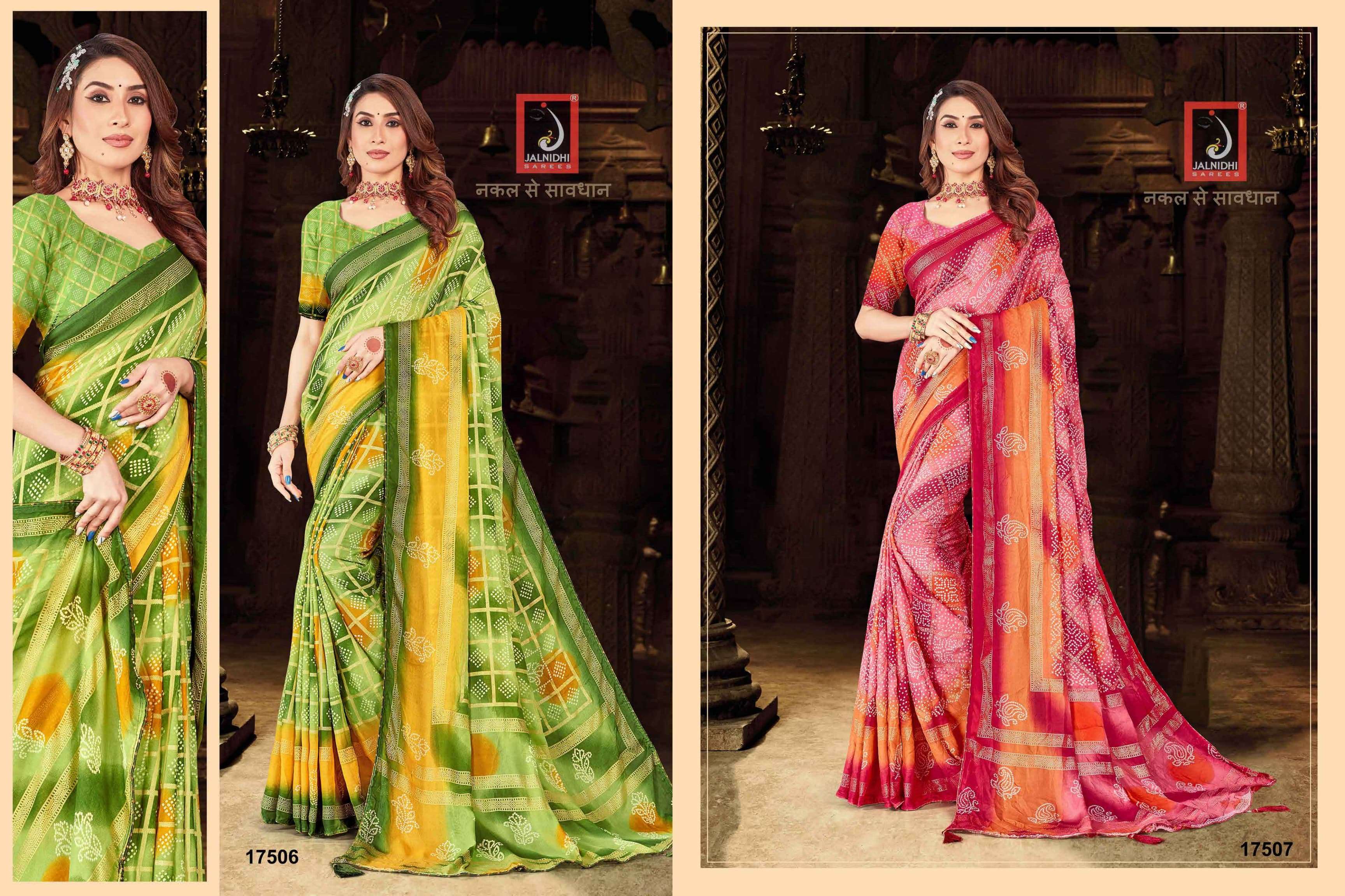 New THREE PICS Lahenga catalogue NAME - SOUNDARYA by Jalnidhi PCS - 7 PCS RATE - 1395/- FABRICS - LAHENGA JACQUARD BANDHANI PURE CHIFFON GST Extar . Single Extra 100 Type - Lehnega. Singel Pcs Available. Delivery from today |