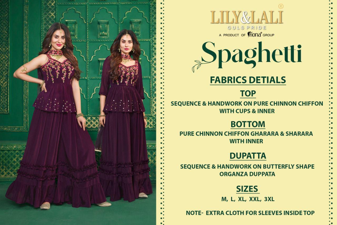 Buy Online Spaghetti By Lily And Lali Wholesaler Supplier From Surat 6 Pcs of Full Catalogue at Wholesale Price. Looking for Spaghetti By Lily And Lali Wholesaler Supplier From Surat Full Catalouge at Best Price? Buy Now Spaghetti By Lily And Lali Wholesaler Supplier From Surat at Wholesale Rate of Rs 9870 with Total 6 Pcs from authroized dealer and supplier of Brand. Cost of Each piece is just only Rs 1645 which is very low and affordable price to resale the product in your retail store ,This is Surat based Wholesale Supplier & Dealer of Brand. Click on Brand name to Know more about Brand's products.Call or Whatsapp on 9898838984 for booking or enquiry