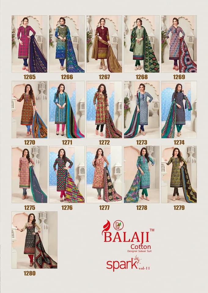Buy Online Spark Vol 11 By Balaji Cotton 1265 Series Fancy Cambric Cotton Salwar Kameez Catlog Wholesaler Surat 16 Pcs of Full Catalogue at Wholesale Price. Looking for Spark Vol 11 By Balaji Cotton 1265 Series Fancy Cambric Cotton Salwar Kameez Catlog Wholesaler Surat Full Catalouge at Best Price? Buy Now Spark Vol 11 By Balaji Cotton 1265 Series Fancy Cambric Cotton Salwar Kameez Catlog Wholesaler Surat at Wholesale Rate of Rs 4720 with Total 16 Pcs from authroized dealer and supplier of Brand. Cost of Each piece is just only Rs 295 which is very low and affordable price to resale the product in your retail store ,This is Surat based Wholesale Supplier & Dealer of Brand. Click on Brand name to Know more about Brand's products.Call or Whatsapp on 9898838984 for booking or enquiry