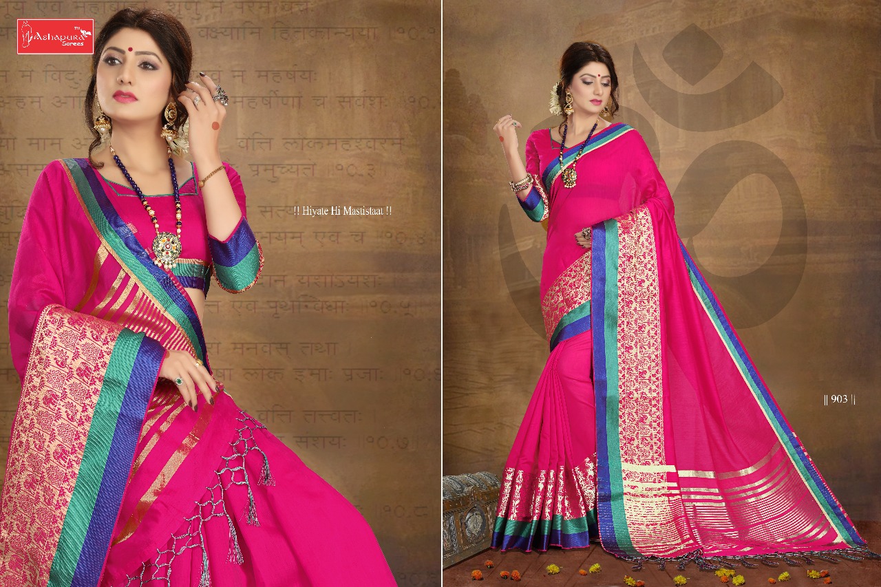 Sparkle Silk Excel Yarn Cottan Weaving Pattern Saree Surat