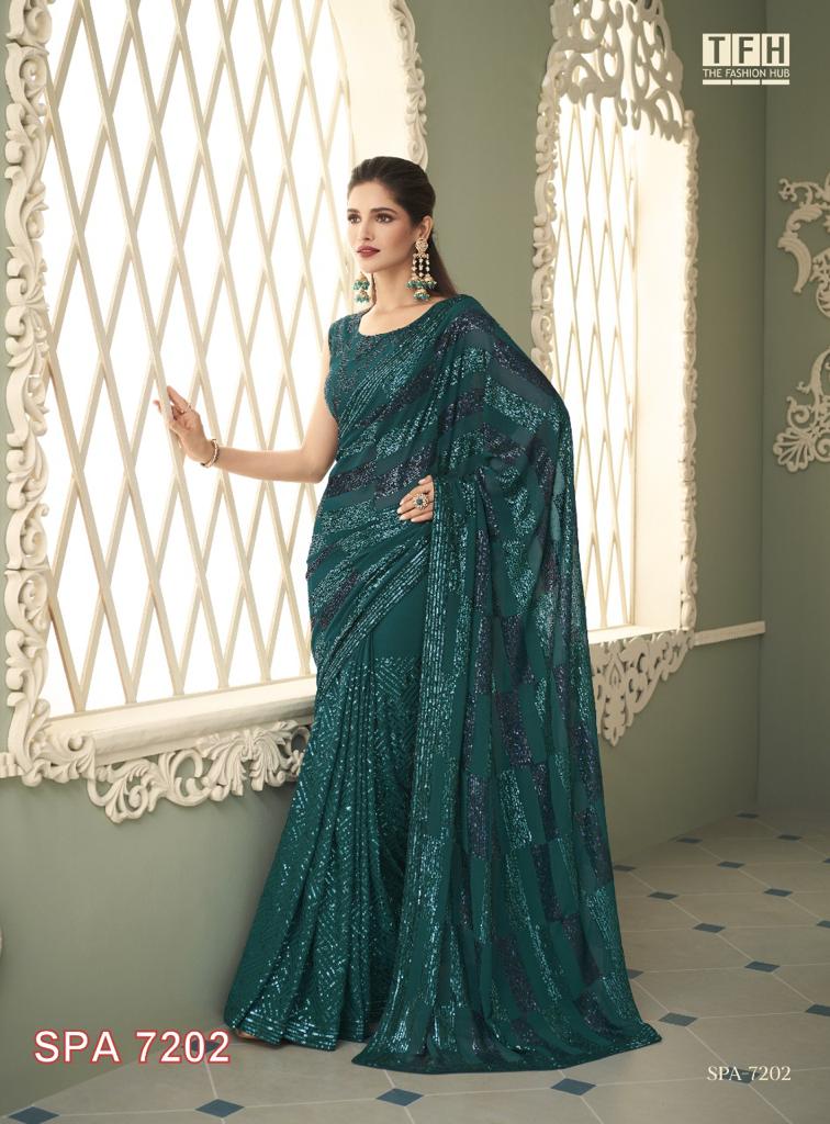 Brand :- *TFH* Catalog :- *SPARKLE 3* Fabric :- *Georgette With Sequence* *PRICE +5% GST* D.NO PRICE *7201. 2728/-* *7202. 2883/-* *7203. 2883/-* *7204. 2883/-* *7205. 2950/-* *7206. 2883/-* *7207. 2839/-* *7208. 2883/-* *7209. 2839/-* *7210. 2950/-* *7211. 2839/-* *7212. 2839/-* GST 5% EXTRA SINGLE AVAILABLE 100+singl |