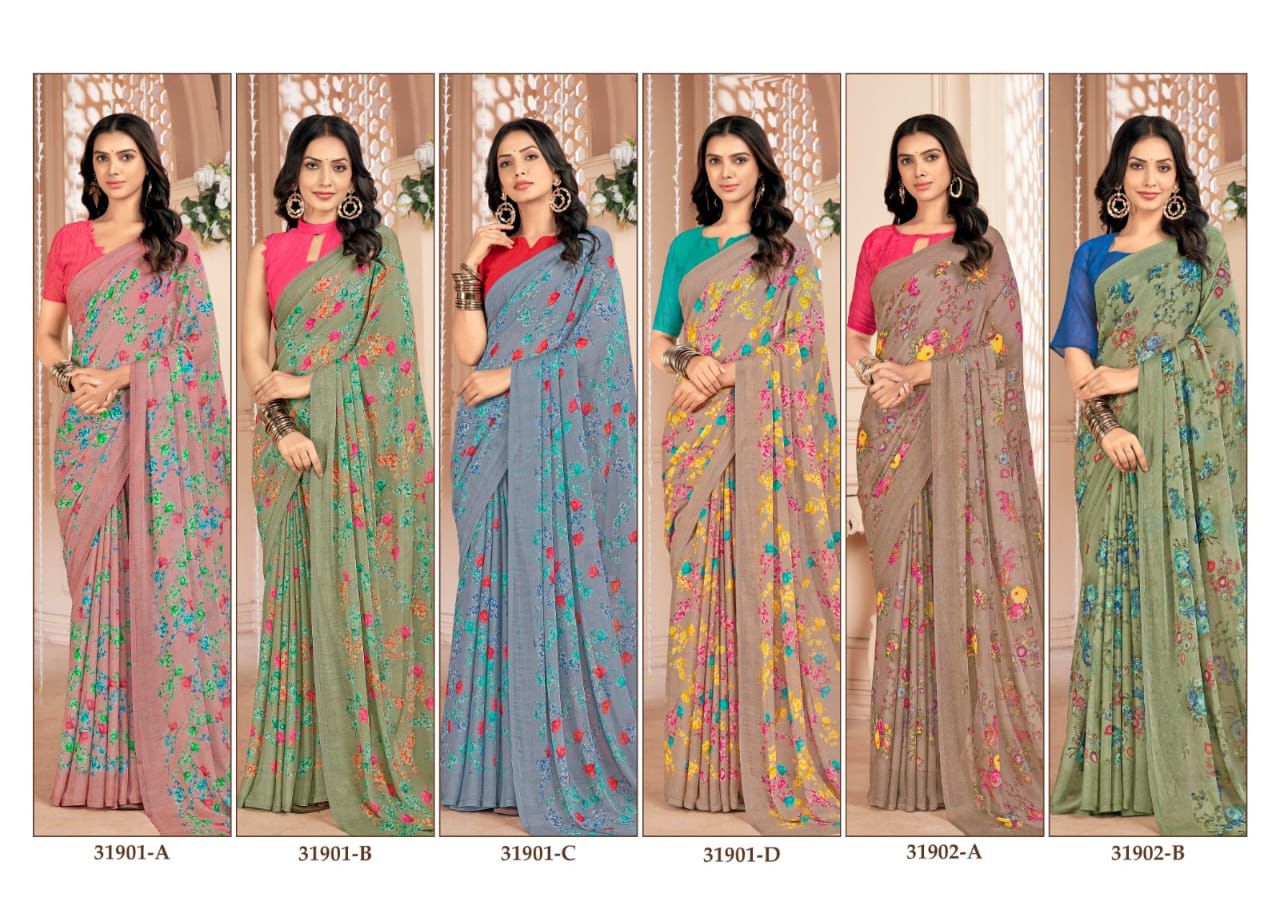 Buy Online Star Chiffon 155 By Ruchi Sarees Collection Surat 12 Pcs of Full Catalogue at Wholesale Price. Looking for Star Chiffon 155 By Ruchi Sarees Collection Surat Full Catalouge at Best Price? Buy Now Star Chiffon 155 By Ruchi Sarees Collection Surat at Wholesale Rate of Rs 5004 with Total 12 Pcs from authroized dealer and supplier of RUCHI SAREE Brand. Cost of Each piece is just only Rs 417 which is very low and affordable price to resale the product in your retail store ,This is Surat based Wholesale Supplier & Dealer of RUCHI SAREE Brand. Click on Brand name to Know more about RUCHI SAREE Brand's products.Call or Whatsapp on 9898838984 for booking or enquiry