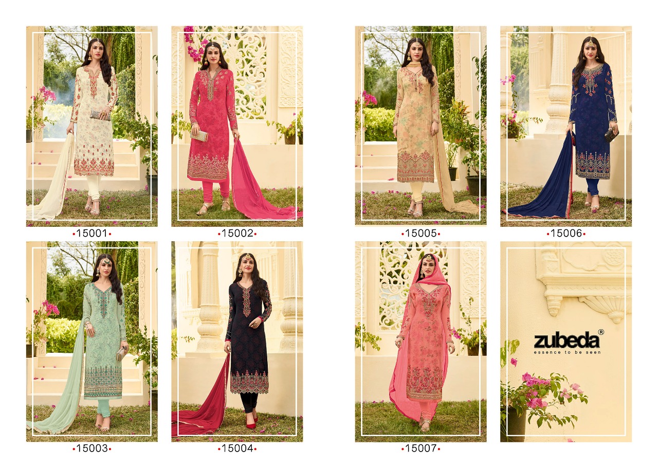 Buy Online Star Collection By Zubeda Series 15001 To 15007 Georgette Designer Party Wear Dresses Wholesale Supplier And Dealer Surat 7 Pcs of Full Catalogue at Wholesale Price. Looking for Star Collection By Zubeda Series 15001 To 15007 Georgette Designer Party Wear Dresses Wholesale Supplier And Dealer Surat Full Catalouge at Best Price? Buy Now Star Collection By Zubeda Series 15001 To 15007 Georgette Designer Party Wear Dresses Wholesale Supplier And Dealer Surat at Wholesale Rate of Rs 9065 with Total 7 Pcs from authroized dealer and supplier of ZUBEDA Brand. Cost of Each piece is just only Rs 1295 which is very low and affordable price to resale the product in your retail store ,This is Surat based Wholesale Supplier & Dealer of ZUBEDA Brand. Click on Brand name to Know more about ZUBEDA Brand's products.Call or Whatsapp on 9898838984 for booking or enquiry