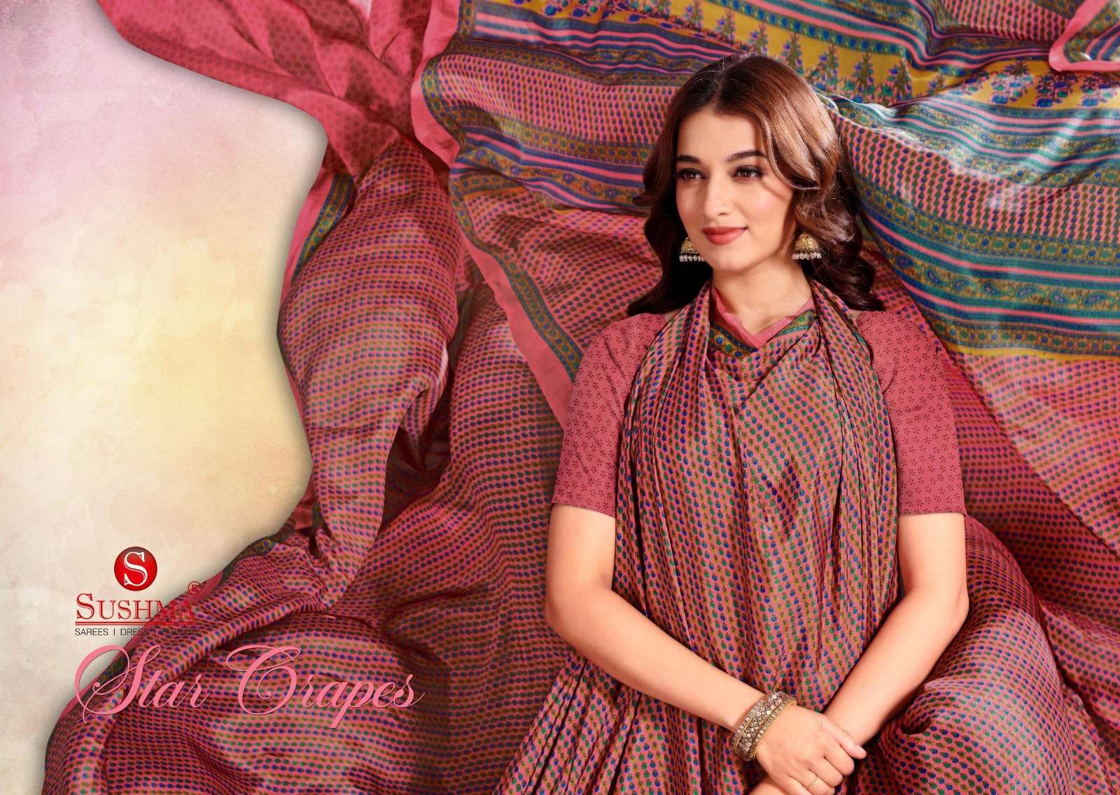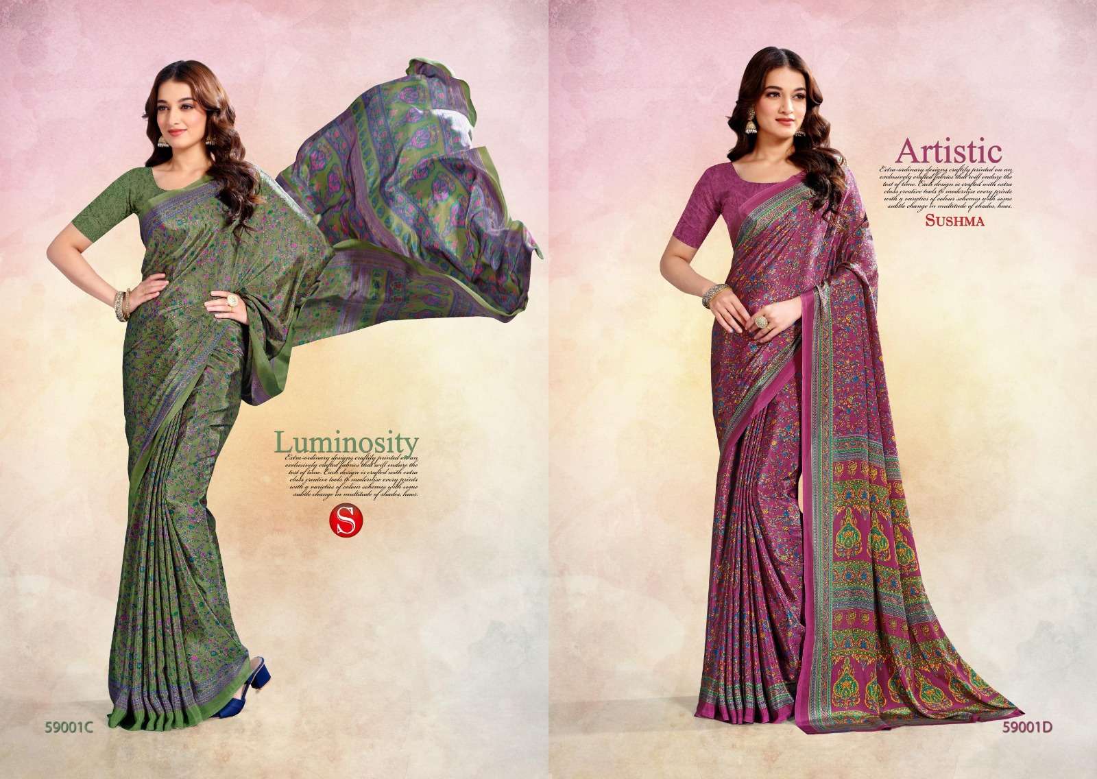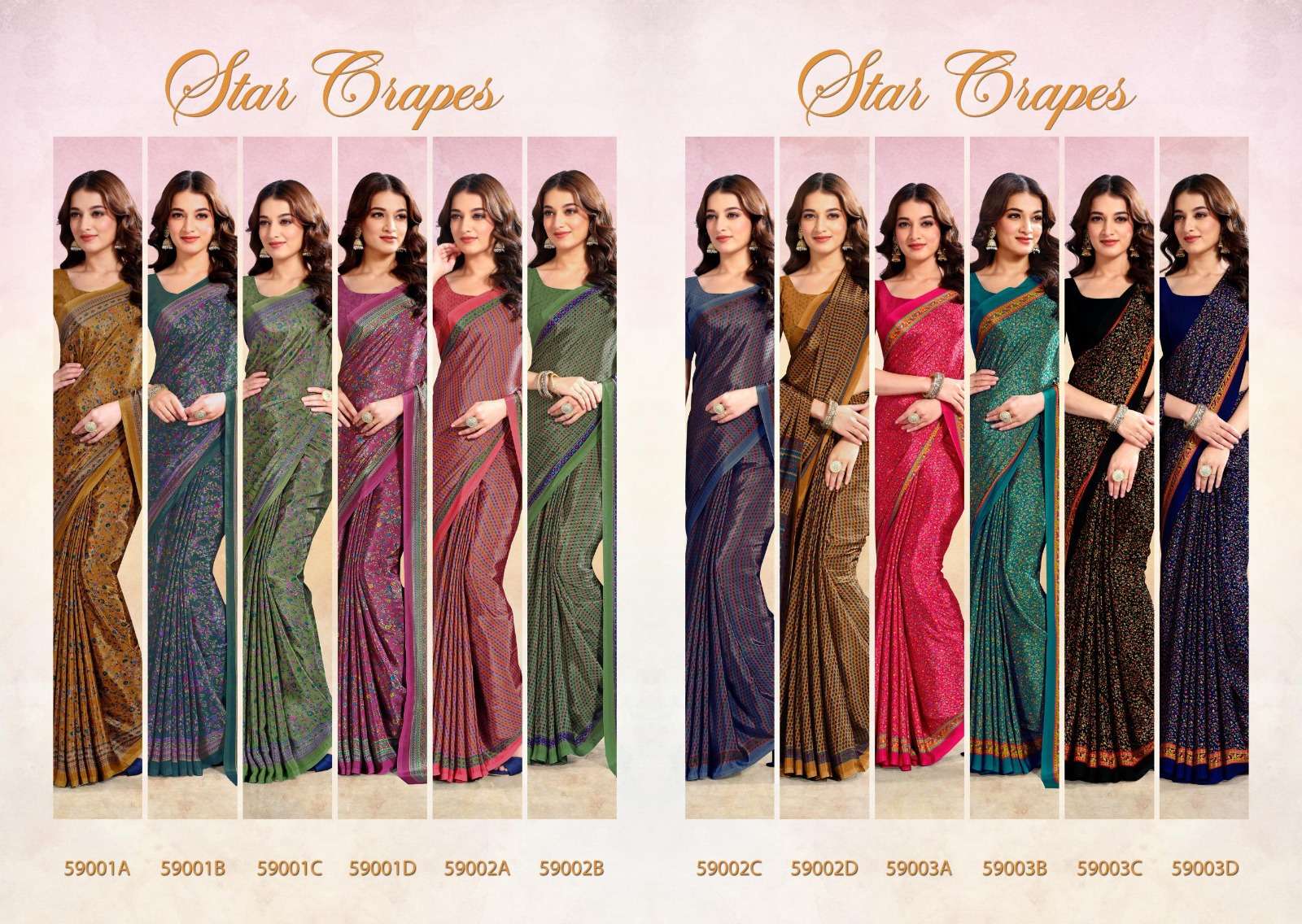 STAR CRAPE SERIES 59001A TO 59003D By SUSHMA saree Collection manufacturer surat