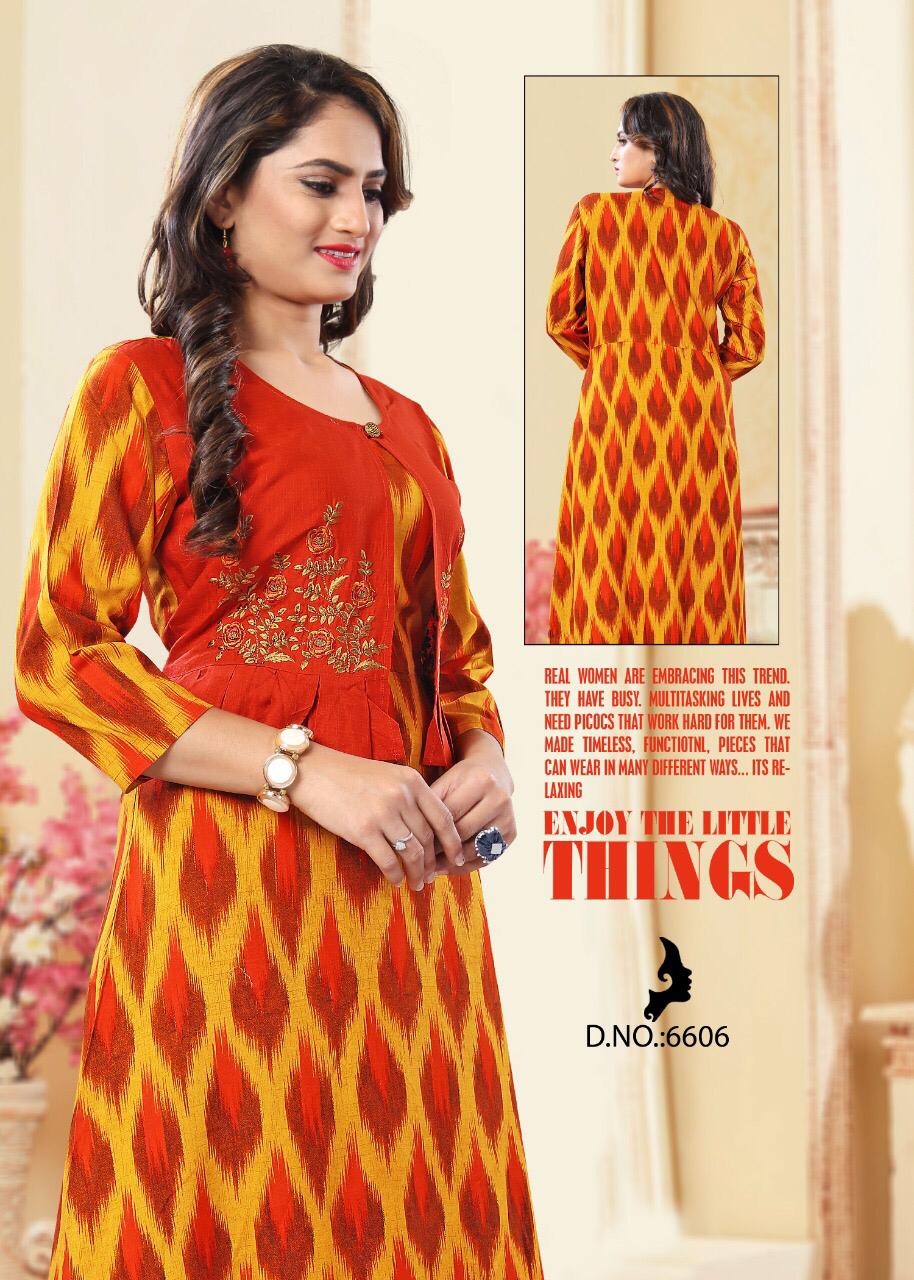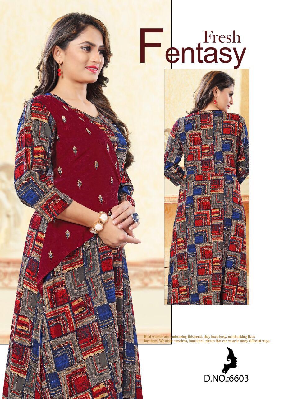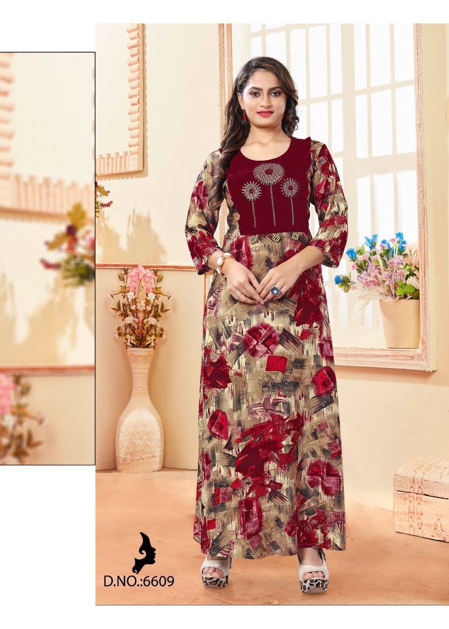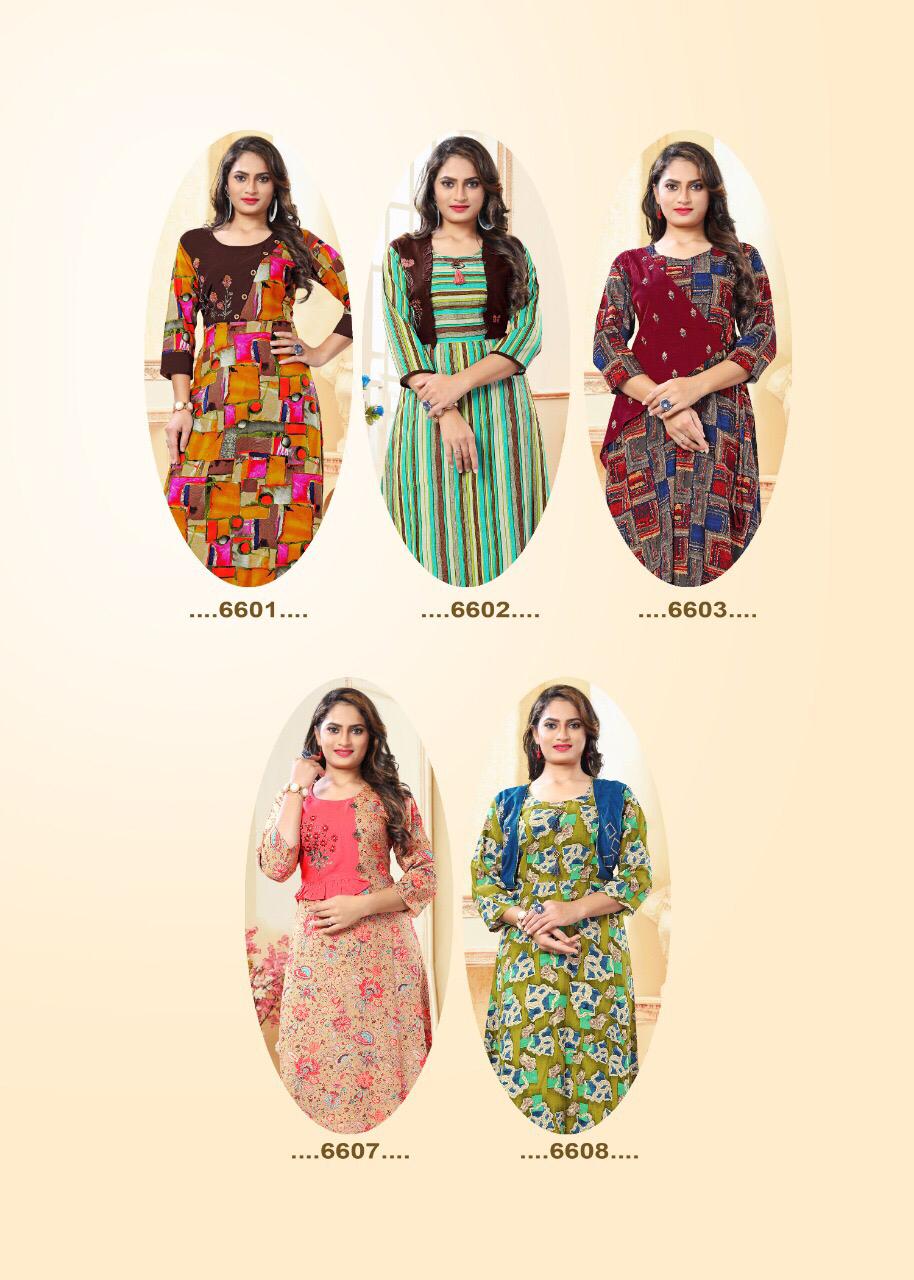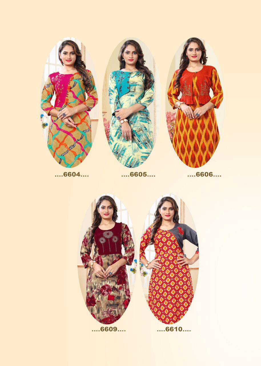 Buy Online Stardom By Ariza 6601 Series Fancy Reyon Printed Kurti Catlog Whllesaler Surat 10 Pcs of Full Catalogue at Wholesale Price. Looking for Stardom By Ariza 6601 Series Fancy Reyon Printed Kurti Catlog Whllesaler Surat Full Catalouge at Best Price? Buy Now Stardom By Ariza 6601 Series Fancy Reyon Printed Kurti Catlog Whllesaler Surat at Wholesale Rate of Rs 5950 with Total 10 Pcs from authroized dealer and supplier of Brand. Cost of Each piece is just only Rs 595 which is very low and affordable price to resale the product in your retail store ,This is Surat based Wholesale Supplier & Dealer of Brand. Click on Brand name to Know more about Brand's products.Call or Whatsapp on 9898838984 for booking or enquiry