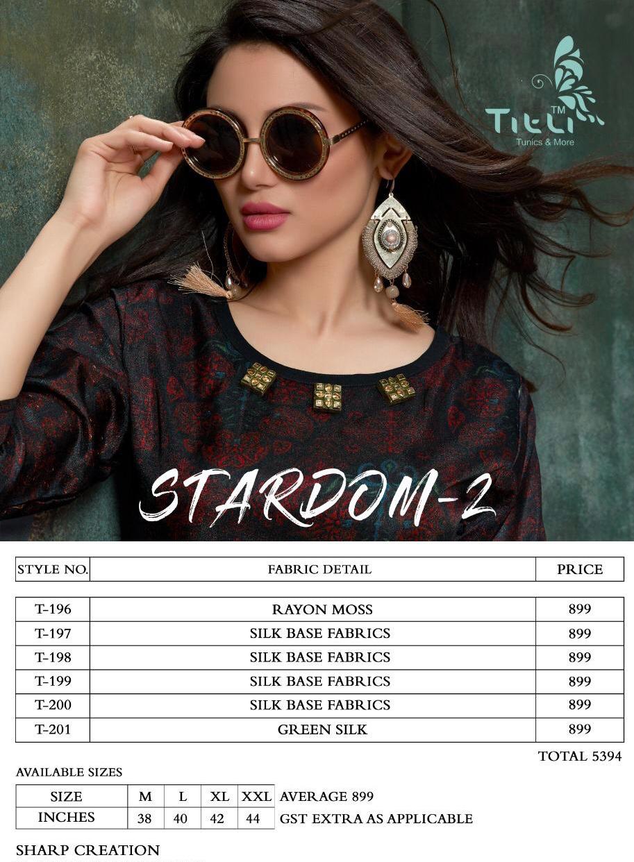 Buy Online Stardom Vol 2 By Titli 196 Series Fancy Gown Style Kurti Catlog Wholsaler Surat 6 Pcs of Full Catalogue at Wholesale Price. Looking for Stardom Vol 2 By Titli 196 Series Fancy Gown Style Kurti Catlog Wholsaler Surat Full Catalouge at Best Price? Buy Now Stardom Vol 2 By Titli 196 Series Fancy Gown Style Kurti Catlog Wholsaler Surat at Wholesale Rate of Rs 5394 with Total 6 Pcs from authroized dealer and supplier of TITLI Brand. Cost of Each piece is just only Rs 899 which is very low and affordable price to resale the product in your retail store ,This is Surat based Wholesale Supplier & Dealer of TITLI Brand. Click on Brand name to Know more about TITLI Brand's products.Call or Whatsapp on 9898838984 for booking or enquiry