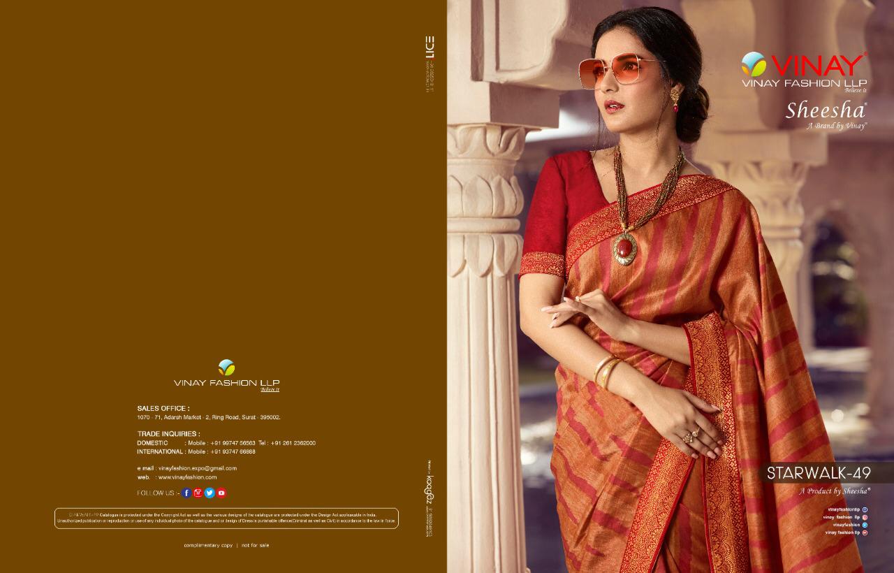Buy Online Starwalk 49 By Vinay Series 21931 To 21939 Designer Party Wear Sarees Wholesale Supplier Gujarat 9 Pcs of Full Catalogue at Wholesale Price. Looking for Starwalk 49 By Vinay Series 21931 To 21939 Designer Party Wear Sarees Wholesale Supplier Gujarat Full Catalouge at Best Price? Buy Now Starwalk 49 By Vinay Series 21931 To 21939 Designer Party Wear Sarees Wholesale Supplier Gujarat at Wholesale Rate of Rs 8595 with Total 9 Pcs from authroized dealer and supplier of VINAY Brand. Cost of Each piece is just only Rs 955 which is very low and affordable price to resale the product in your retail store ,This is Surat based Wholesale Supplier & Dealer of VINAY Brand. Click on Brand name to Know more about VINAY Brand's products.Call or Whatsapp on 9898838984 for booking or enquiry