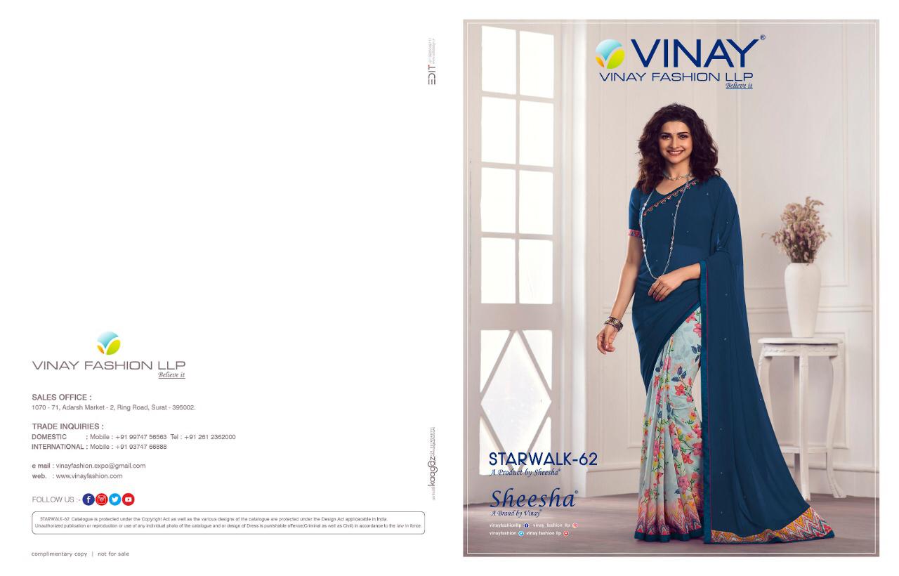 Buy Online Starwalk 62 By Vinay Manufacturer Traders Surat 10 Pcs of Full Catalogue at Wholesale Price. Looking for Starwalk 62 By Vinay Manufacturer Traders Surat Full Catalouge at Best Price? Buy Now Starwalk 62 By Vinay Manufacturer Traders Surat at Wholesale Rate of Rs 8900 with Total 10 Pcs from authroized dealer and supplier of VINAY Brand. Cost of Each piece is just only Rs 890 which is very low and affordable price to resale the product in your retail store ,This is Surat based Wholesale Supplier & Dealer of VINAY Brand. Click on Brand name to Know more about VINAY Brand's products.Call or Whatsapp on 9898838984 for booking or enquiry