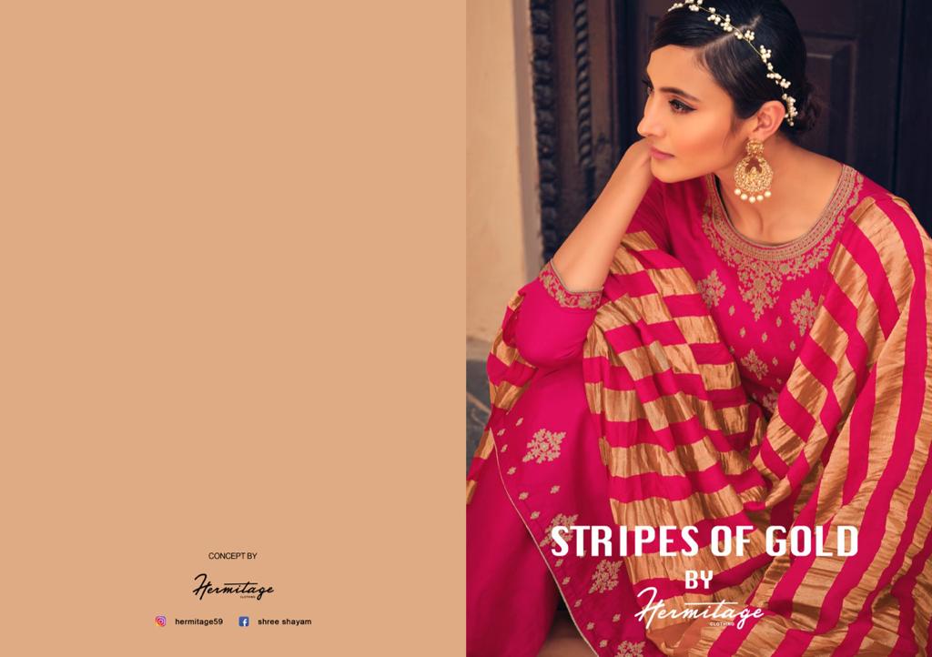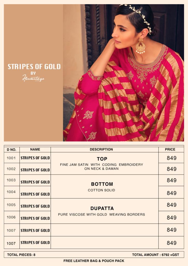 Buy Online Stripes Of Gold By Hermitage Clothing Wholesaler Supplier From Surat 8 Pcs of Full Catalogue at Wholesale Price. Looking for Stripes Of Gold By Hermitage Clothing Wholesaler Supplier From Surat Full Catalouge at Best Price? Buy Now Stripes Of Gold By Hermitage Clothing Wholesaler Supplier From Surat at Wholesale Rate of Rs 6792 with Total 8 Pcs from authroized dealer and supplier of Brand. Cost of Each piece is just only Rs 849 which is very low and affordable price to resale the product in your retail store ,This is Surat based Wholesale Supplier & Dealer of Brand. Click on Brand name to Know more about Brand's products.Call or Whatsapp on 9898838984 for booking or enquiry