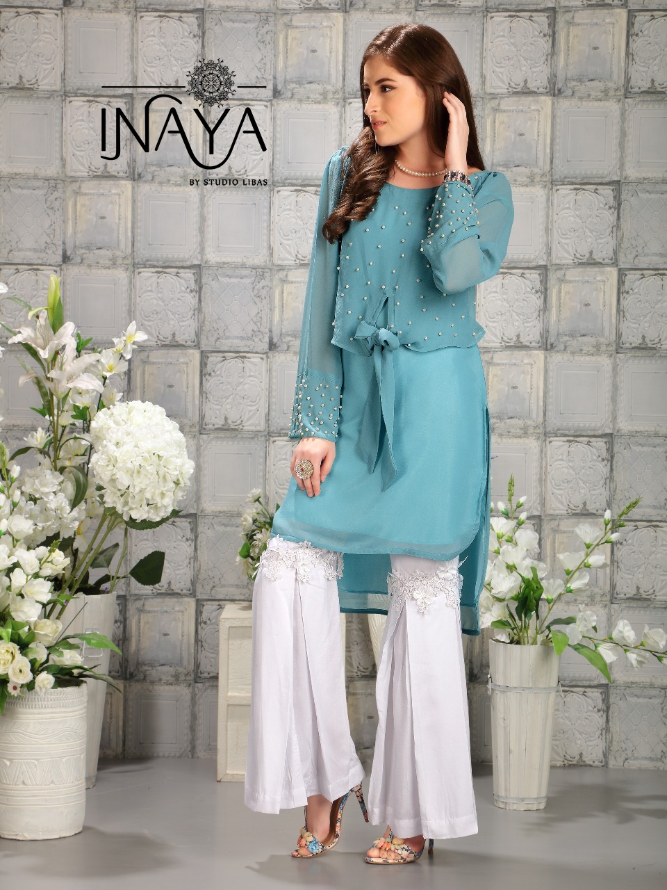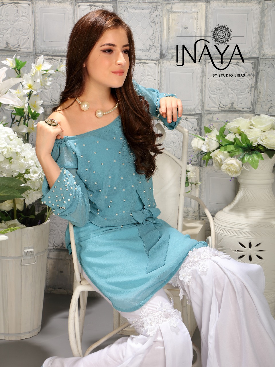 Buy Online Studio Libas Inaya Luxury Pret Collection 4 Eid Special Tunic With Gharara Pants Catlog Wholesale Dealer Surat 4 Pcs of Full Catalogue at Wholesale Price. Looking for Studio Libas Inaya Luxury Pret Collection 4 Eid Special Tunic With Gharara Pants Catlog Wholesale Dealer Surat Full Catalouge at Best Price? Buy Now Studio Libas Inaya Luxury Pret Collection 4 Eid Special Tunic With Gharara Pants Catlog Wholesale Dealer Surat at Wholesale Rate of Rs 5196 with Total 4 Pcs from authroized dealer and supplier of STUDIO LIBAS Brand. Cost of Each piece is just only Rs 1299 which is very low and affordable price to resale the product in your retail store ,This is Surat based Wholesale Supplier & Dealer of STUDIO LIBAS Brand. Click on Brand name to Know more about STUDIO LIBAS Brand's products.Call or Whatsapp on 9898838984 for booking or enquiry