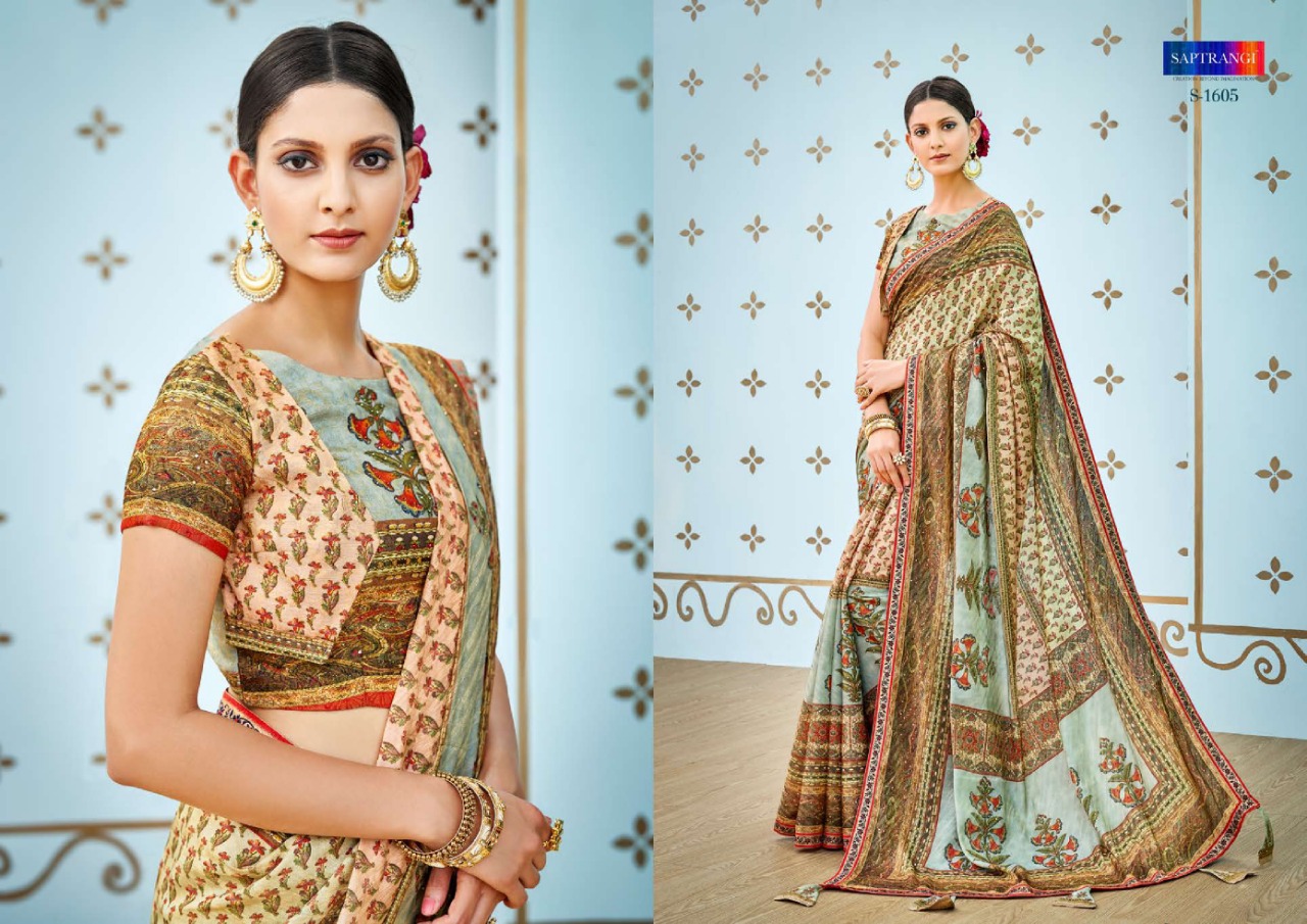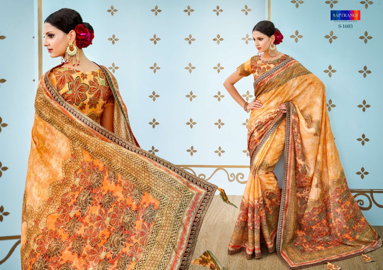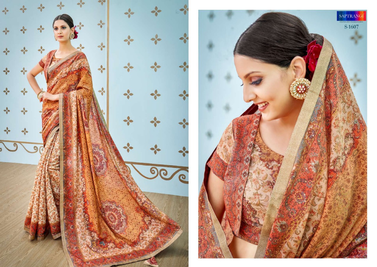 Brand - Saptrangi. Series -1601 to 1611. * set & Loose * GST 5 Percent Extra. Delivery 2 days Single and multipal available For singleÂ?s price call or whatsapp on +919898838984 Book now |