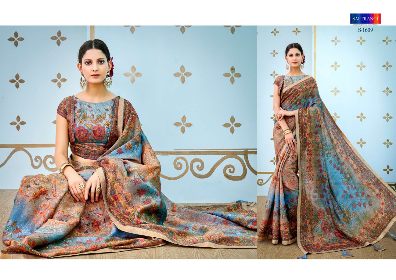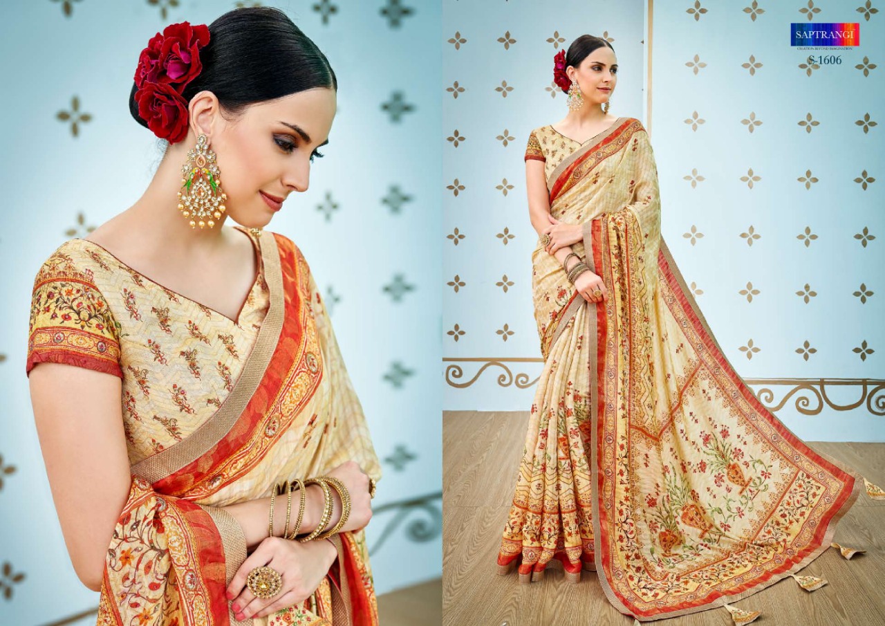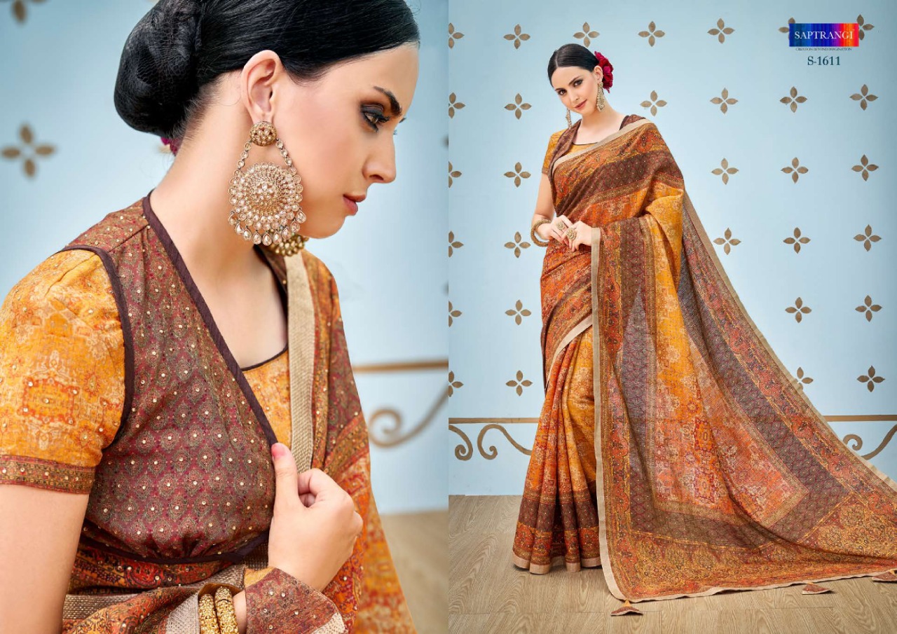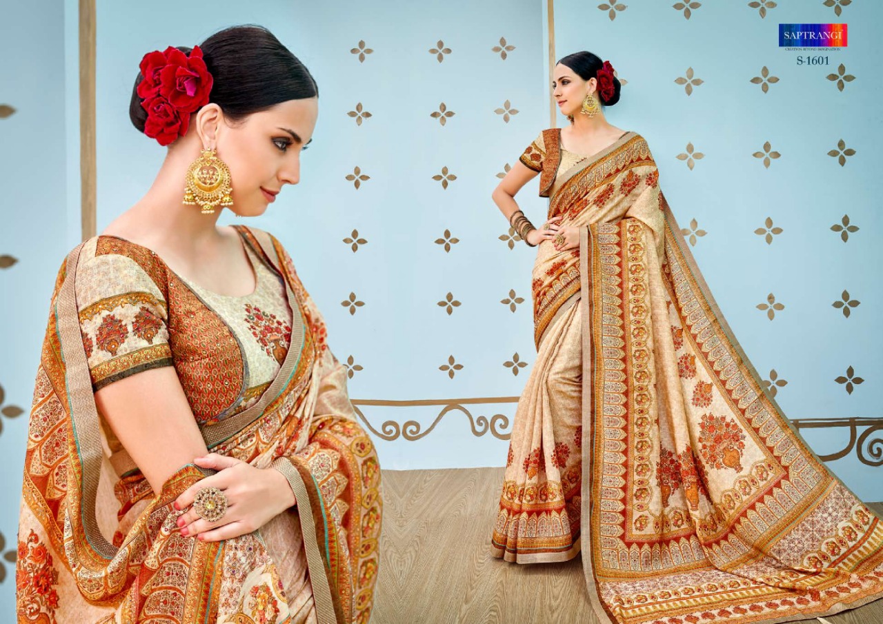 Brand - Saptrangi. Series -1601 to 1611. * set & Loose * GST 5 Percent Extra. Delivery 2 days Single and multipal available For singleÂ?s price call or whatsapp on +919898838984 Book now |