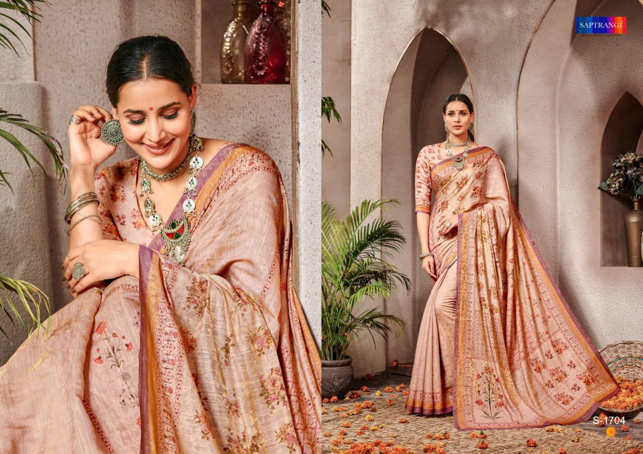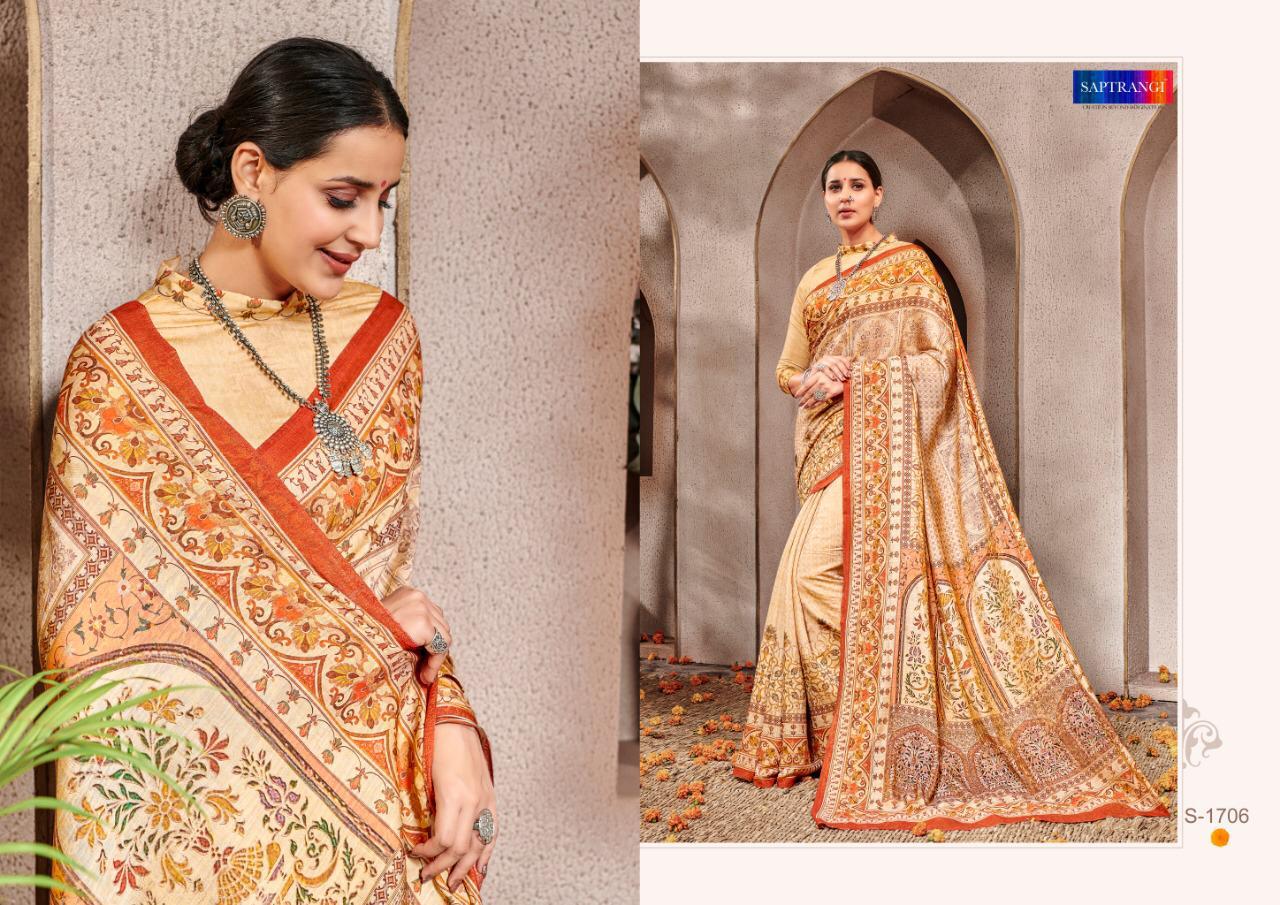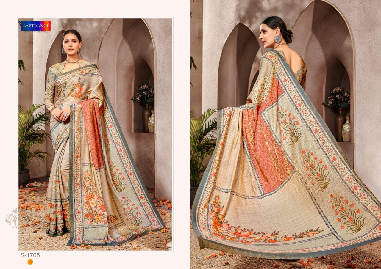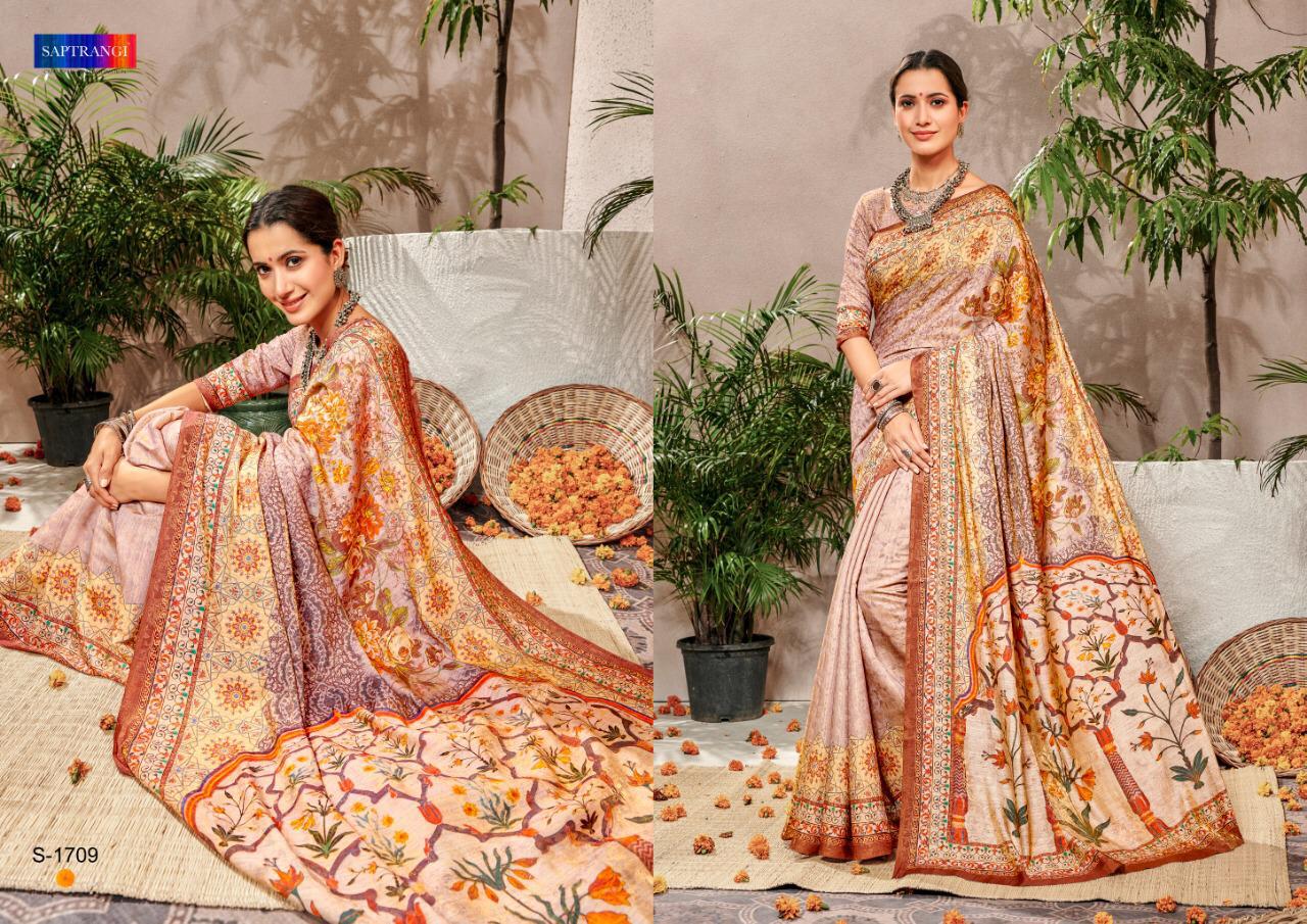 Brand - Saptrangi. Series - T-1701 To T-1711. Catlog Name - STYLE SUTRA VOL -2. * set & loose & Singel * Single Extra 100 GST 5 Percent Extra. Delivery from tomorrow |