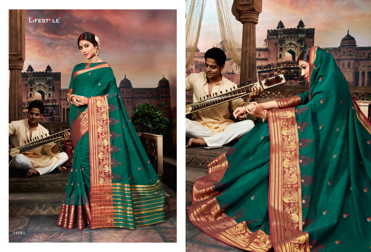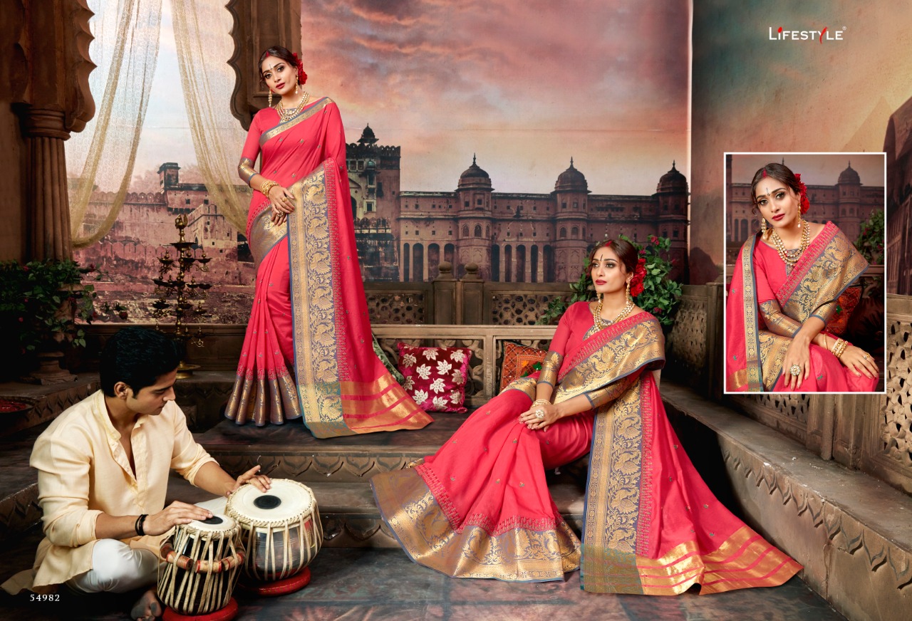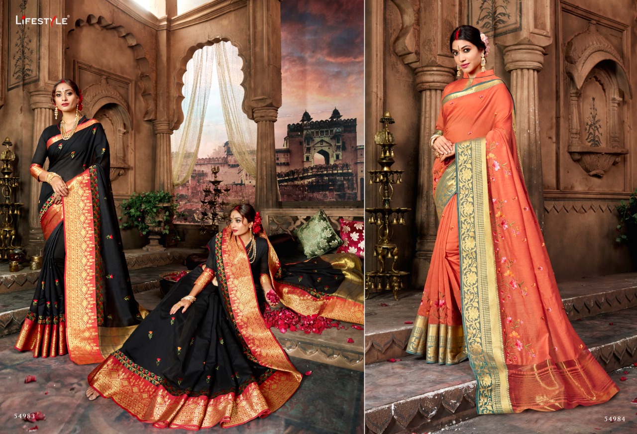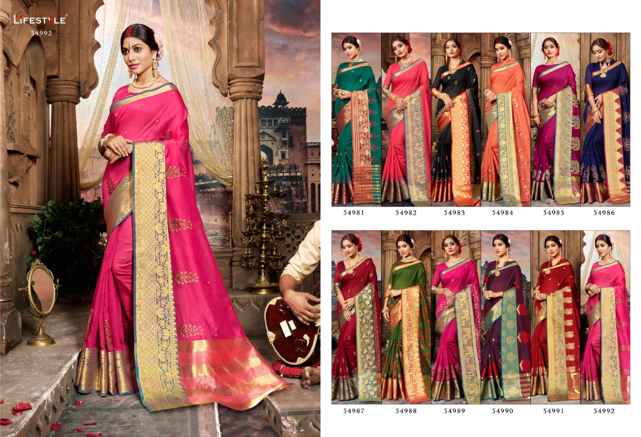 Buy Online Sugandh By Lifestyle 54981 Series Fancy Party Wear Saree Catlog Wholesaler Surat 12 Pcs of Full Catalogue at Wholesale Price. Looking for Sugandh By Lifestyle 54981 Series Fancy Party Wear Saree Catlog Wholesaler Surat Full Catalouge at Best Price? Buy Now Sugandh By Lifestyle 54981 Series Fancy Party Wear Saree Catlog Wholesaler Surat at Wholesale Rate of Rs 11640 with Total 12 Pcs from authroized dealer and supplier of LIFESTYLE Brand. Cost of Each piece is just only Rs 970 which is very low and affordable price to resale the product in your retail store ,This is Surat based Wholesale Supplier & Dealer of LIFESTYLE Brand. Click on Brand name to Know more about LIFESTYLE Brand's products.Call or Whatsapp on 9898838984 for booking or enquiry