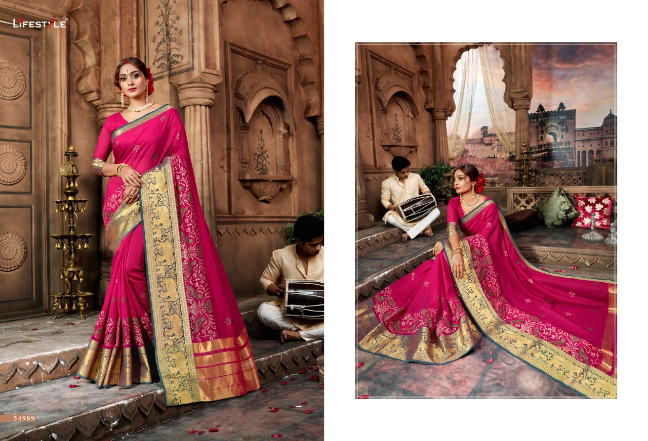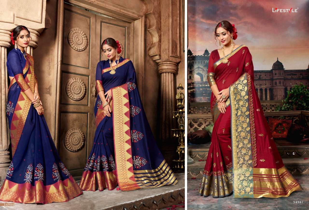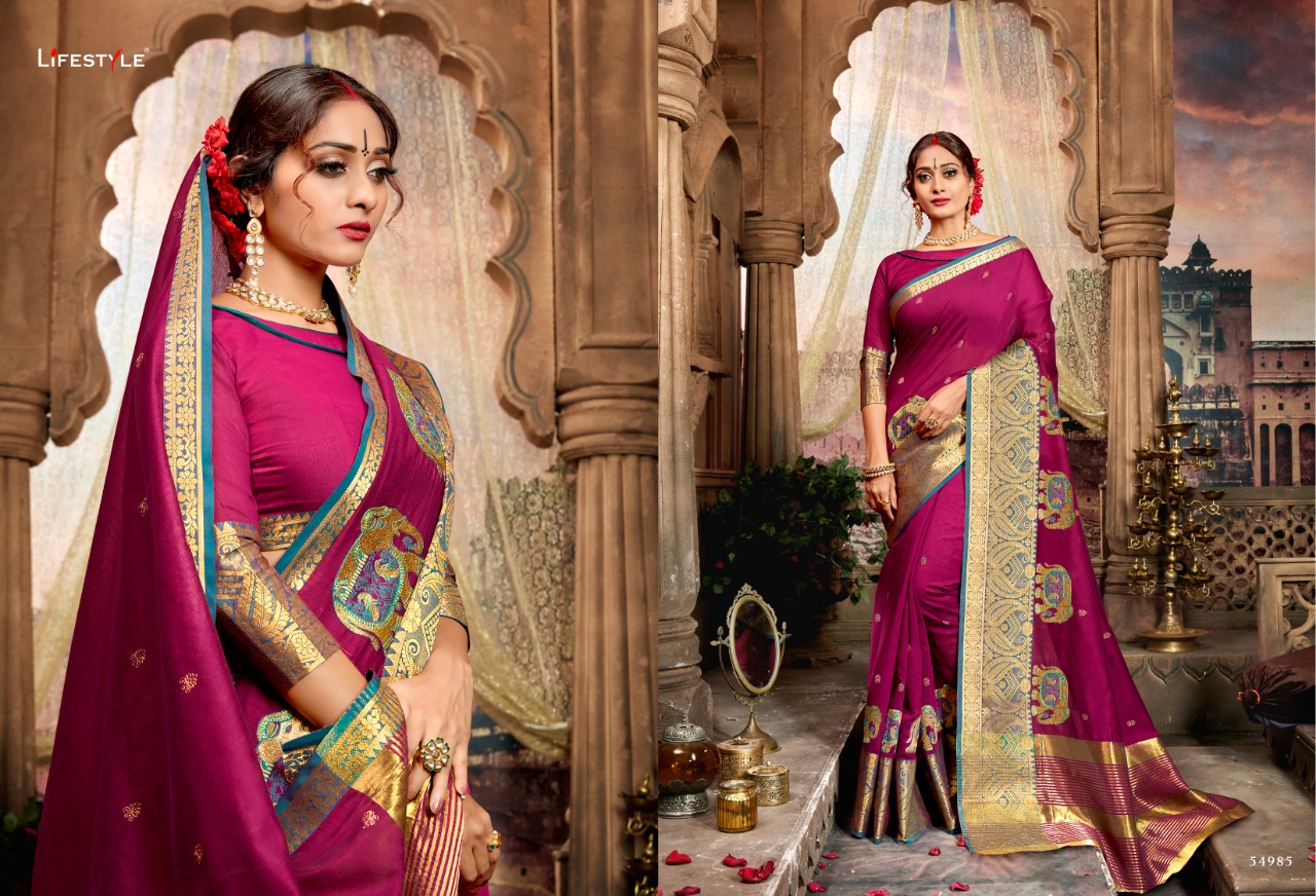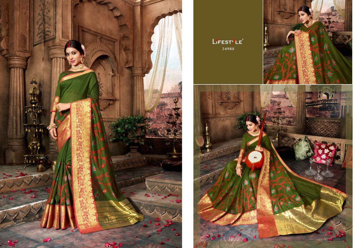 Buy Online Sugandh By Lifestyle 54981 Series Fancy Party Wear Saree Catlog Wholesaler Surat 12 Pcs of Full Catalogue at Wholesale Price. Looking for Sugandh By Lifestyle 54981 Series Fancy Party Wear Saree Catlog Wholesaler Surat Full Catalouge at Best Price? Buy Now Sugandh By Lifestyle 54981 Series Fancy Party Wear Saree Catlog Wholesaler Surat at Wholesale Rate of Rs 11640 with Total 12 Pcs from authroized dealer and supplier of LIFESTYLE Brand. Cost of Each piece is just only Rs 970 which is very low and affordable price to resale the product in your retail store ,This is Surat based Wholesale Supplier & Dealer of LIFESTYLE Brand. Click on Brand name to Know more about LIFESTYLE Brand's products.Call or Whatsapp on 9898838984 for booking or enquiry