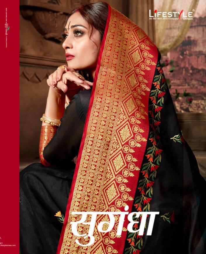 Sugandh By Lifestyle 54981 Series Fancy Party Wear Saree Catlog Wholesaler Surat