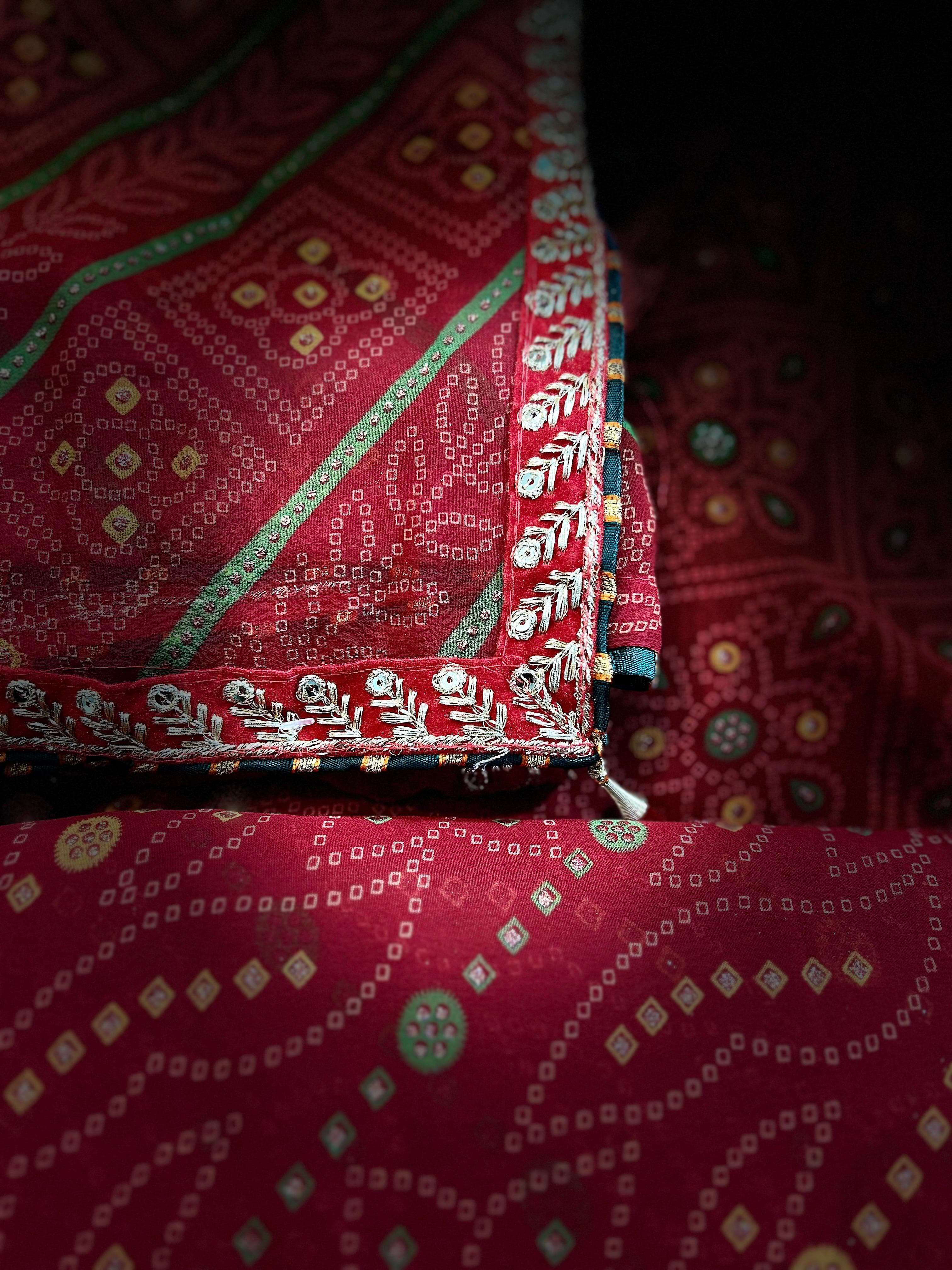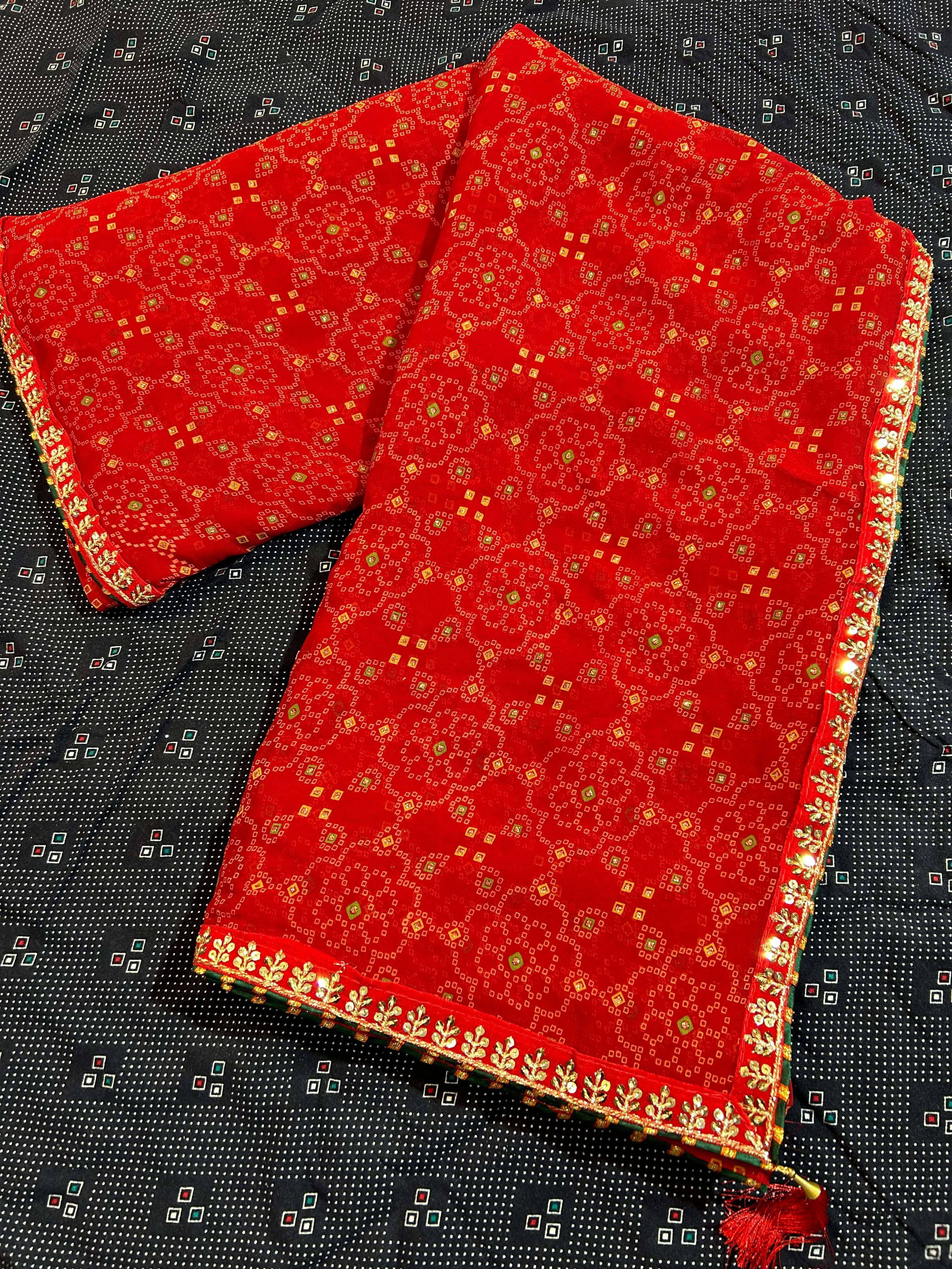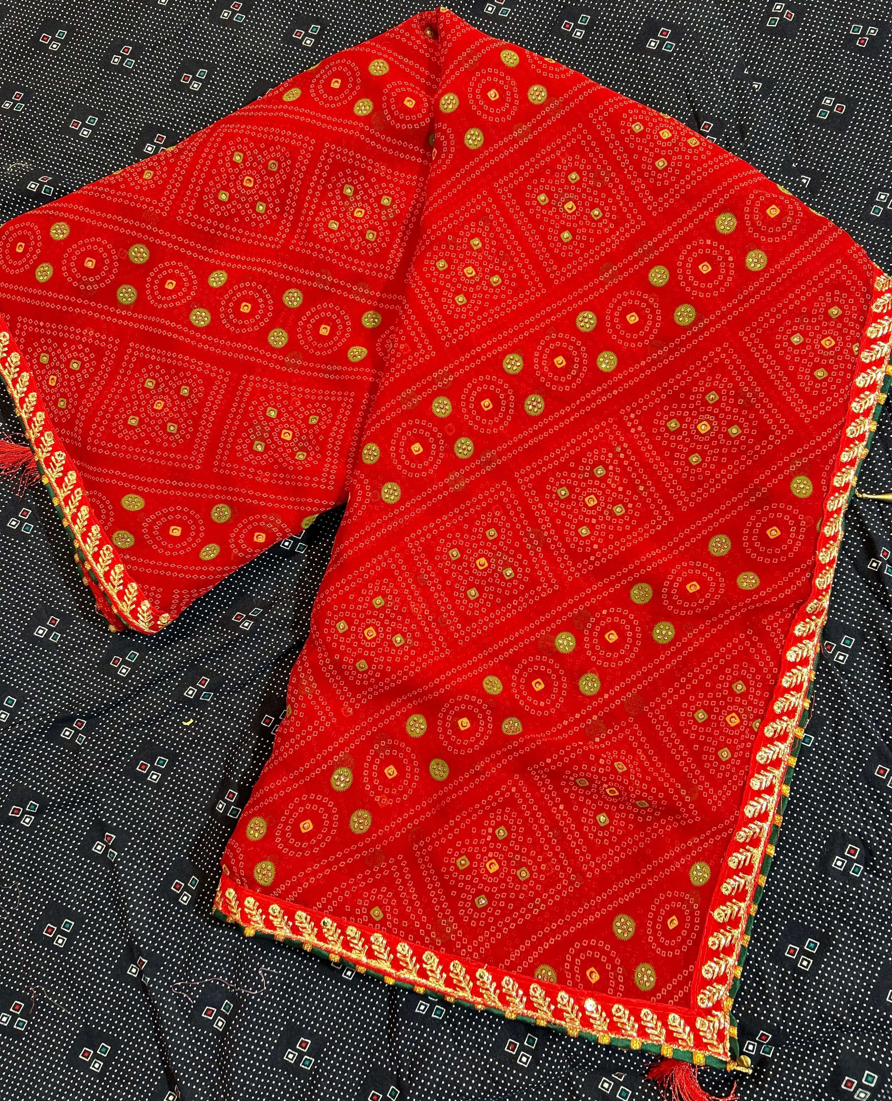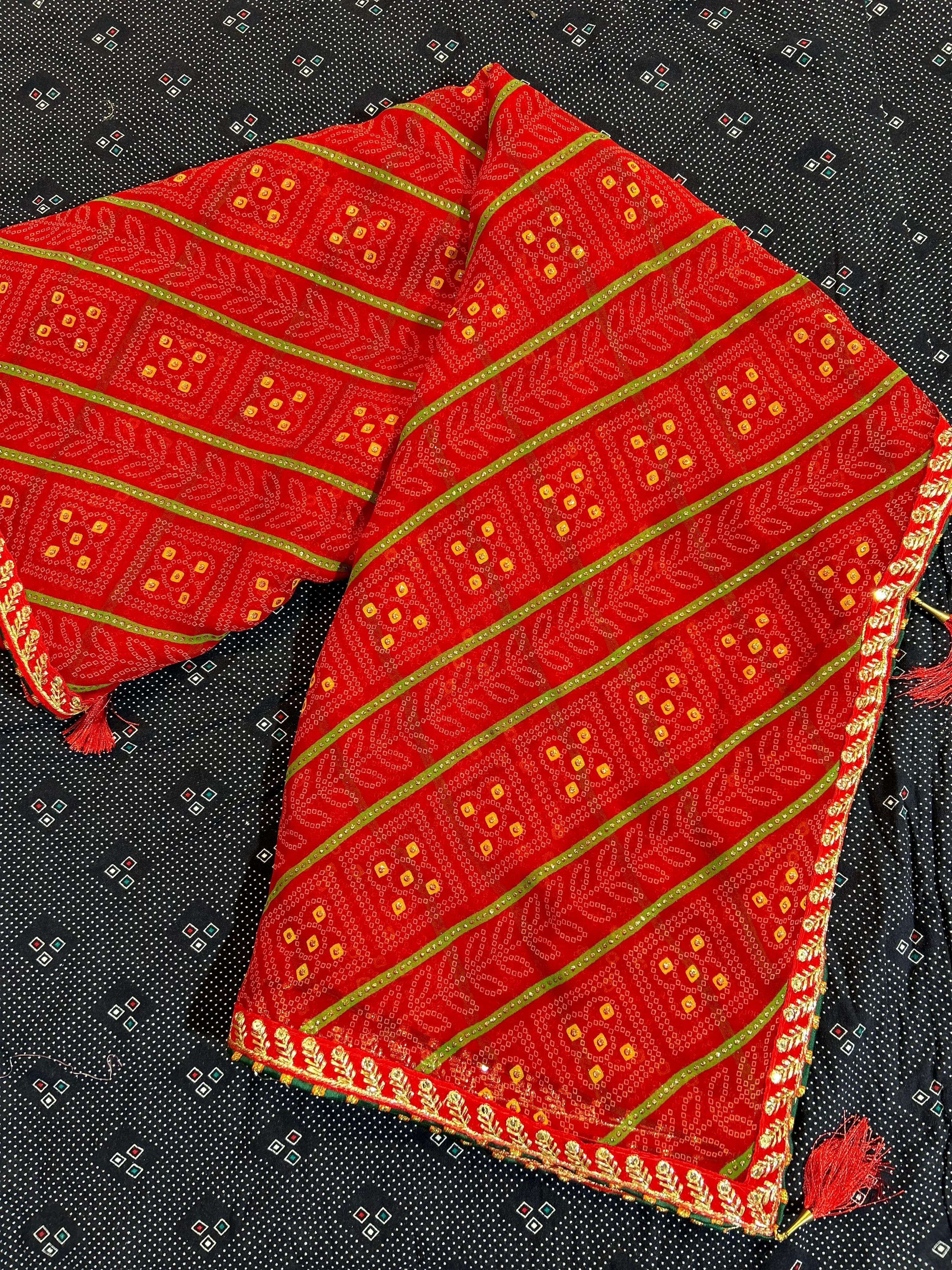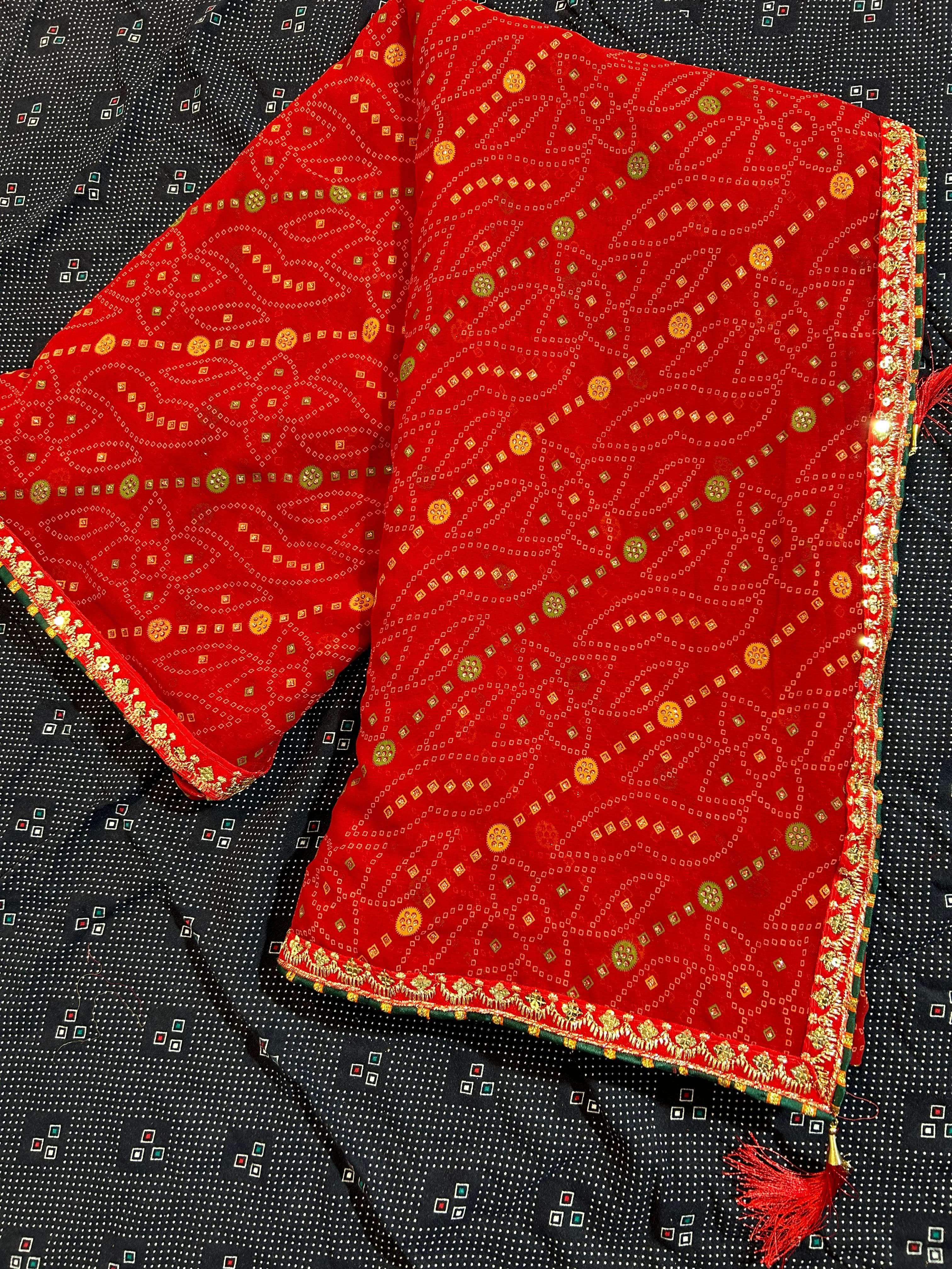 *NEW DESIGEN PURE RED COLOUR BANDHEJ CATALOUGE WITH FANCY WORK BORDER IN RED VALVET* BRAND - *JALNIDHI* CATLOG NAME- *SUHAG*😍 PCS - *8 PCS* RATE - *550/-* SERISE - *17001 TO 17008* FABRIC - *HEAVY JARI GORGET*👌👌 BLOUSE - *HEAVY BANGLORI* Gst 5℅ Extra SINGLE AVAILABLE Book your order now |