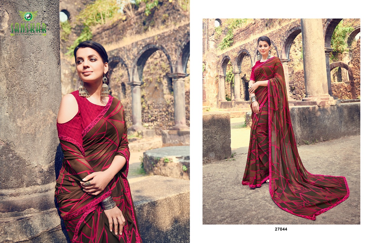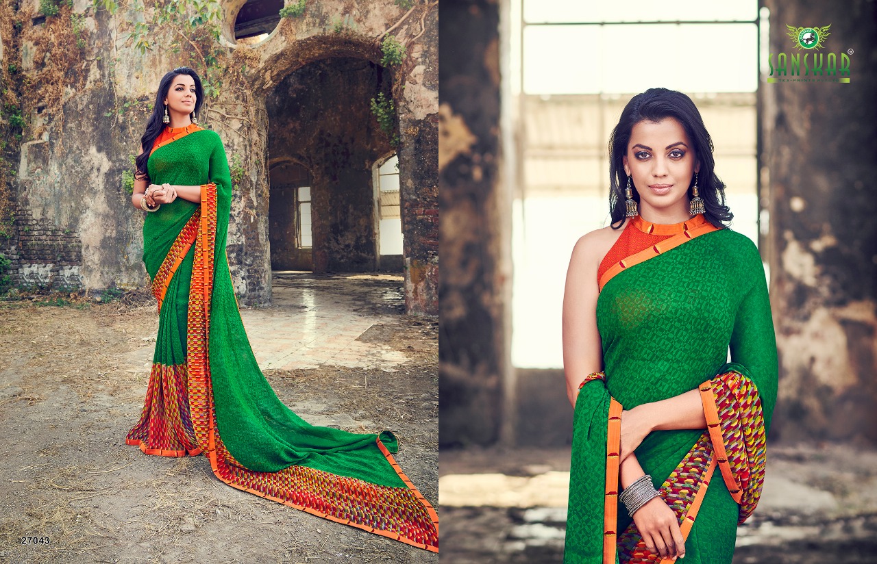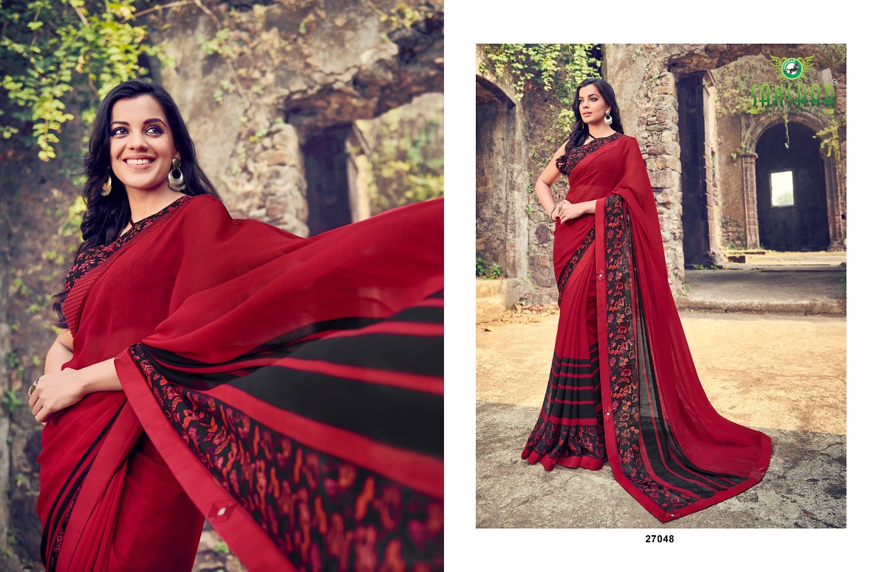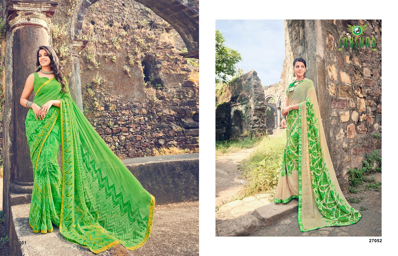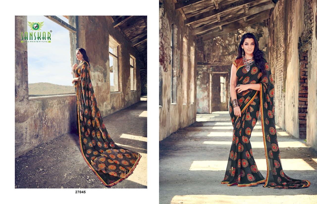 Buy Online Suhana Safar By Sanskar 27041 Series Fancy Georgette Printed Saree Collection Wholesaler Surat 12 Pcs of Full Catalogue at Wholesale Price. Looking for Suhana Safar By Sanskar 27041 Series Fancy Georgette Printed Saree Collection Wholesaler Surat Full Catalouge at Best Price? Buy Now Suhana Safar By Sanskar 27041 Series Fancy Georgette Printed Saree Collection Wholesaler Surat at Wholesale Rate of Rs 7980 with Total 12 Pcs from authroized dealer and supplier of SANSKAR SAREES Brand. Cost of Each piece is just only Rs 665 which is very low and affordable price to resale the product in your retail store ,This is Surat based Wholesale Supplier & Dealer of SANSKAR SAREES Brand. Click on Brand name to Know more about SANSKAR SAREES Brand's products.Call or Whatsapp on 9898838984 for booking or enquiry