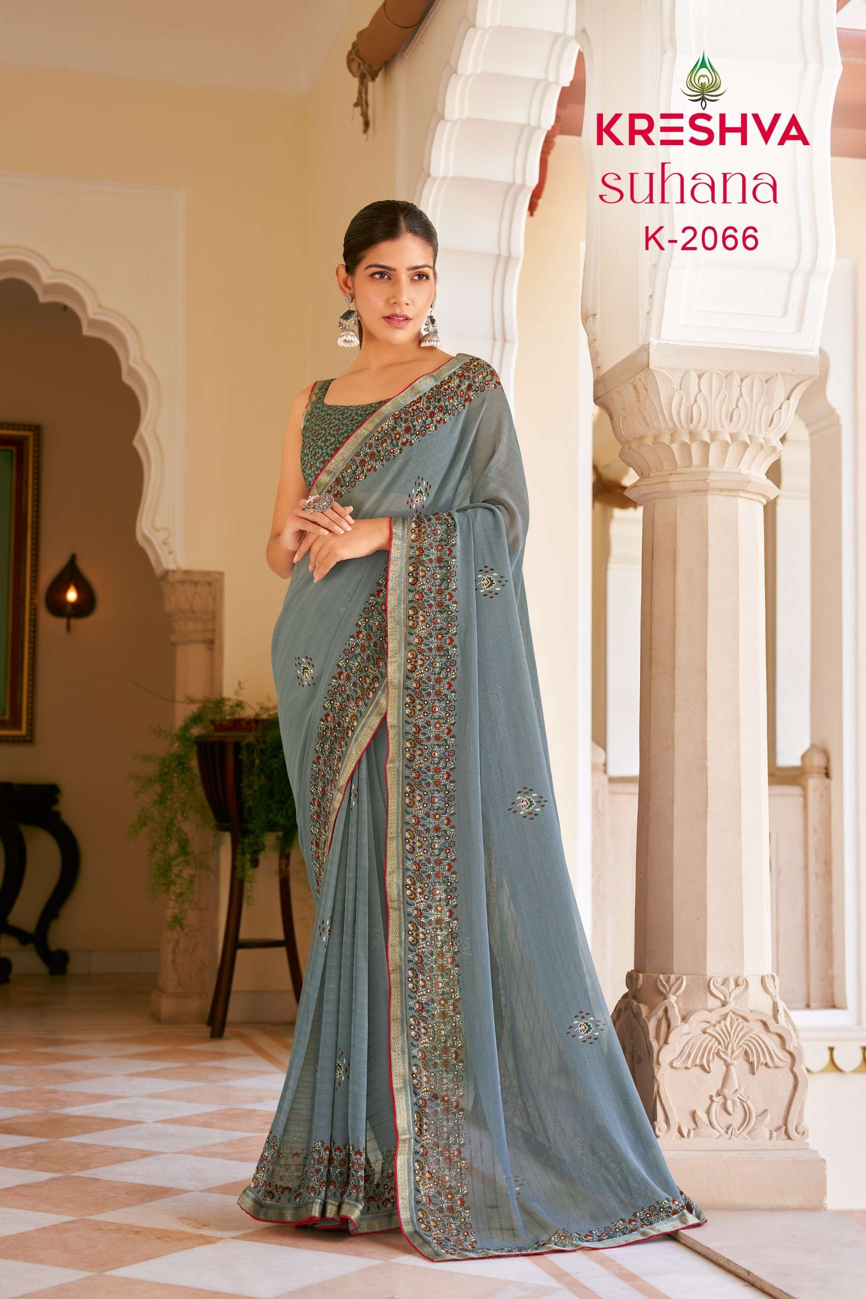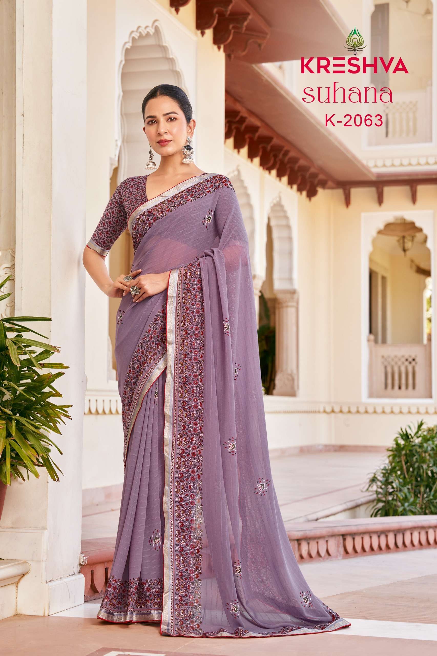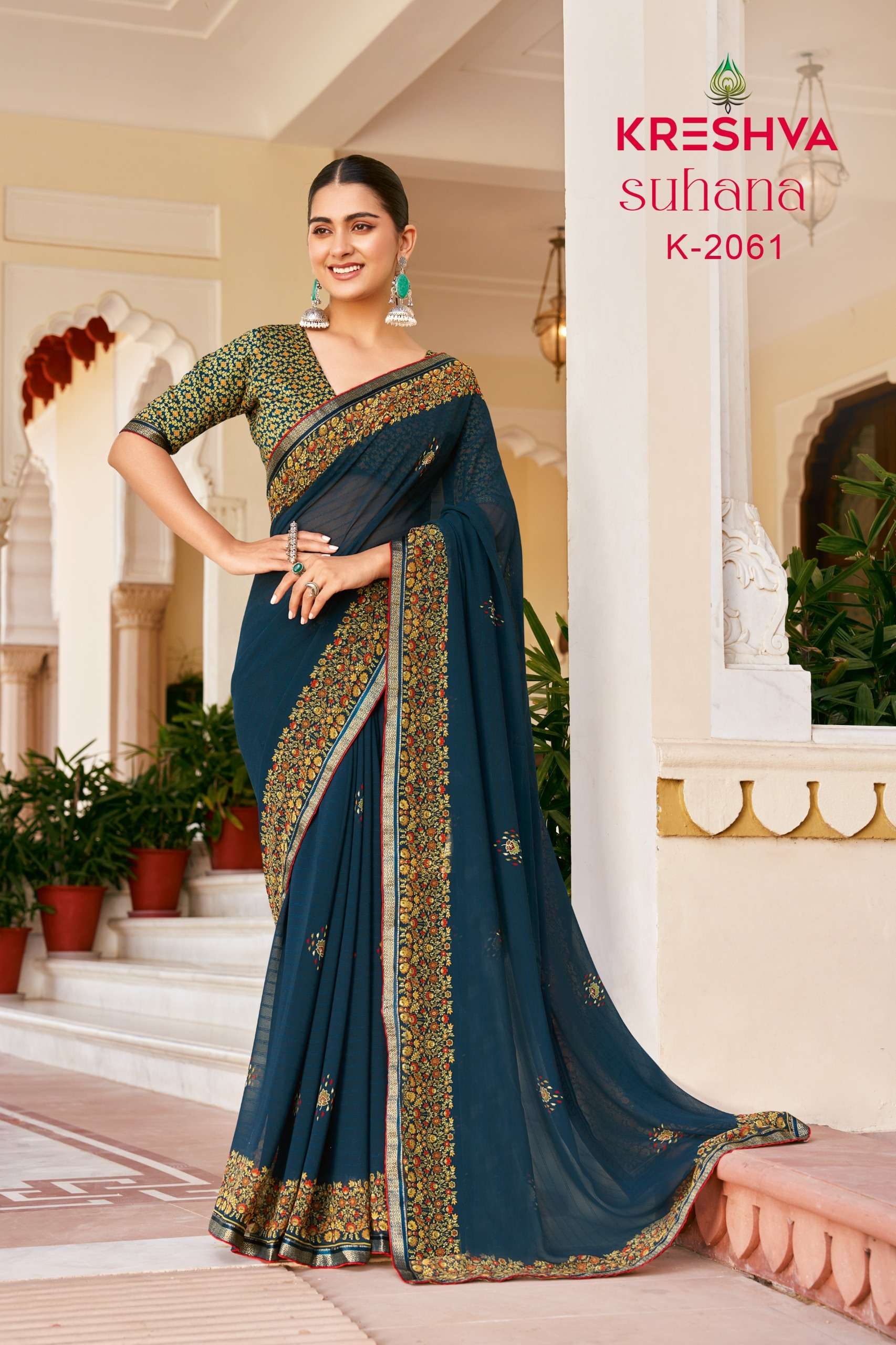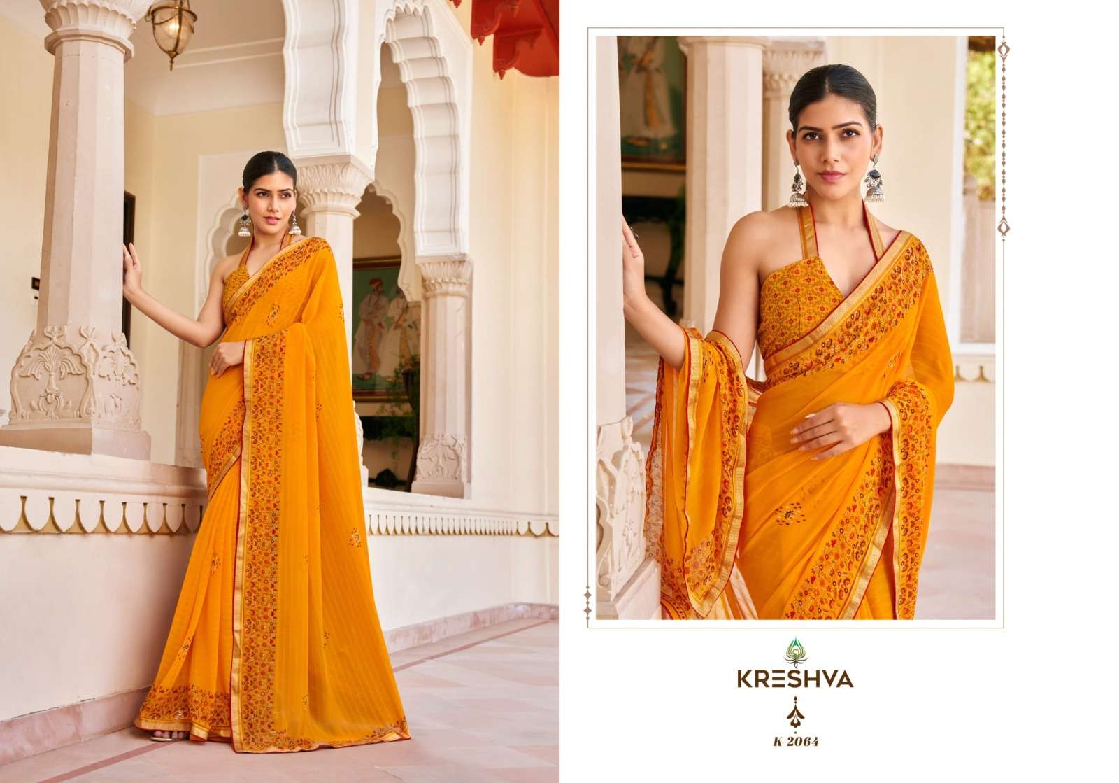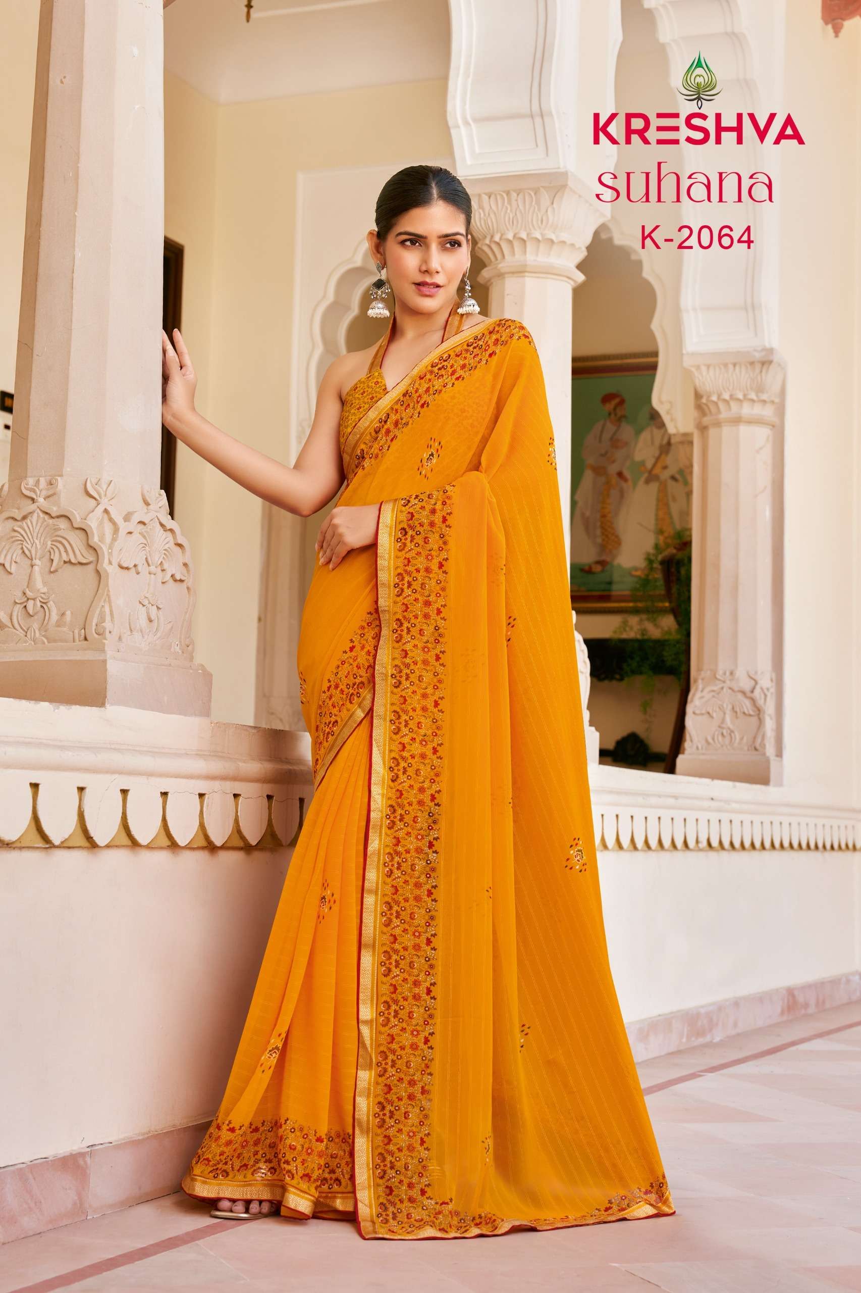 Suhana Series 2061 to 2068 by Kreshva Georgette saree collection manufacturer surat
