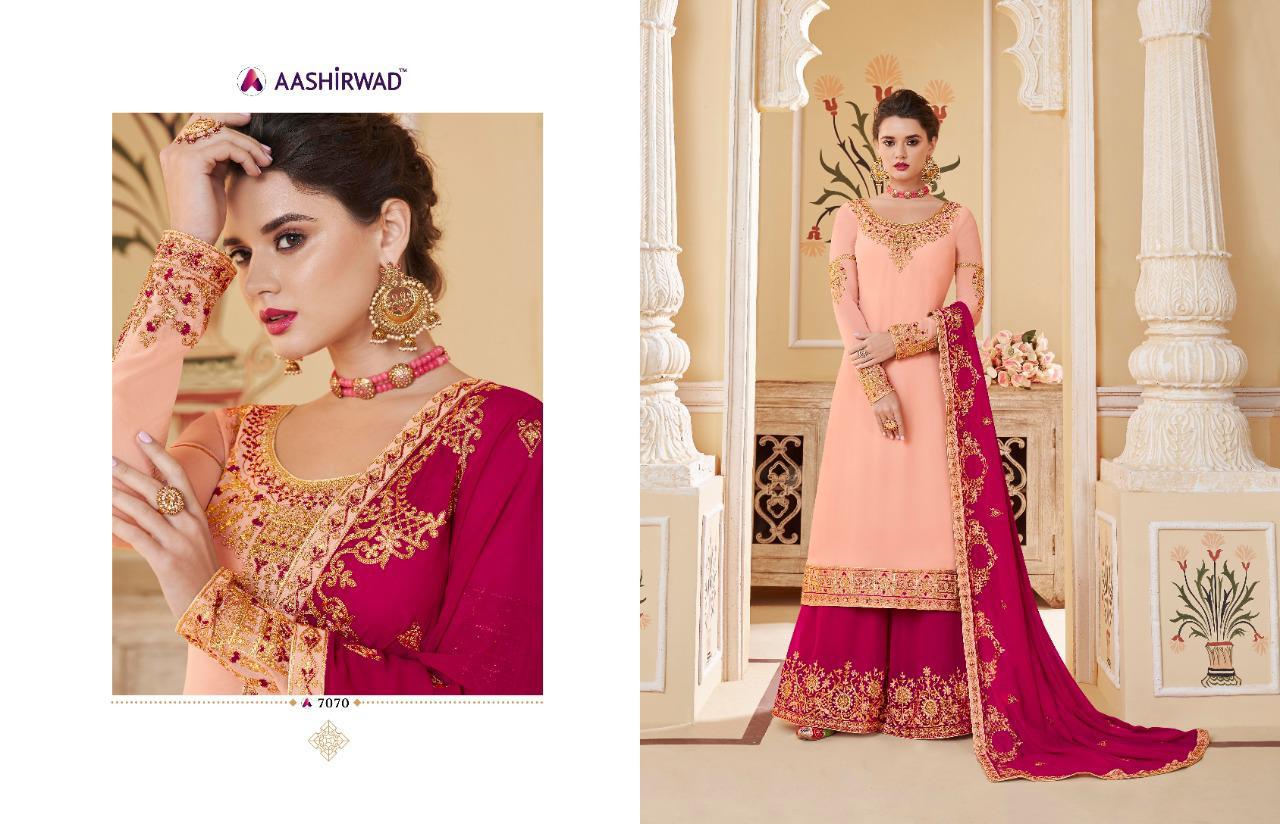 Buy Online Suhani By Aashirwad Series 7065 To 7070 Designer Party Wear Suits Set And Single Wholesale Supplier Gujarat 6 Pcs of Full Catalogue at Wholesale Price. Looking for Suhani By Aashirwad Series 7065 To 7070 Designer Party Wear Suits Set And Single Wholesale Supplier Gujarat Full Catalouge at Best Price? Buy Now Suhani By Aashirwad Series 7065 To 7070 Designer Party Wear Suits Set And Single Wholesale Supplier Gujarat at Wholesale Rate of Rs 14370 with Total 6 Pcs from authroized dealer and supplier of AASHIRWAD Brand. Cost of Each piece is just only Rs 2395 which is very low and affordable price to resale the product in your retail store ,This is Surat based Wholesale Supplier & Dealer of AASHIRWAD Brand. Click on Brand name to Know more about AASHIRWAD Brand's products.Call or Whatsapp on 9898838984 for booking or enquiry