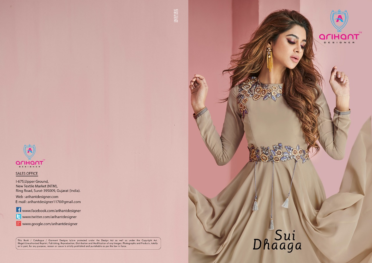 Buy Online Sui Dhaaga By Arihant Nx 18001 Series Designer Party Wear Gown Style Kurti Catlog Wholesale Dealer And Supplier Surat 8 Pcs of Full Catalogue at Wholesale Price. Looking for Sui Dhaaga By Arihant Nx 18001 Series Designer Party Wear Gown Style Kurti Catlog Wholesale Dealer And Supplier Surat Full Catalouge at Best Price? Buy Now Sui Dhaaga By Arihant Nx 18001 Series Designer Party Wear Gown Style Kurti Catlog Wholesale Dealer And Supplier Surat at Wholesale Rate of Rs 6760 with Total 8 Pcs from authroized dealer and supplier of ARIHANT NX Brand. Cost of Each piece is just only Rs 845 which is very low and affordable price to resale the product in your retail store ,This is Surat based Wholesale Supplier & Dealer of ARIHANT NX Brand. Click on Brand name to Know more about ARIHANT NX Brand's products.Call or Whatsapp on 9898838984 for booking or enquiry