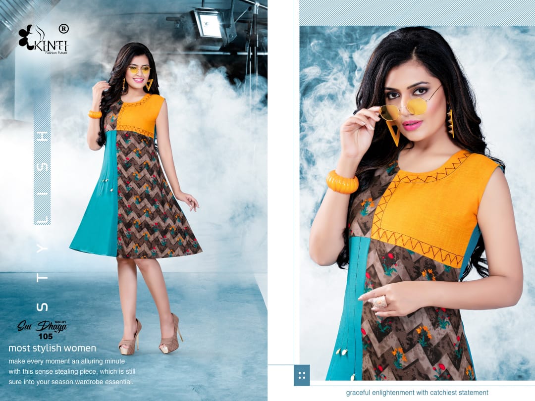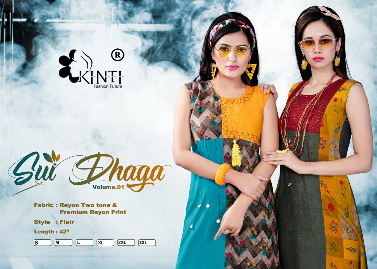 Buy Online Sui Dhaaga By Kinti 101 Series Fancy Reyon Printed Kurti Collection Wholesaler Surat 12 Pcs of Full Catalogue at Wholesale Price. Looking for Sui Dhaaga By Kinti 101 Series Fancy Reyon Printed Kurti Collection Wholesaler Surat Full Catalouge at Best Price? Buy Now Sui Dhaaga By Kinti 101 Series Fancy Reyon Printed Kurti Collection Wholesaler Surat at Wholesale Rate of Rs 4788 with Total 12 Pcs from authroized dealer and supplier of Brand. Cost of Each piece is just only Rs 399 which is very low and affordable price to resale the product in your retail store ,This is Surat based Wholesale Supplier & Dealer of Brand. Click on Brand name to Know more about Brand's products.Call or Whatsapp on 9898838984 for booking or enquiry