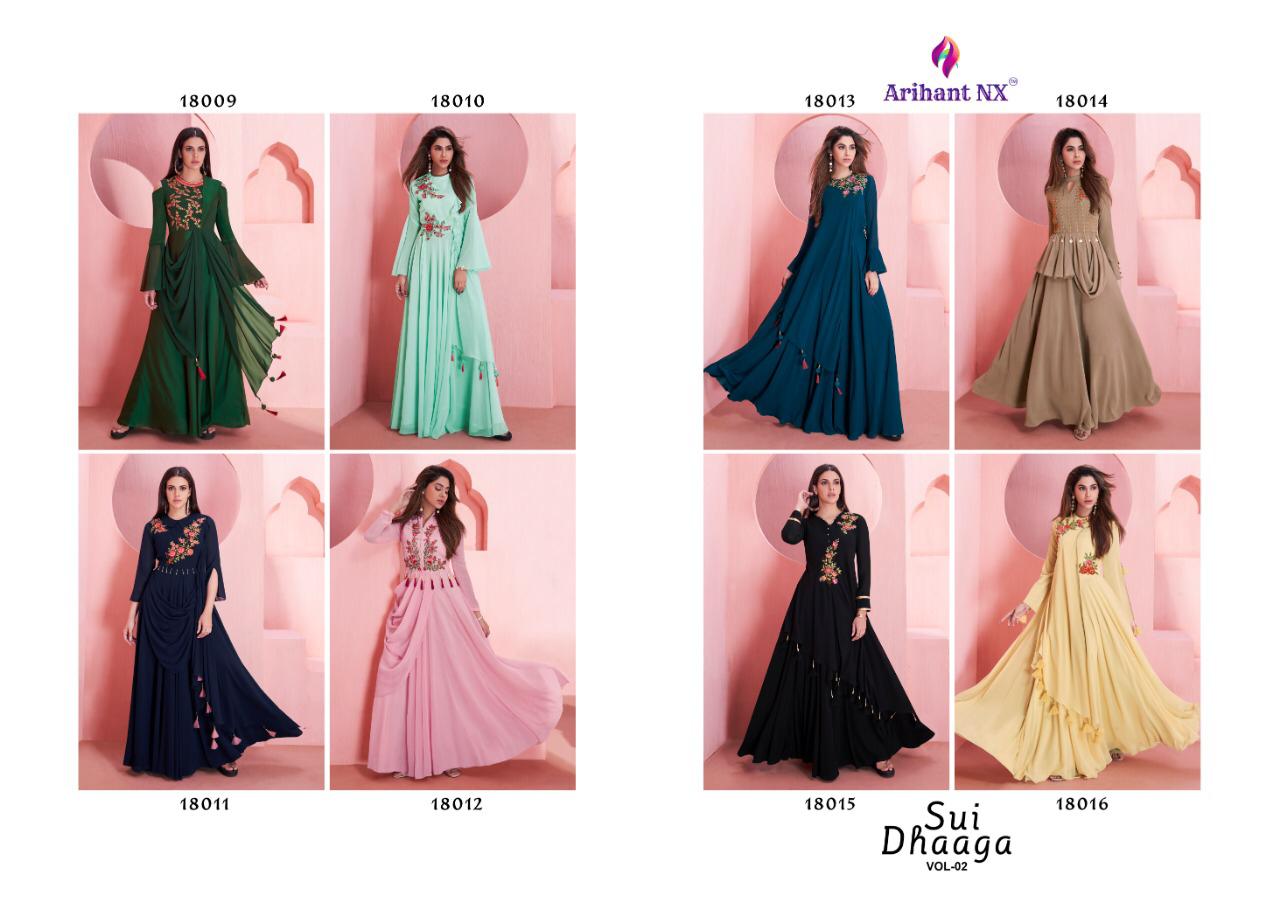 Buy Online Sui Dhaaga Vol 2 By Arihant Nx Semi Georgette Designer Party Wear Gowns Wholesale Supplier Gujarat 8 Pcs of Full Catalogue at Wholesale Price. Looking for Sui Dhaaga Vol 2 By Arihant Nx Semi Georgette Designer Party Wear Gowns Wholesale Supplier Gujarat Full Catalouge at Best Price? Buy Now Sui Dhaaga Vol 2 By Arihant Nx Semi Georgette Designer Party Wear Gowns Wholesale Supplier Gujarat at Wholesale Rate of Rs 7160 with Total 8 Pcs from authroized dealer and supplier of ARIHANT NX Brand. Cost of Each piece is just only Rs 895 which is very low and affordable price to resale the product in your retail store ,This is Surat based Wholesale Supplier & Dealer of ARIHANT NX Brand. Click on Brand name to Know more about ARIHANT NX Brand's products.Call or Whatsapp on 9898838984 for booking or enquiry