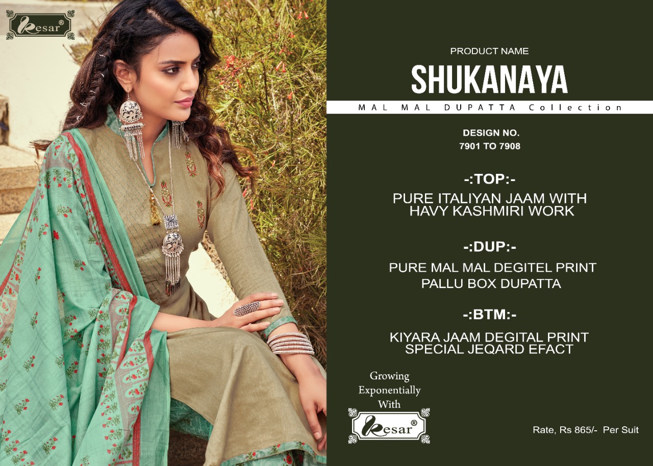 Buy Online Sukanaya By Kesar Designer Suits Wholesale Supplier India 8 Pcs of Full Catalogue at Wholesale Price. Looking for Sukanaya By Kesar Designer Suits Wholesale Supplier India Full Catalouge at Best Price? Buy Now Sukanaya By Kesar Designer Suits Wholesale Supplier India at Wholesale Rate of Rs 6920 with Total 8 Pcs from authroized dealer and supplier of Brand. Cost of Each piece is just only Rs 865 which is very low and affordable price to resale the product in your retail store ,This is Surat based Wholesale Supplier & Dealer of Brand. Click on Brand name to Know more about Brand's products.Call or Whatsapp on 9898838984 for booking or enquiry