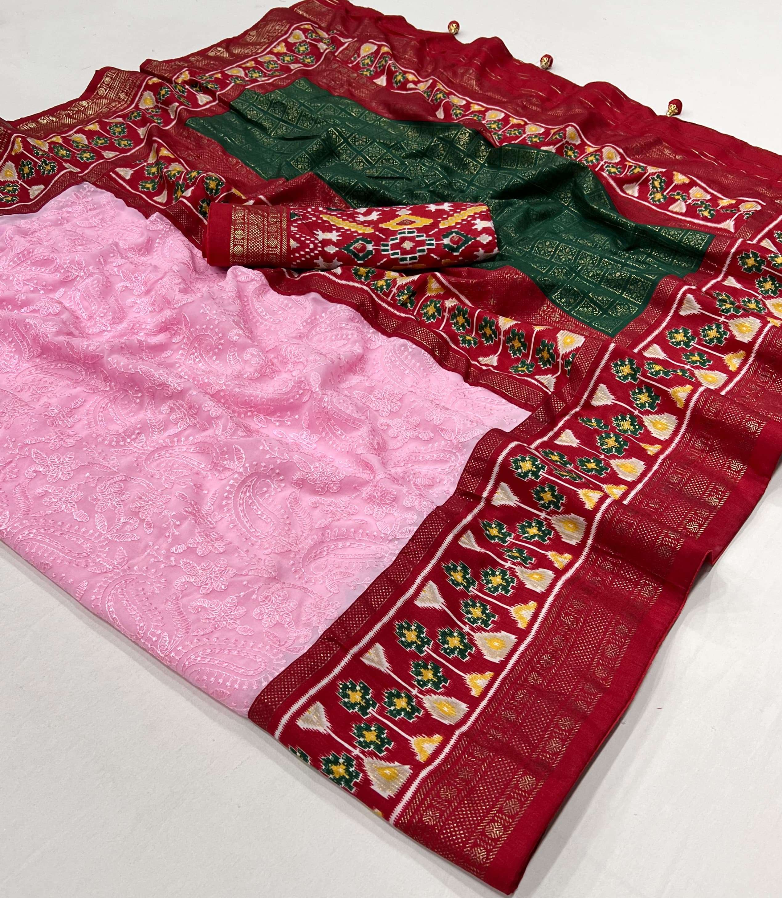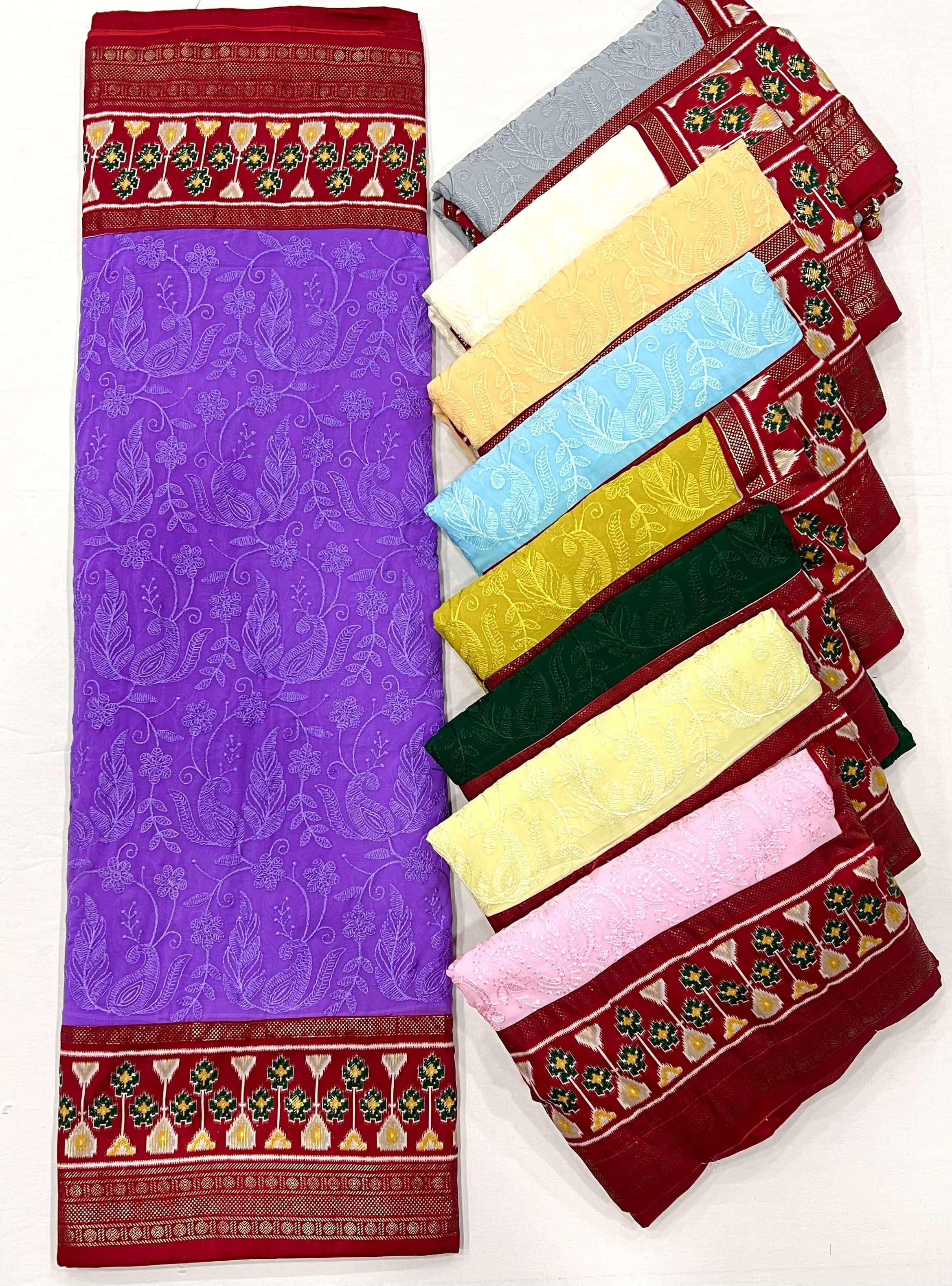 🔰 *Fabric*- Georgette Silk With Chickankari Embroidery Border