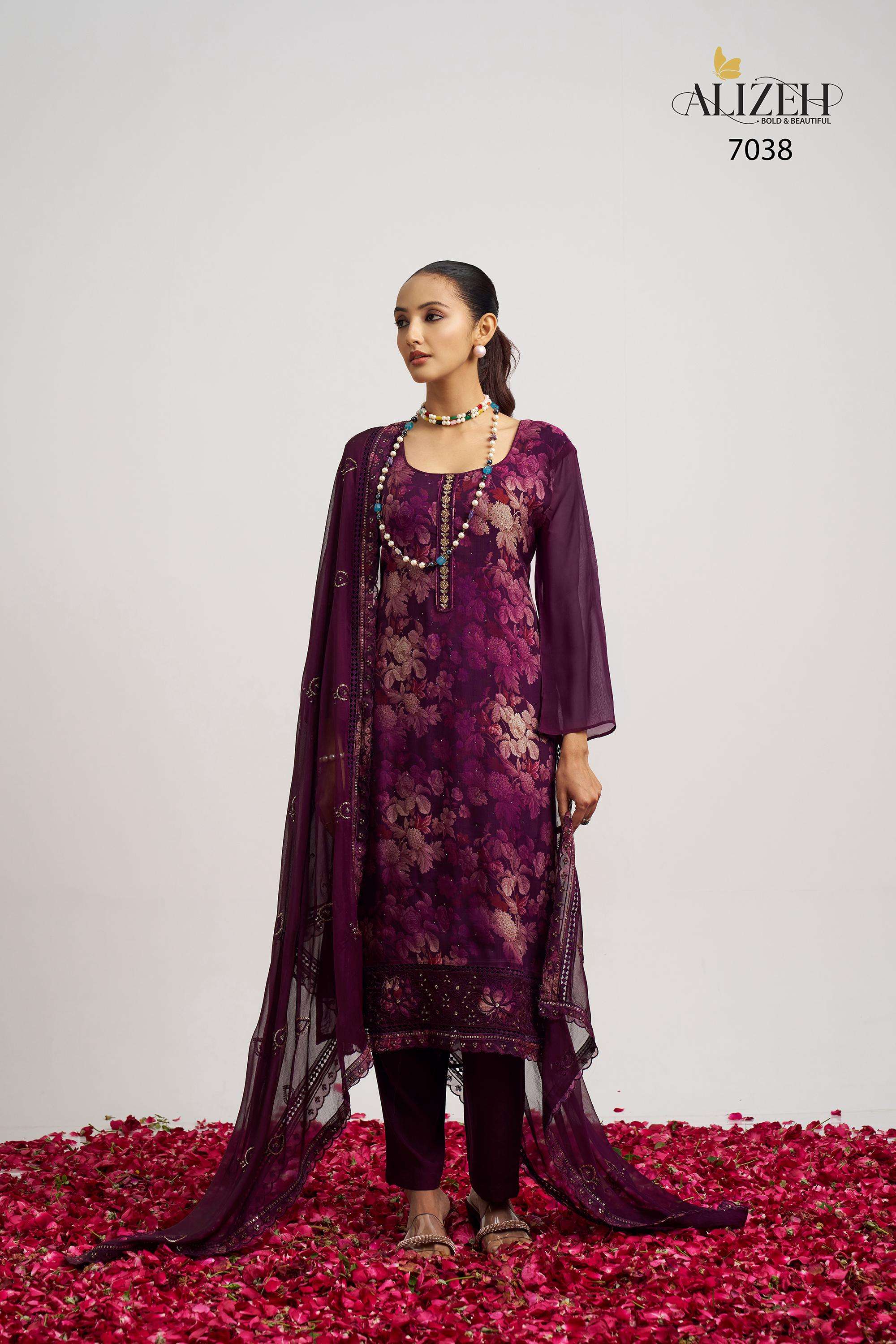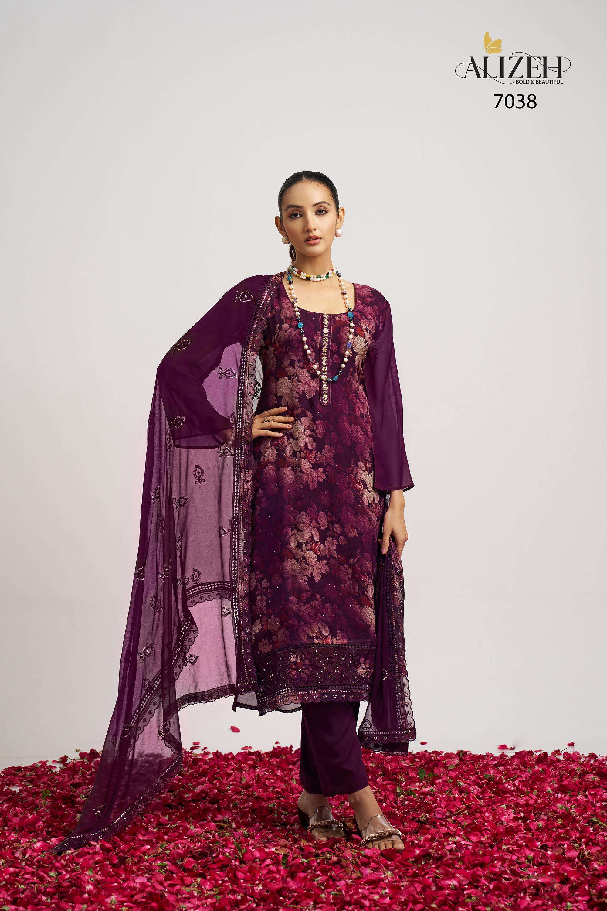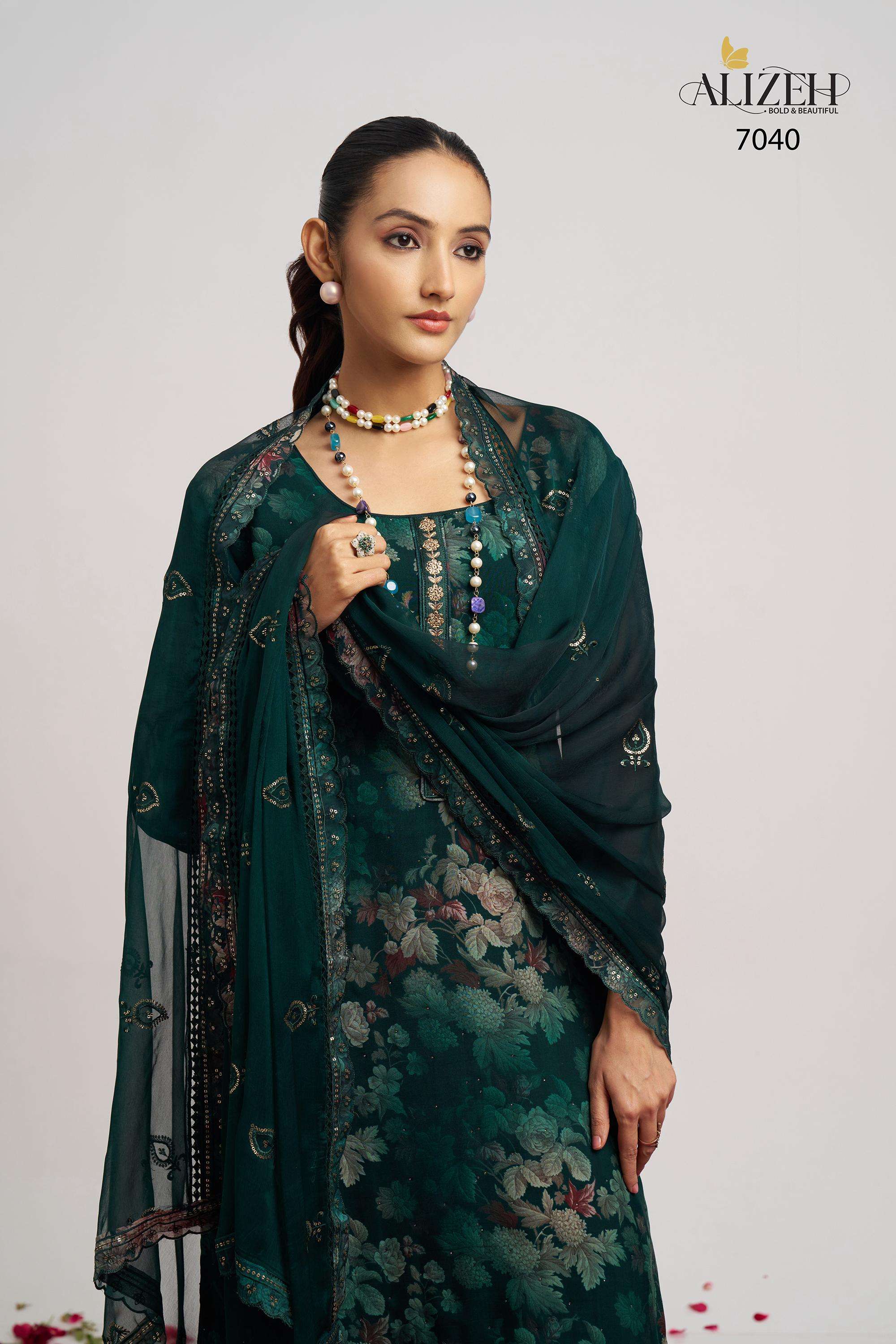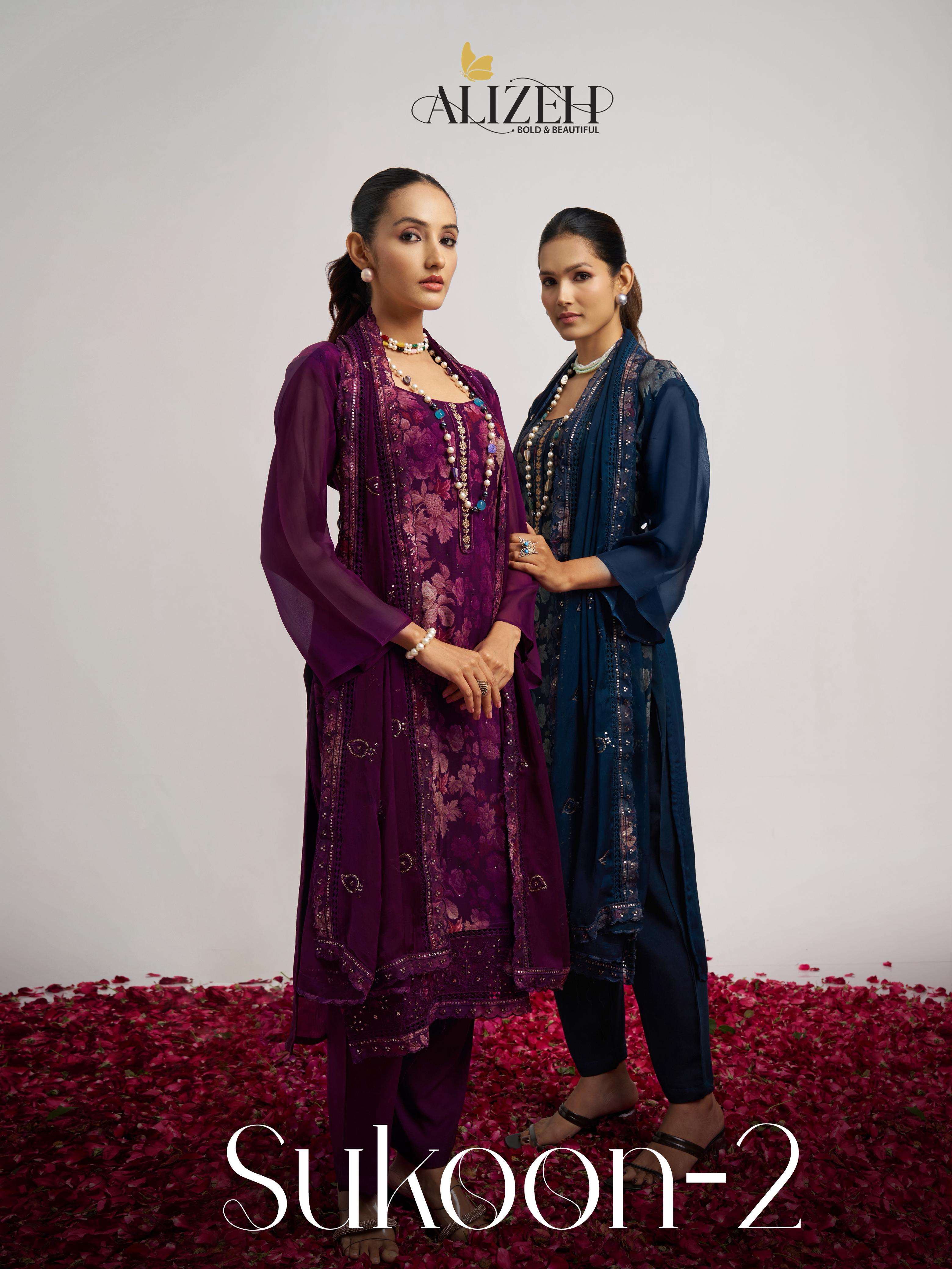 Buy Online SUKOON 2 by Alizeh suit collection manufacturer Surat 3 Pcs of Full Catalogue at Wholesale Price. Looking for SUKOON 2 by Alizeh suit collection manufacturer Surat Full Catalouge at Best Price? Buy Now SUKOON 2 by Alizeh suit collection manufacturer Surat at Wholesale Rate of Rs 7185 with Total 3 Pcs from authroized dealer and supplier of Alizeh Official Brand. Cost of Each piece is just only Rs 2395 which is very low and affordable price to resale the product in your retail store ,This is Surat based Wholesale Supplier & Dealer of Alizeh Official Brand. Click on Brand name to Know more about Alizeh Official Brand's products.Call or Whatsapp on 9898838984 for booking or enquiry