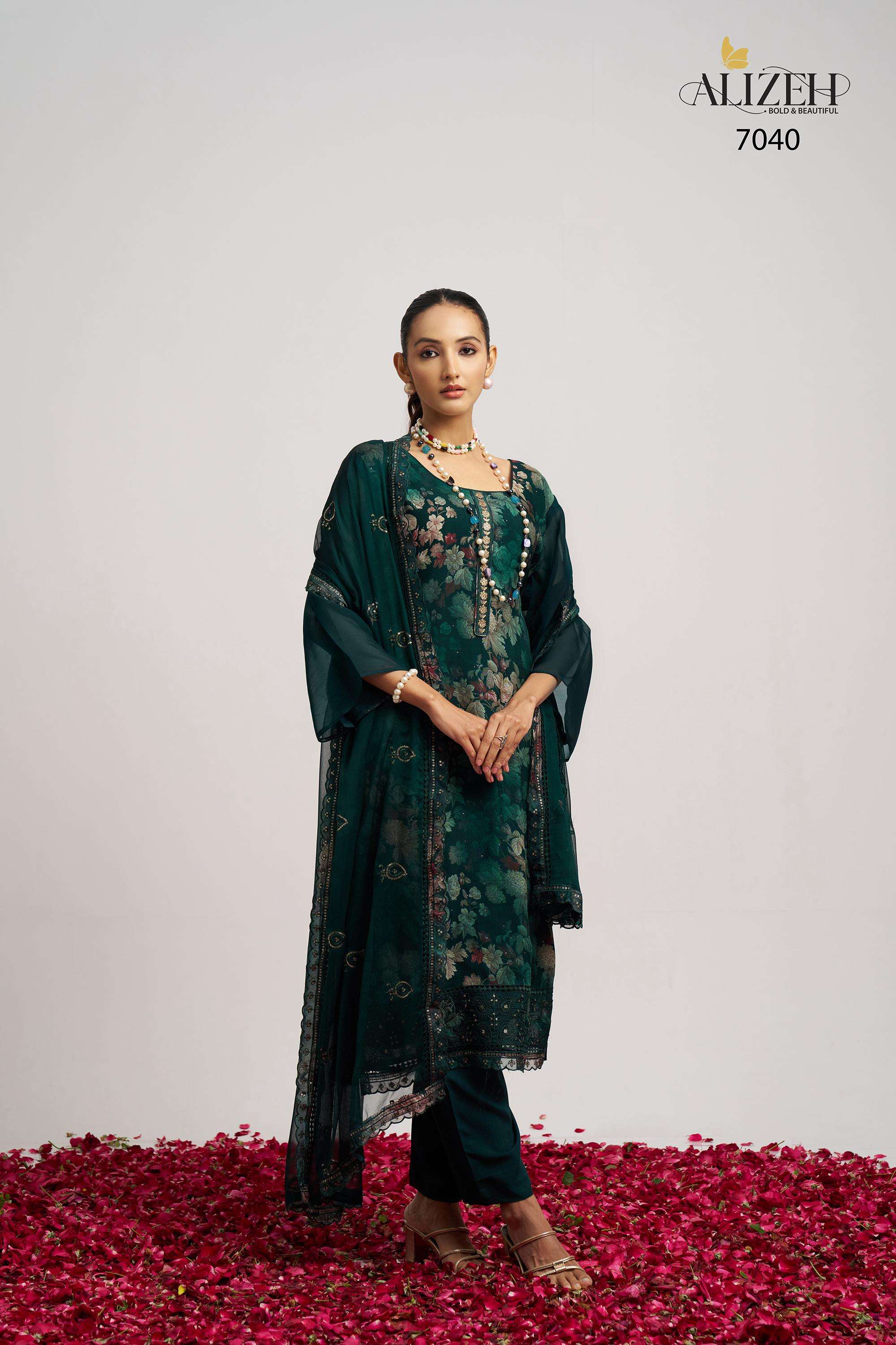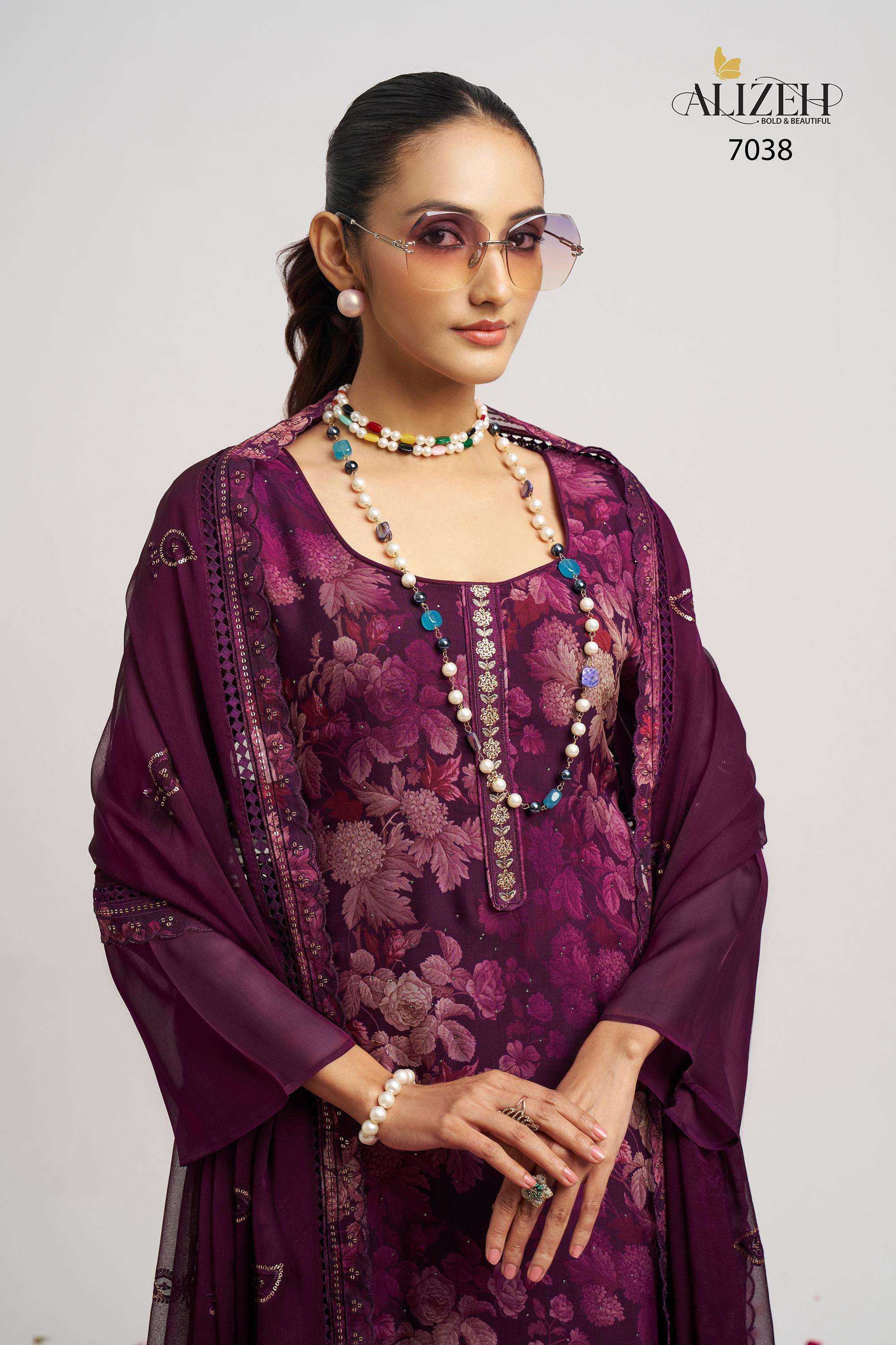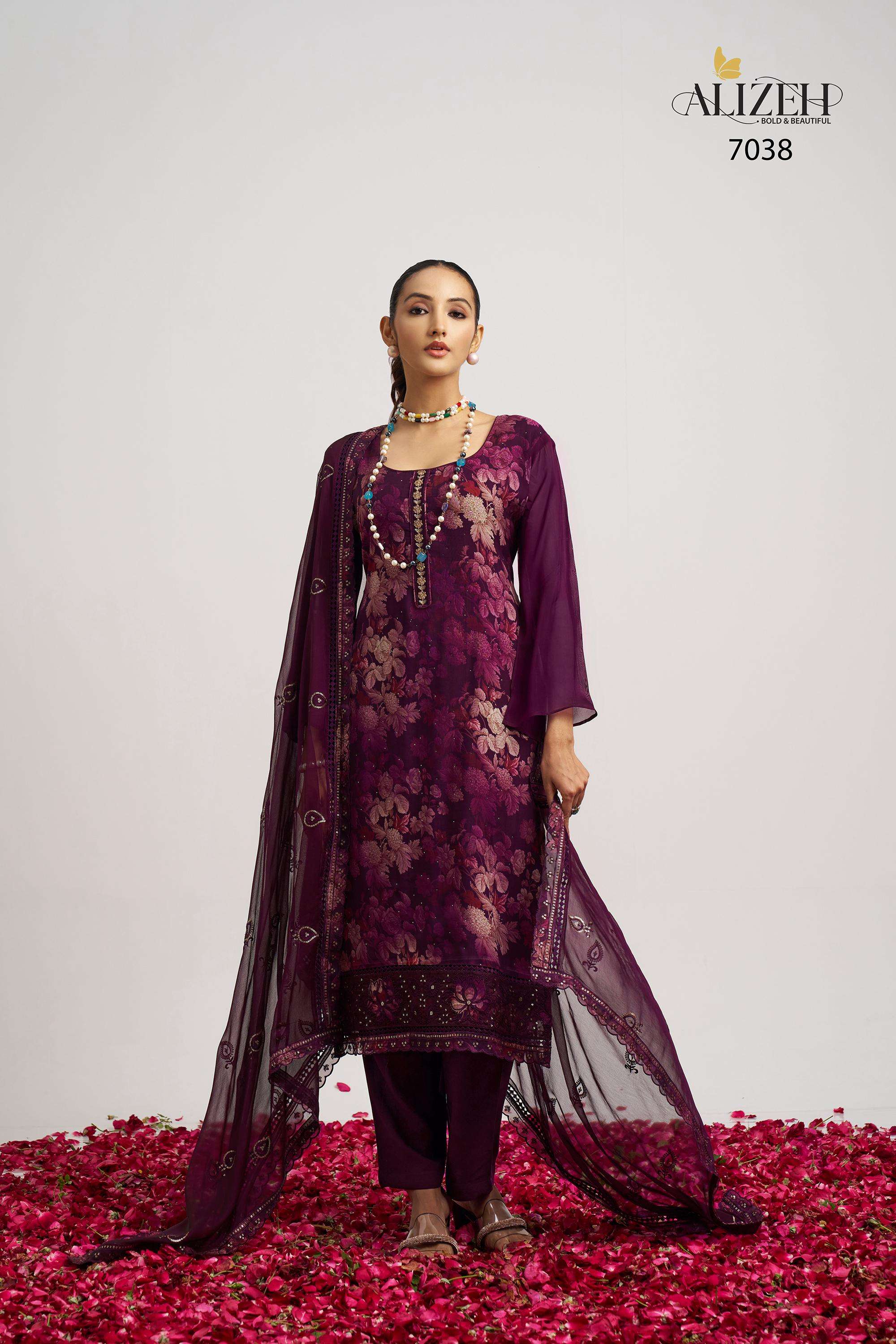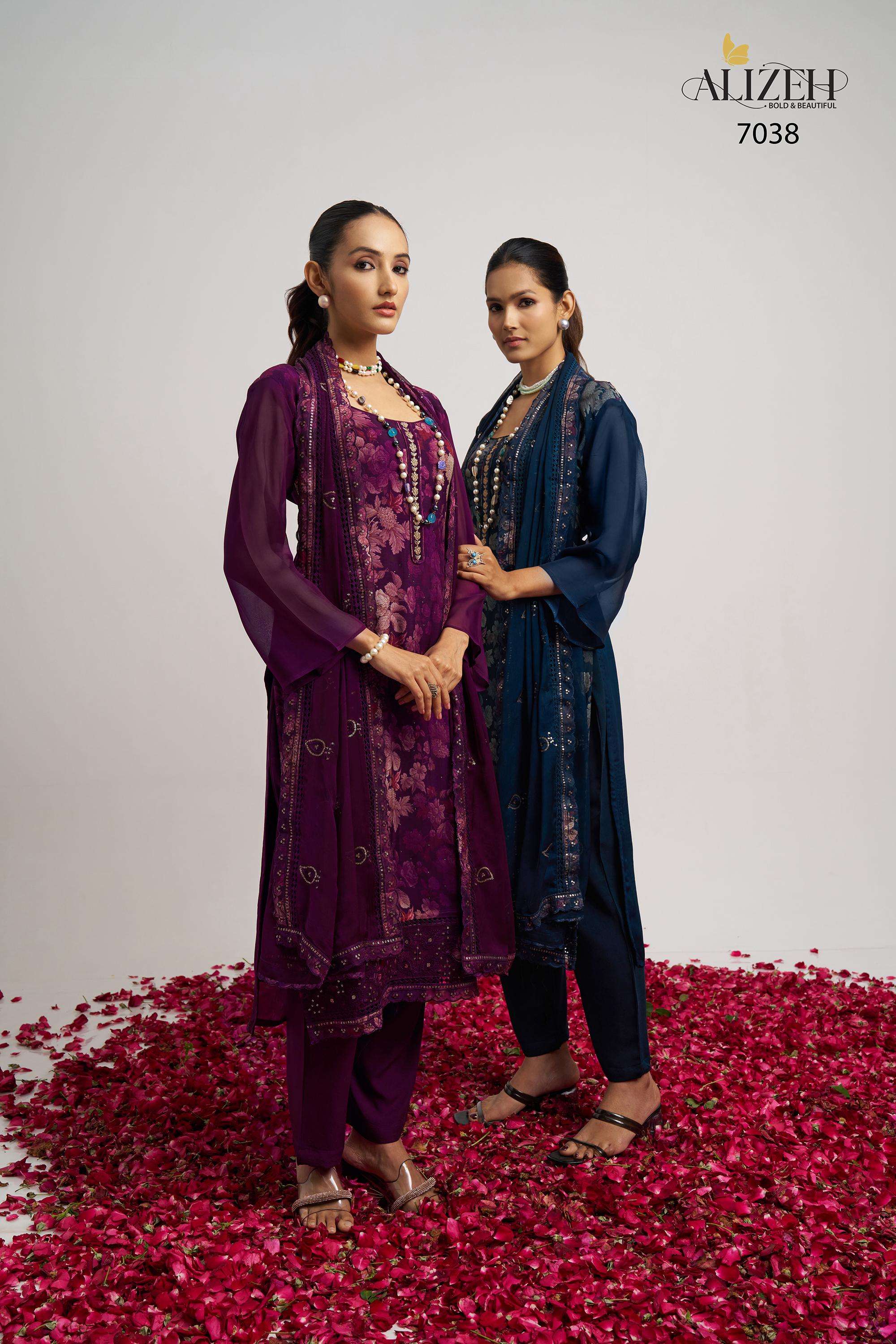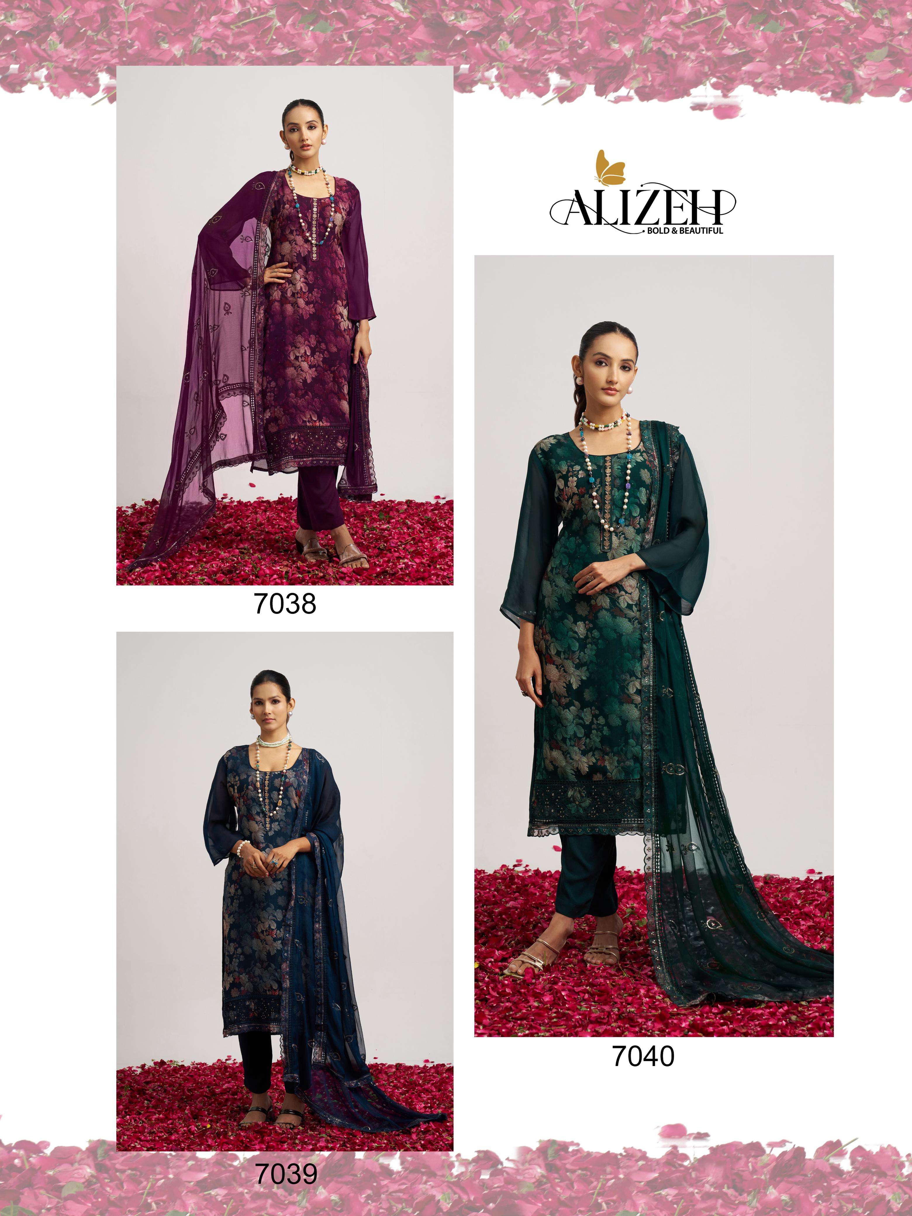 Buy Online SUKOON 2 by Alizeh suit collection manufacturer Surat 3 Pcs of Full Catalogue at Wholesale Price. Looking for SUKOON 2 by Alizeh suit collection manufacturer Surat Full Catalouge at Best Price? Buy Now SUKOON 2 by Alizeh suit collection manufacturer Surat at Wholesale Rate of Rs 7185 with Total 3 Pcs from authroized dealer and supplier of Alizeh Official Brand. Cost of Each piece is just only Rs 2395 which is very low and affordable price to resale the product in your retail store ,This is Surat based Wholesale Supplier & Dealer of Alizeh Official Brand. Click on Brand name to Know more about Alizeh Official Brand's products.Call or Whatsapp on 9898838984 for booking or enquiry