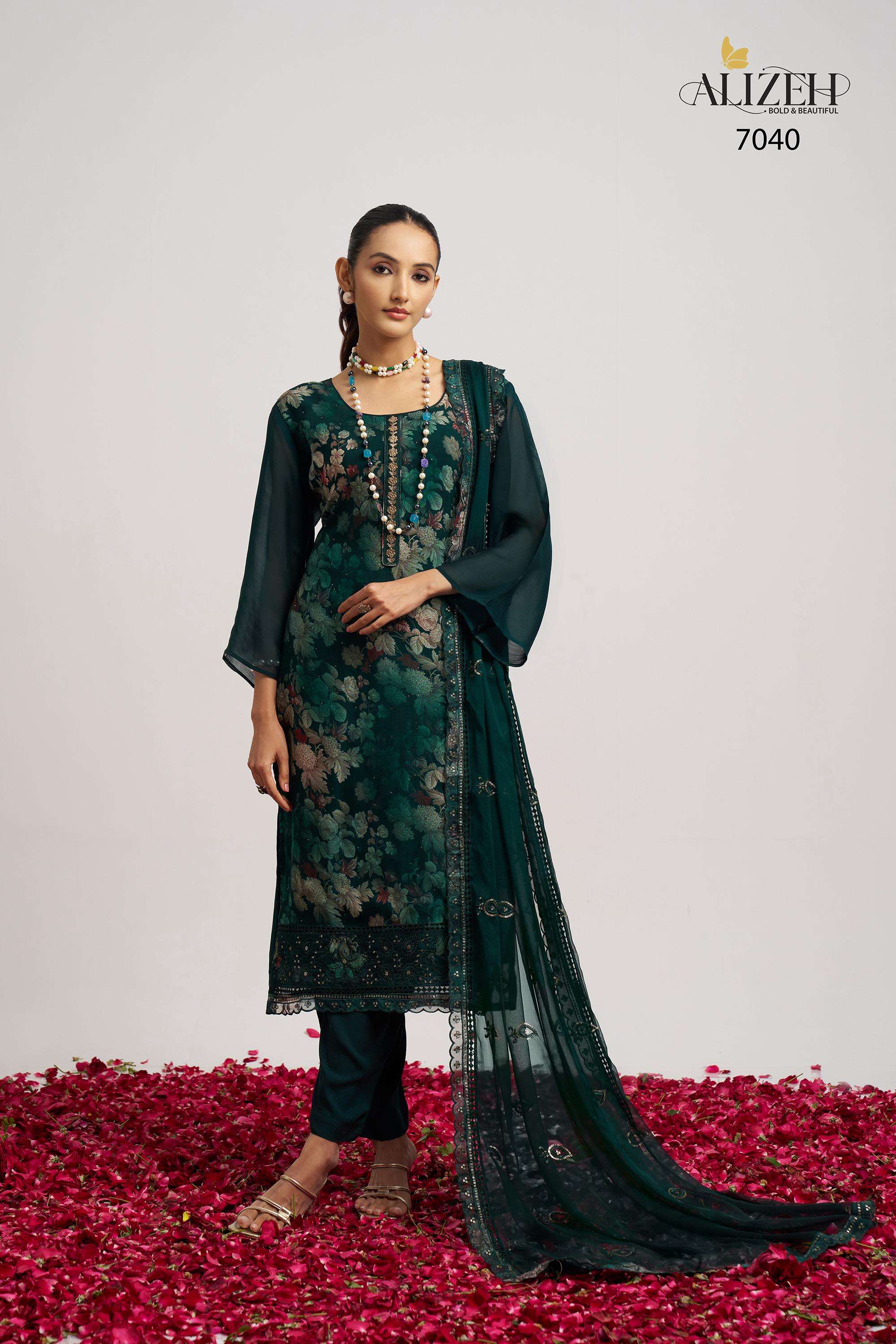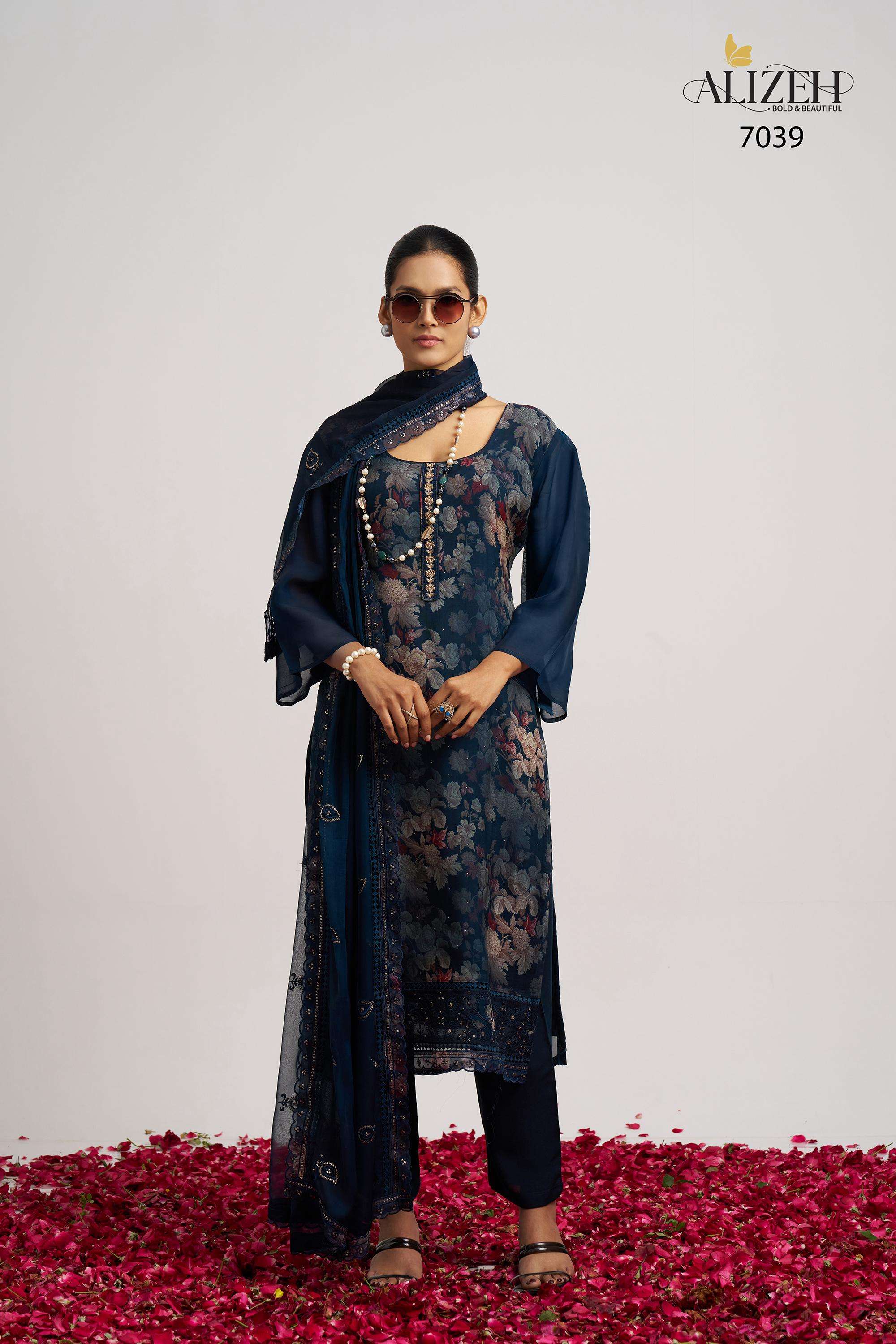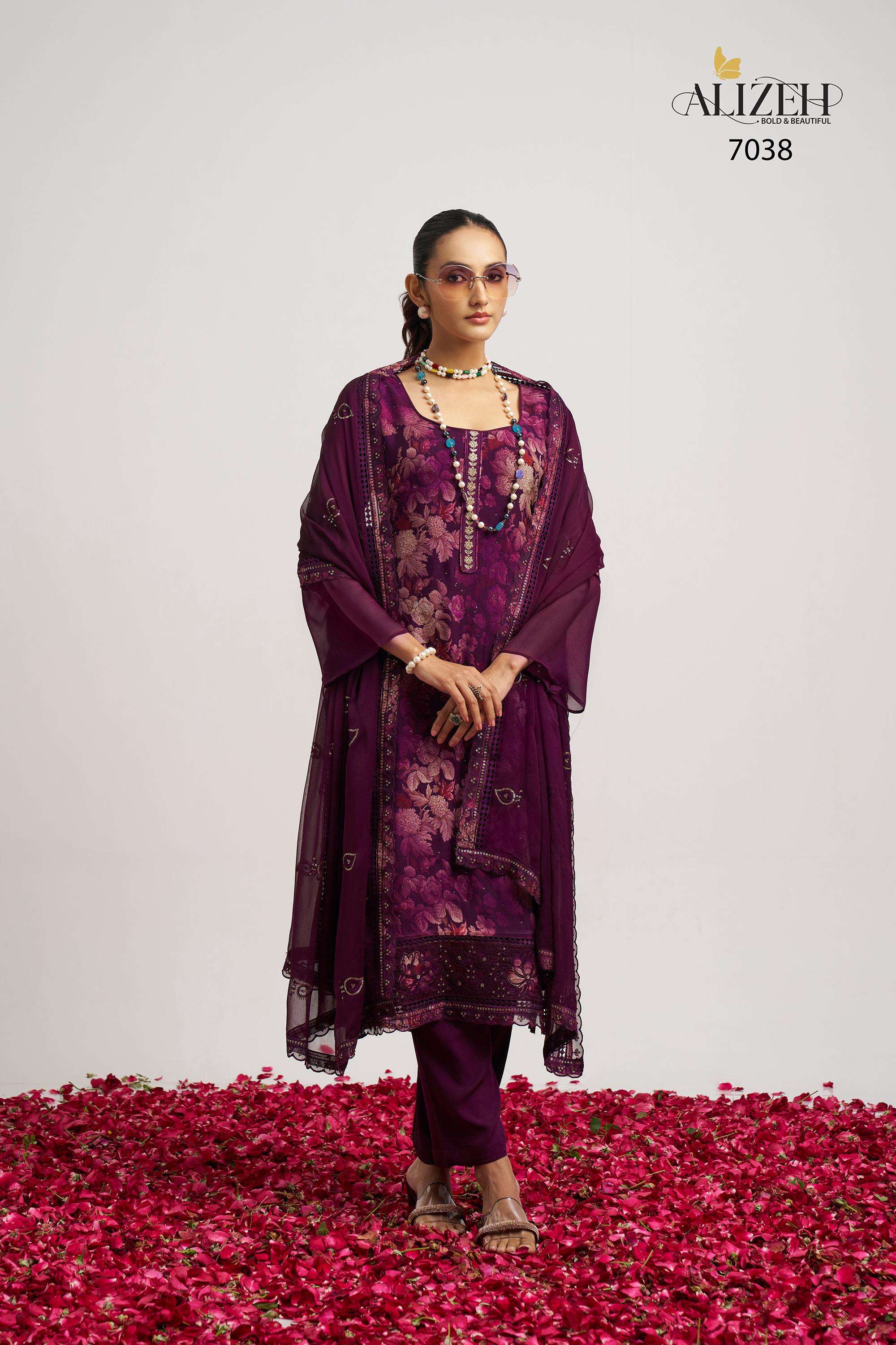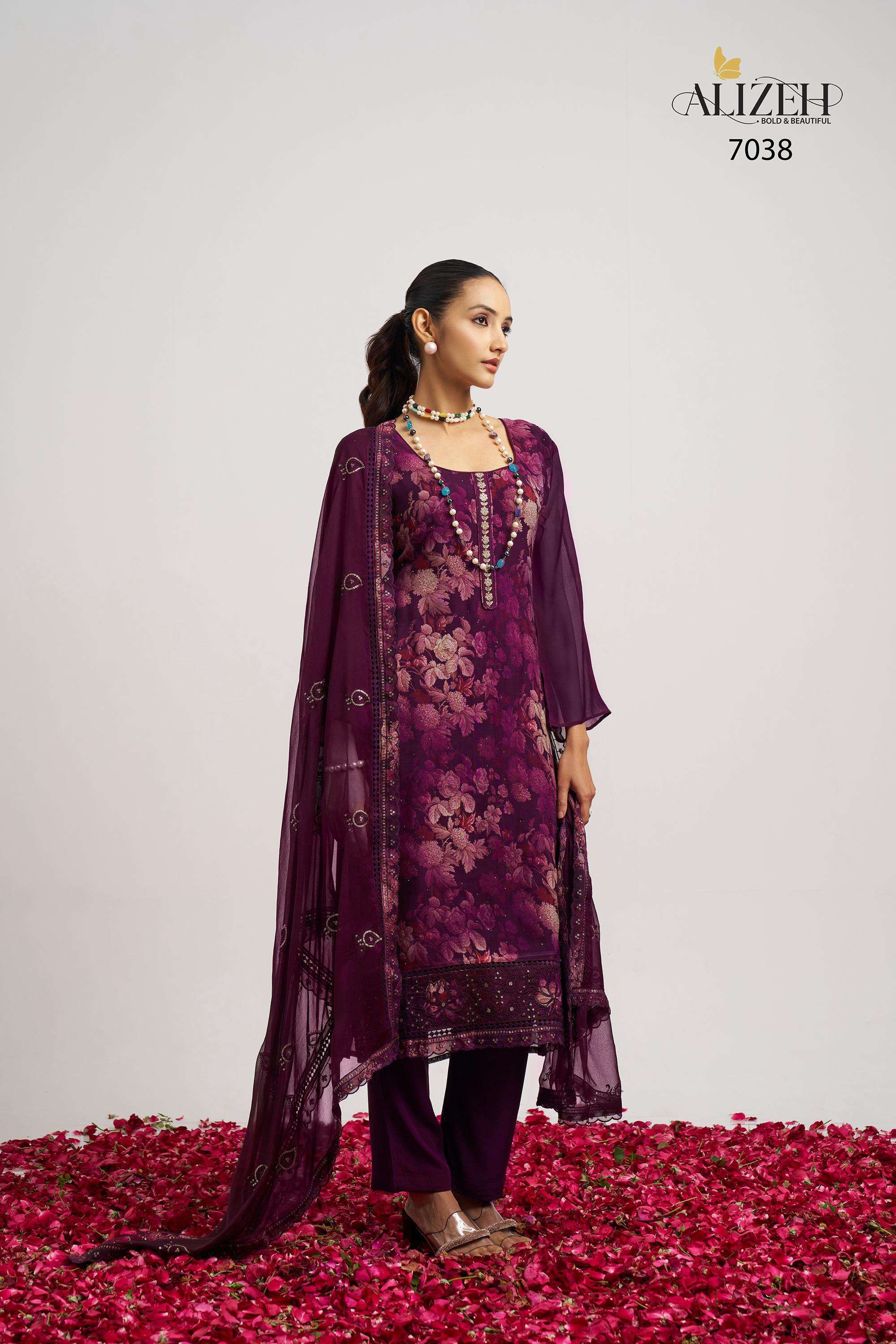 Buy Online SUKOON 2 by Alizeh suit collection manufacturer Surat 3 Pcs of Full Catalogue at Wholesale Price. Looking for SUKOON 2 by Alizeh suit collection manufacturer Surat Full Catalouge at Best Price? Buy Now SUKOON 2 by Alizeh suit collection manufacturer Surat at Wholesale Rate of Rs 7185 with Total 3 Pcs from authroized dealer and supplier of Alizeh Official Brand. Cost of Each piece is just only Rs 2395 which is very low and affordable price to resale the product in your retail store ,This is Surat based Wholesale Supplier & Dealer of Alizeh Official Brand. Click on Brand name to Know more about Alizeh Official Brand's products.Call or Whatsapp on 9898838984 for booking or enquiry