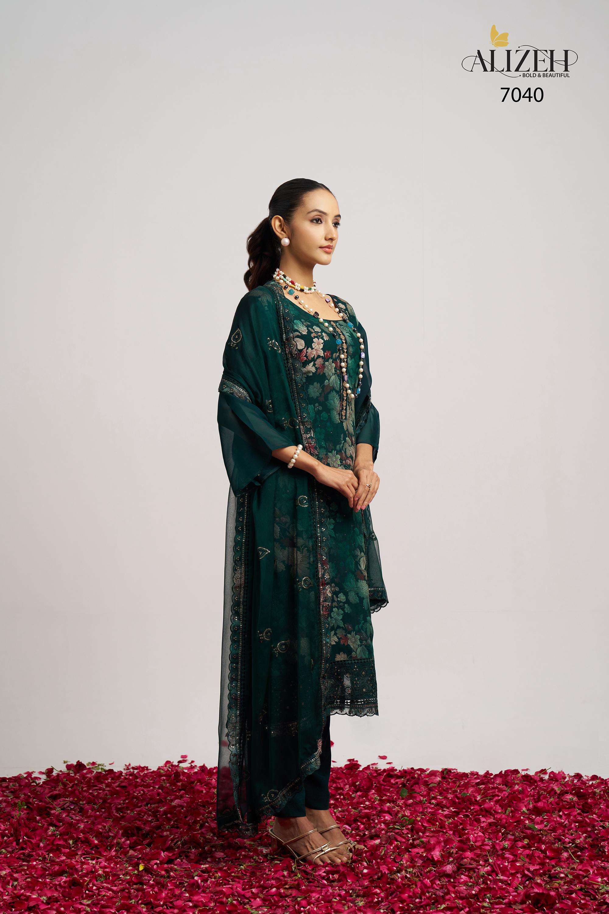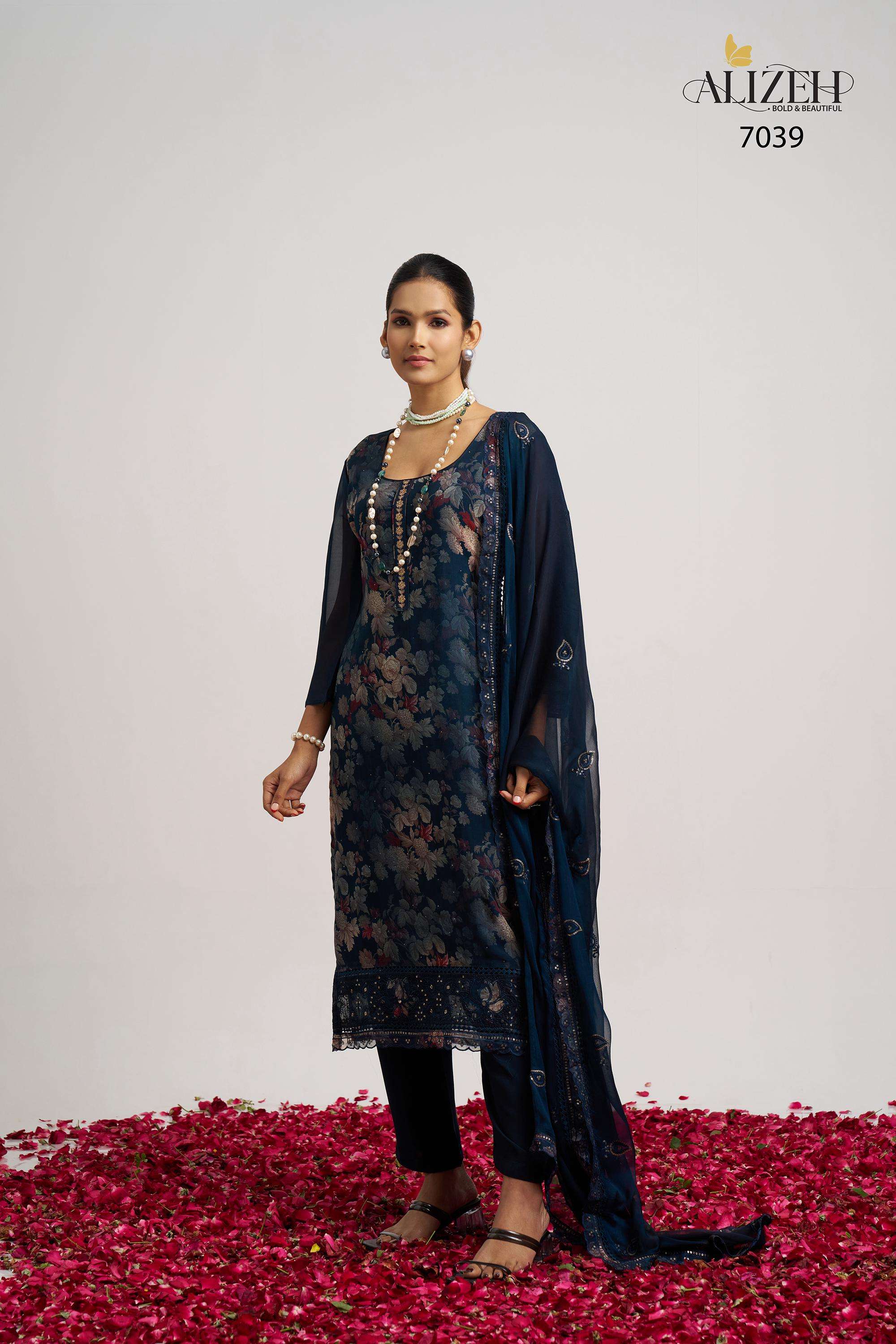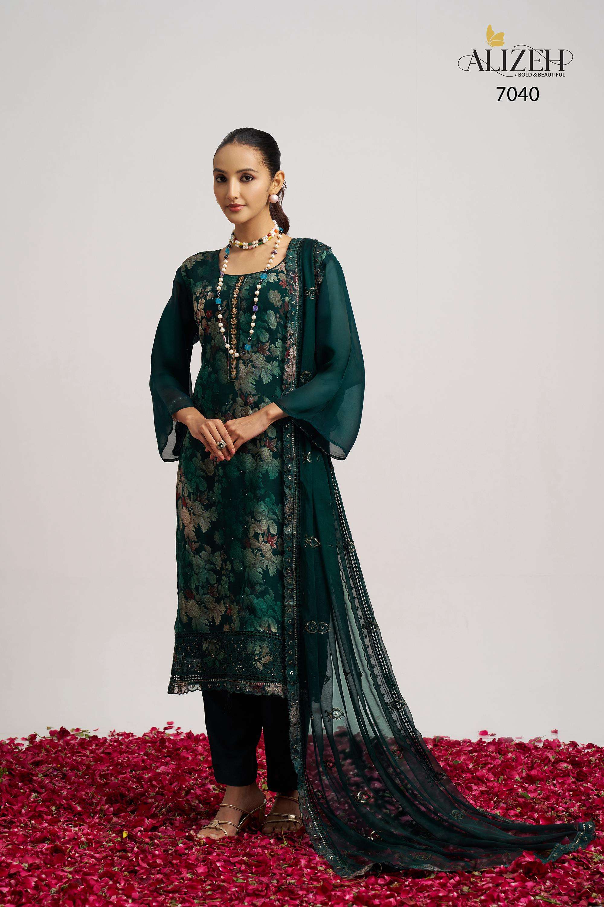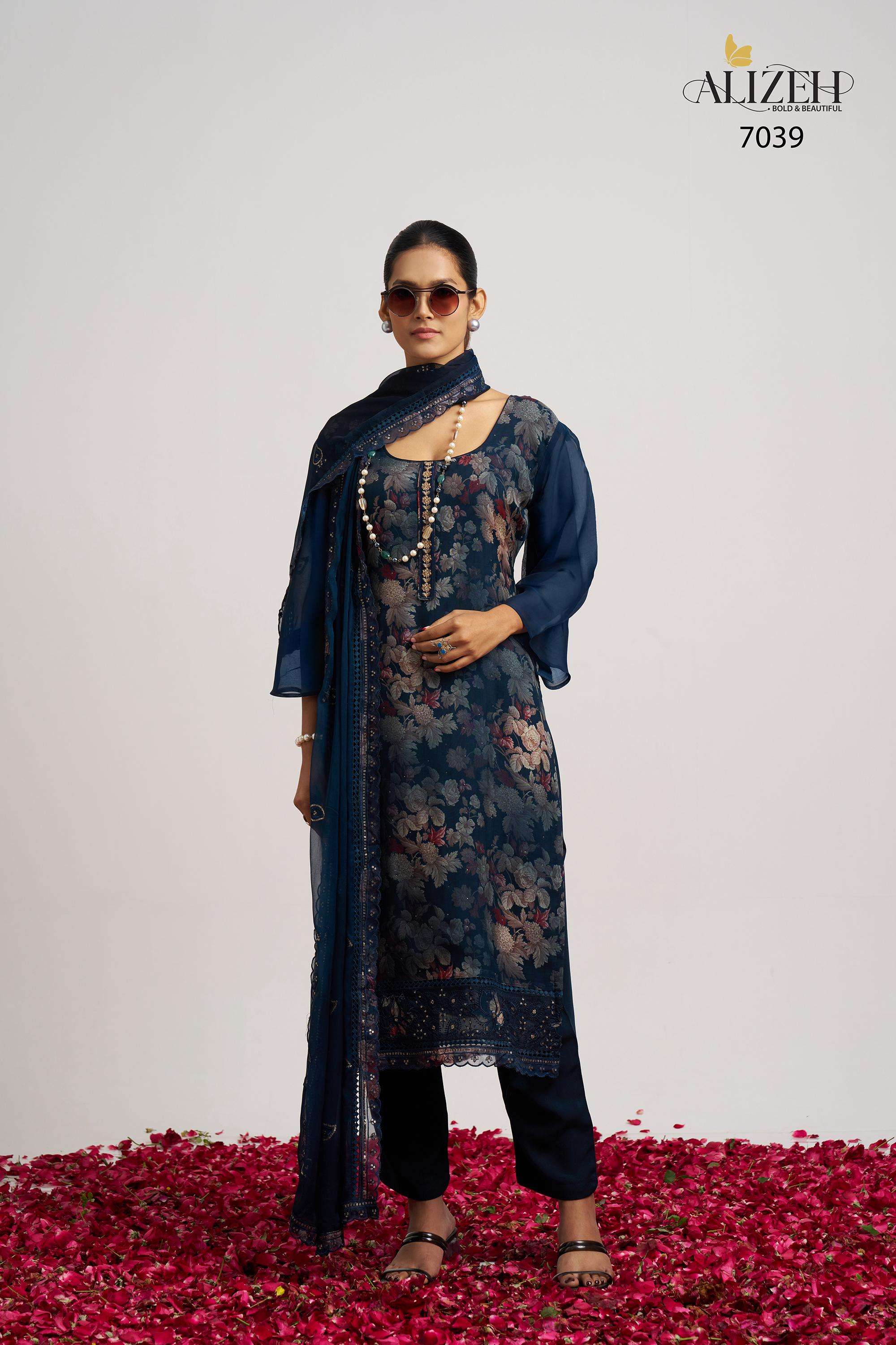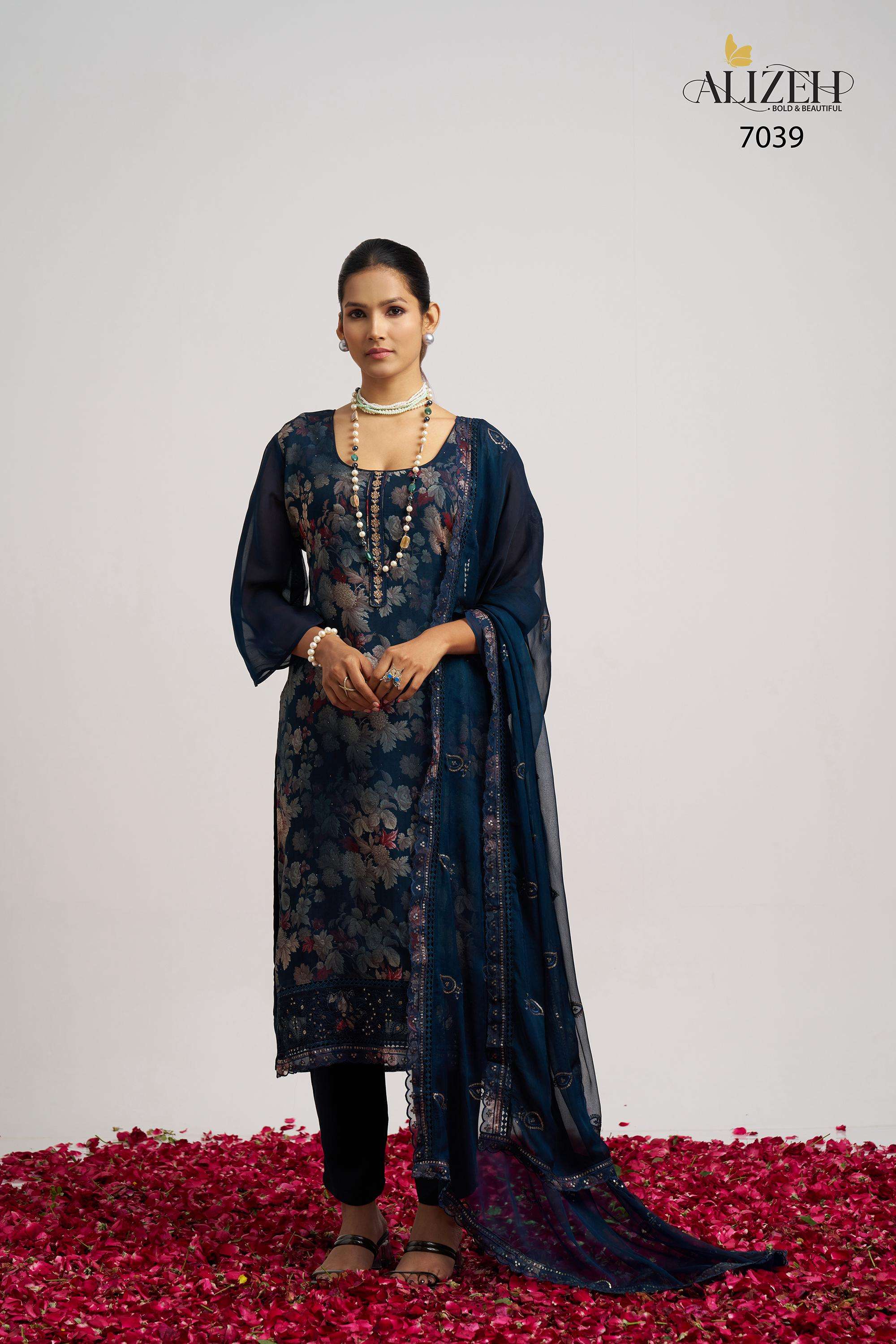 Buy Online SUKOON 2 by Alizeh suit collection manufacturer Surat 3 Pcs of Full Catalogue at Wholesale Price. Looking for SUKOON 2 by Alizeh suit collection manufacturer Surat Full Catalouge at Best Price? Buy Now SUKOON 2 by Alizeh suit collection manufacturer Surat at Wholesale Rate of Rs 7185 with Total 3 Pcs from authroized dealer and supplier of Alizeh Official Brand. Cost of Each piece is just only Rs 2395 which is very low and affordable price to resale the product in your retail store ,This is Surat based Wholesale Supplier & Dealer of Alizeh Official Brand. Click on Brand name to Know more about Alizeh Official Brand's products.Call or Whatsapp on 9898838984 for booking or enquiry