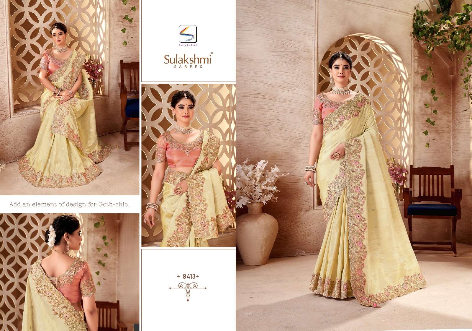 Buy Online SULAKSHMI silk SAREES collection manufacturer surat 7 Pcs of Full Catalogue at Wholesale Price. Looking for SULAKSHMI silk SAREES collection manufacturer surat Full Catalouge at Best Price? Buy Now SULAKSHMI silk SAREES collection manufacturer surat at Wholesale Rate of Rs 0 with Total 7 Pcs from authroized dealer and supplier of SULAKSHMI Brand. Cost of Each piece is just only Rs 0 which is very low and affordable price to resale the product in your retail store ,This is Surat based Wholesale Supplier & Dealer of SULAKSHMI Brand. Click on Brand name to Know more about SULAKSHMI Brand's products.Call or Whatsapp on 9898838984 for booking or enquiry