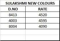 *Sulakshmi Super Hit Colours Collection* *Brand and Catalog Information* - *Brand:* Sulakshmi - *Catalog Name:* Sulakshmi Super Hit Colours - *Series:* 8004-4003-8413