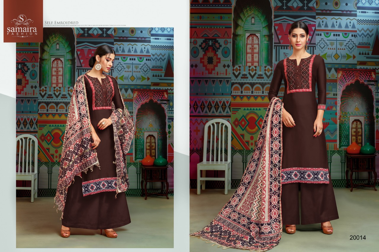 Buy Online Sullu Vol 2 By Samaira 20007 Series Fancy Midal Chanderi Cotton Salwar Kameez Catlog Wholesale Dealer Surat 10 Pcs of Full Catalogue at Wholesale Price. Looking for Sullu Vol 2 By Samaira 20007 Series Fancy Midal Chanderi Cotton Salwar Kameez Catlog Wholesale Dealer Surat Full Catalouge at Best Price? Buy Now Sullu Vol 2 By Samaira 20007 Series Fancy Midal Chanderi Cotton Salwar Kameez Catlog Wholesale Dealer Surat at Wholesale Rate of Rs 6500 with Total 10 Pcs from authroized dealer and supplier of Samaira Fashion Brand. Cost of Each piece is just only Rs 650 which is very low and affordable price to resale the product in your retail store ,This is Surat based Wholesale Supplier & Dealer of Samaira Fashion Brand. Click on Brand name to Know more about Samaira Fashion Brand's products.Call or Whatsapp on 9898838984 for booking or enquiry