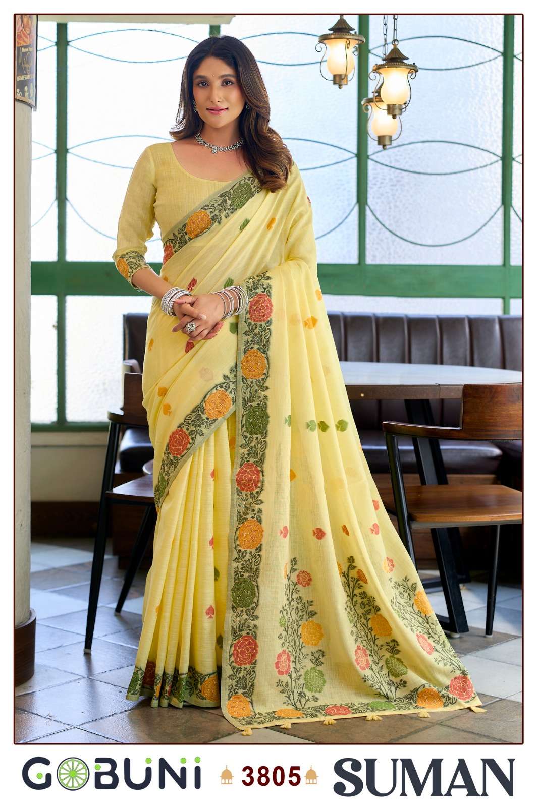 Buy Online Suman Series 3801 To 3806 By Gobuni saree Collection manufacturer surat 5 Pcs of Full Catalogue at Wholesale Price. Looking for Suman Series 3801 To 3806 By Gobuni saree Collection manufacturer surat Full Catalouge at Best Price? Buy Now Suman Series 3801 To 3806 By Gobuni saree Collection manufacturer surat at Wholesale Rate of Rs 6300 with Total 5 Pcs from authroized dealer and supplier of BRAND'S Brand. Cost of Each piece is just only Rs 1260 which is very low and affordable price to resale the product in your retail store ,This is Surat based Wholesale Supplier & Dealer of BRAND'S Brand. Click on Brand name to Know more about BRAND'S Brand's products.Call or Whatsapp on 9898838984 for booking or enquiry