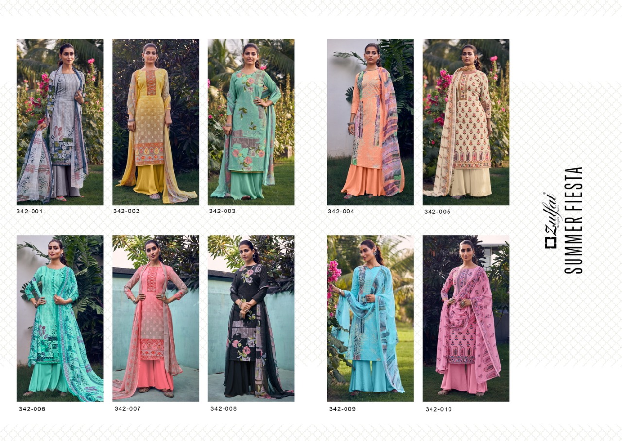 Buy Online Summer Fiesta By Zulfat Designer Suits Wholesale Supplier Traders In Surat 10 Pcs of Full Catalogue at Wholesale Price. Looking for Summer Fiesta By Zulfat Designer Suits Wholesale Supplier Traders In Surat Full Catalouge at Best Price? Buy Now Summer Fiesta By Zulfat Designer Suits Wholesale Supplier Traders In Surat at Wholesale Rate of Rs 3990 with Total 10 Pcs from authroized dealer and supplier of Brand. Cost of Each piece is just only Rs 399 which is very low and affordable price to resale the product in your retail store ,This is Surat based Wholesale Supplier & Dealer of Brand. Click on Brand name to Know more about Brand's products.Call or Whatsapp on 9898838984 for booking or enquiry