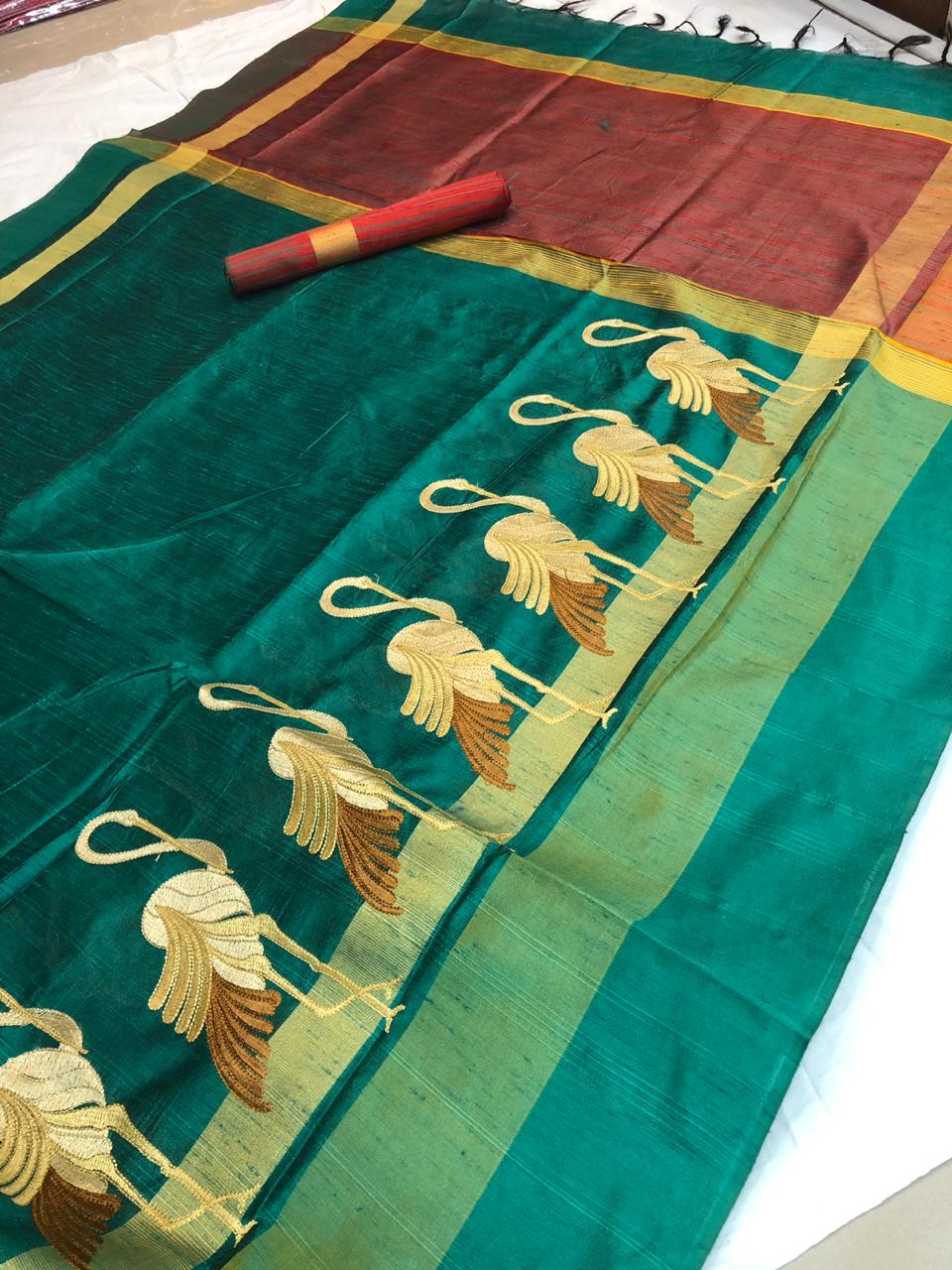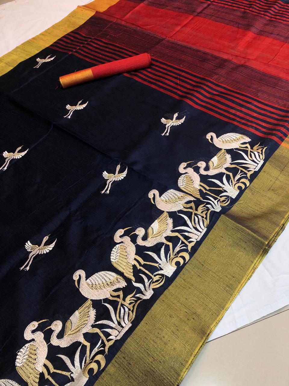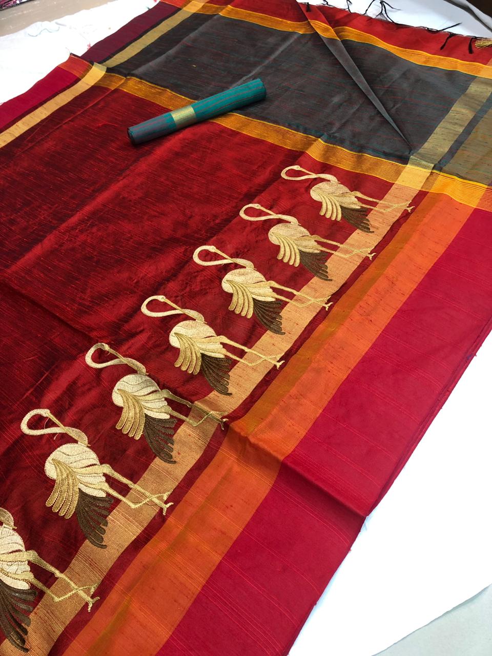 Summer for you Pure Row silk saree with contrast pallu and blouse and gold zari embroidered Now only @700 Gst ship extra Book fast |