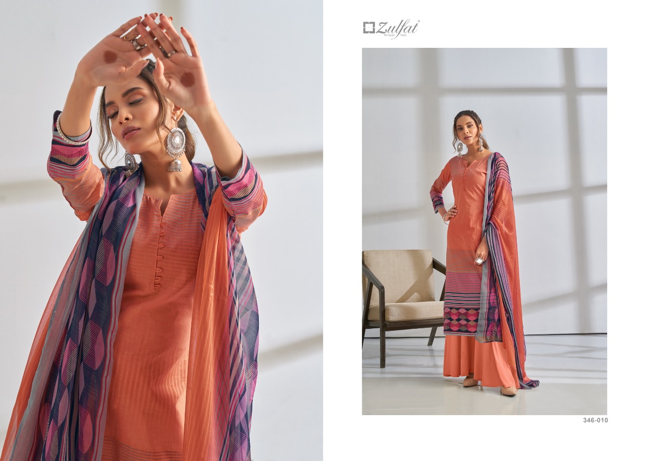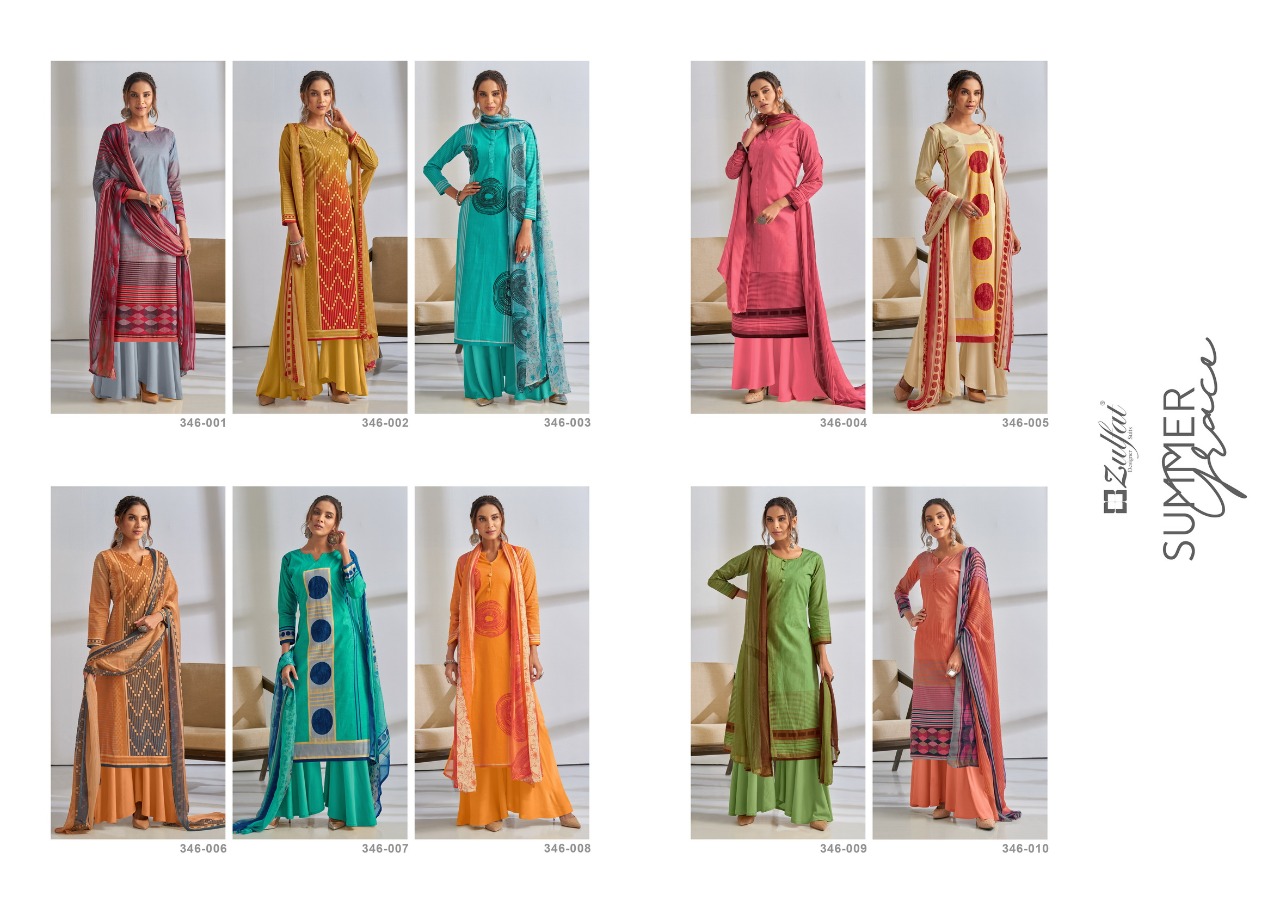 Buy Online Summer Grace By Zulfat Designer Suits Wholesale Suppliers And Dealer From India 10 Pcs of Full Catalogue at Wholesale Price. Looking for Summer Grace By Zulfat Designer Suits Wholesale Suppliers And Dealer From India Full Catalouge at Best Price? Buy Now Summer Grace By Zulfat Designer Suits Wholesale Suppliers And Dealer From India at Wholesale Rate of Rs 3990 with Total 10 Pcs from authroized dealer and supplier of Brand. Cost of Each piece is just only Rs 399 which is very low and affordable price to resale the product in your retail store ,This is Surat based Wholesale Supplier & Dealer of Brand. Click on Brand name to Know more about Brand's products.Call or Whatsapp on 9898838984 for booking or enquiry
