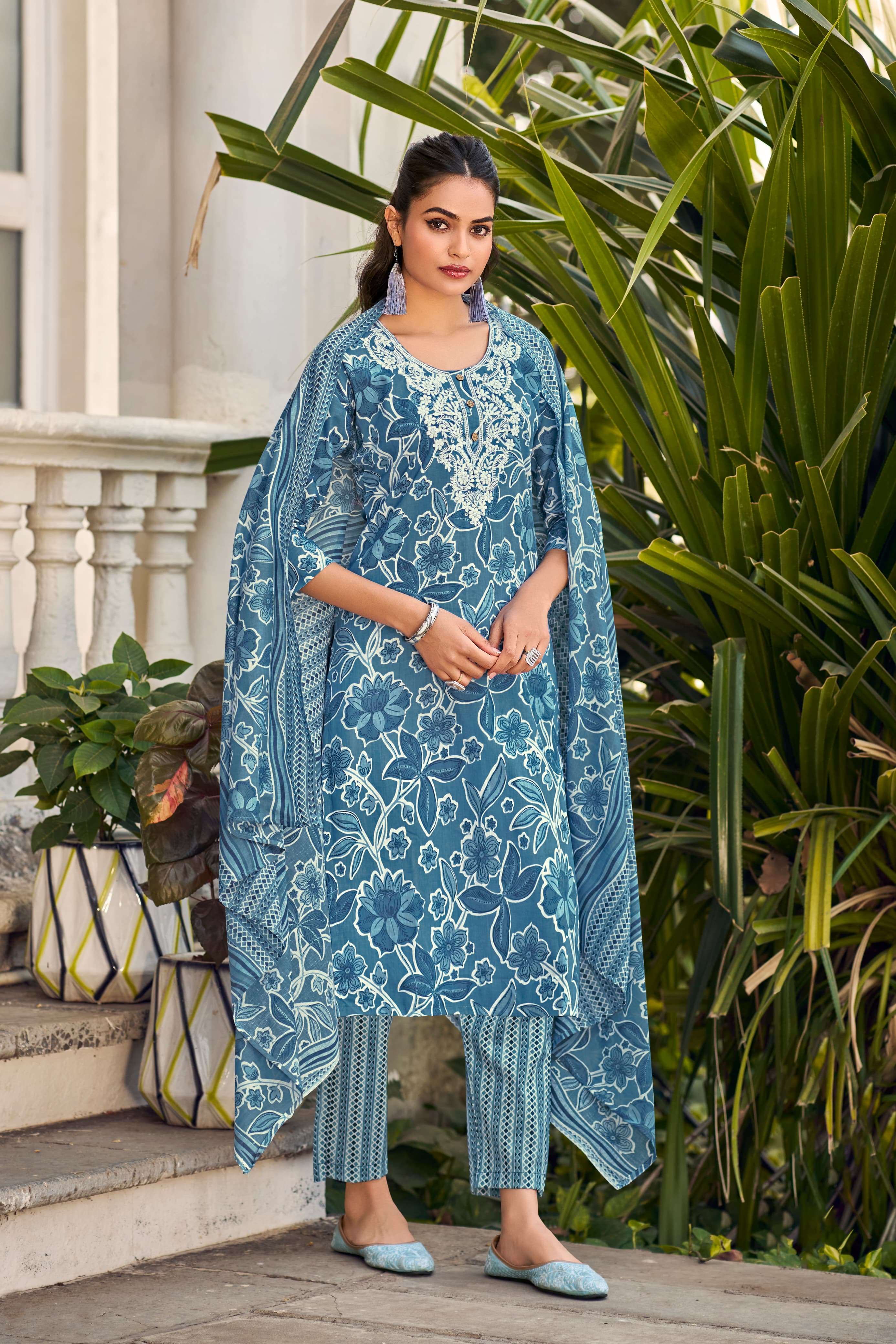 Fabric in Top : *Cotton Print* Spec. : *Embroidery Work* Fabric in Bottom : *Cotton Print* Fabric in Dupatta : *Cotton Mal Print*