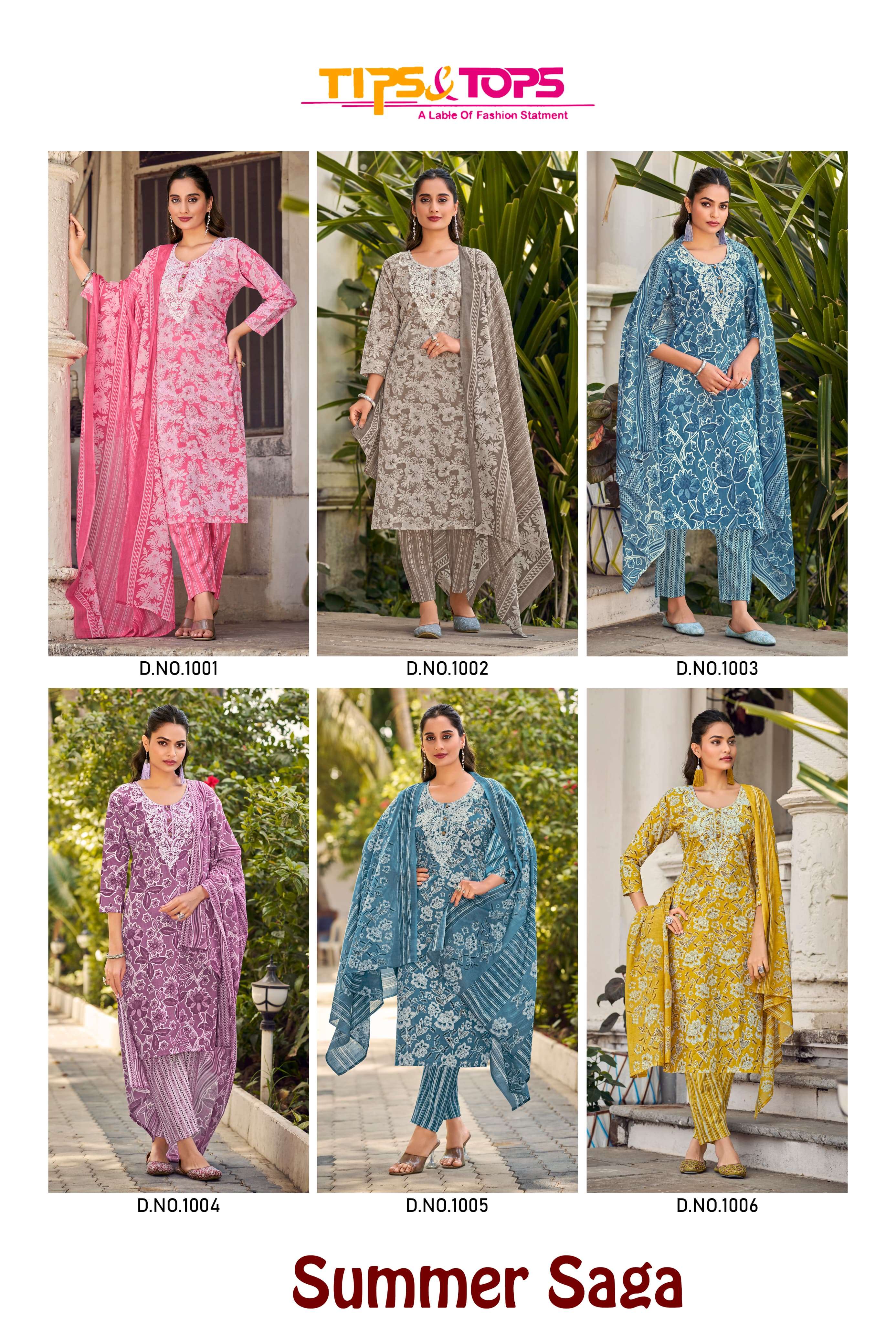 Buy Online SUMMER SAGA by TIPS TOPS Cotton print kurti collection manufacturer surat 6 Pcs of Full Catalogue at Wholesale Price. Looking for SUMMER SAGA by TIPS TOPS Cotton print kurti collection manufacturer surat Full Catalouge at Best Price? Buy Now SUMMER SAGA by TIPS TOPS Cotton print kurti collection manufacturer surat at Wholesale Rate of Rs 3930 with Total 6 Pcs from authroized dealer and supplier of Tips Tops Brand. Cost of Each piece is just only Rs 655 which is very low and affordable price to resale the product in your retail store ,This is Surat based Wholesale Supplier & Dealer of Tips Tops Brand. Click on Brand name to Know more about Tips Tops Brand's products.Call or Whatsapp on 9898838984 for booking or enquiry