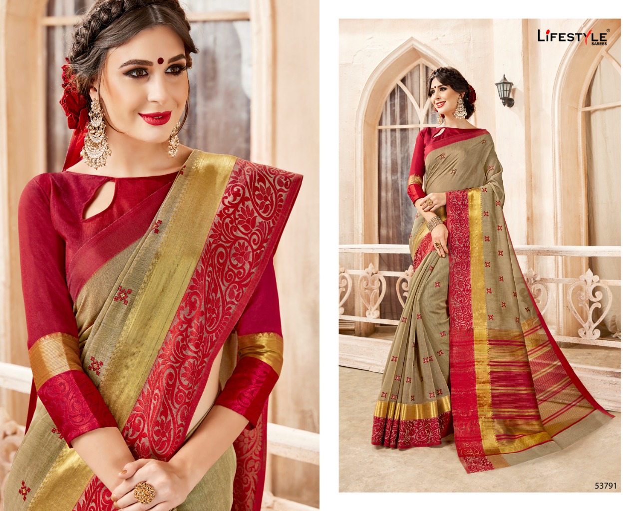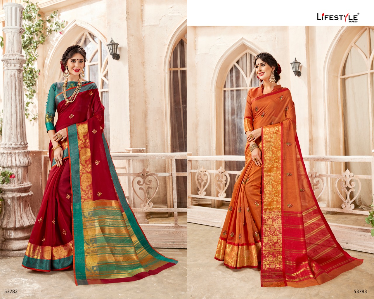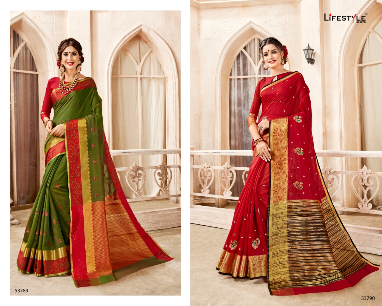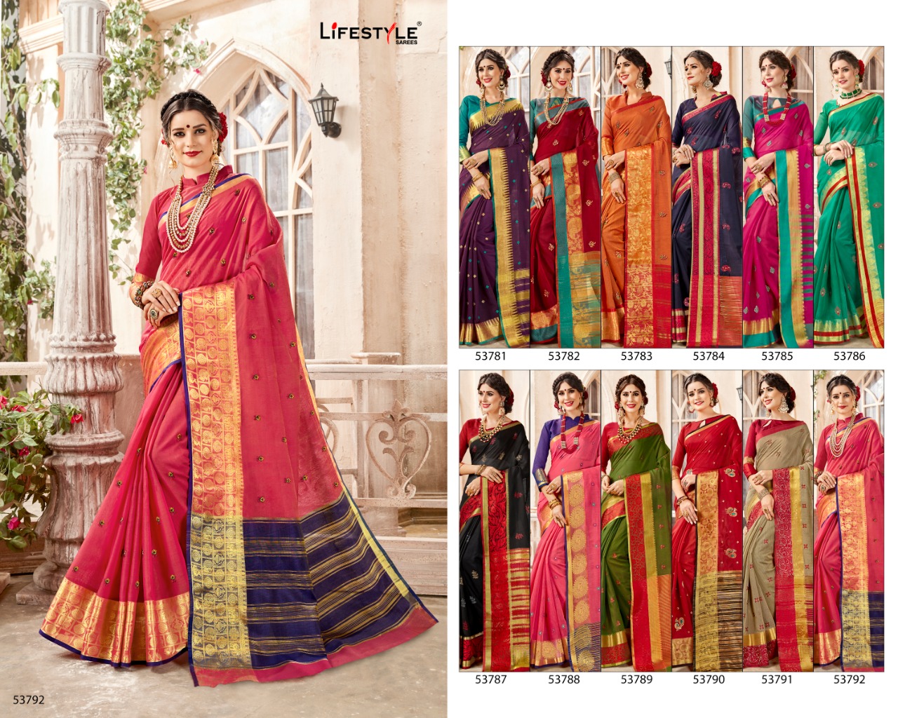 Buy Online Sundaram By Lifestyle 52781 Series Fancy Weaving Embrodery Range Saree Catlog Wholesale Dealer Surat 12 Pcs of Full Catalogue at Wholesale Price. Looking for Sundaram By Lifestyle 52781 Series Fancy Weaving Embrodery Range Saree Catlog Wholesale Dealer Surat Full Catalouge at Best Price? Buy Now Sundaram By Lifestyle 52781 Series Fancy Weaving Embrodery Range Saree Catlog Wholesale Dealer Surat at Wholesale Rate of Rs 8640 with Total 12 Pcs from authroized dealer and supplier of LIFESTYLE Brand. Cost of Each piece is just only Rs 720 which is very low and affordable price to resale the product in your retail store ,This is Surat based Wholesale Supplier & Dealer of LIFESTYLE Brand. Click on Brand name to Know more about LIFESTYLE Brand's products.Call or Whatsapp on 9898838984 for booking or enquiry