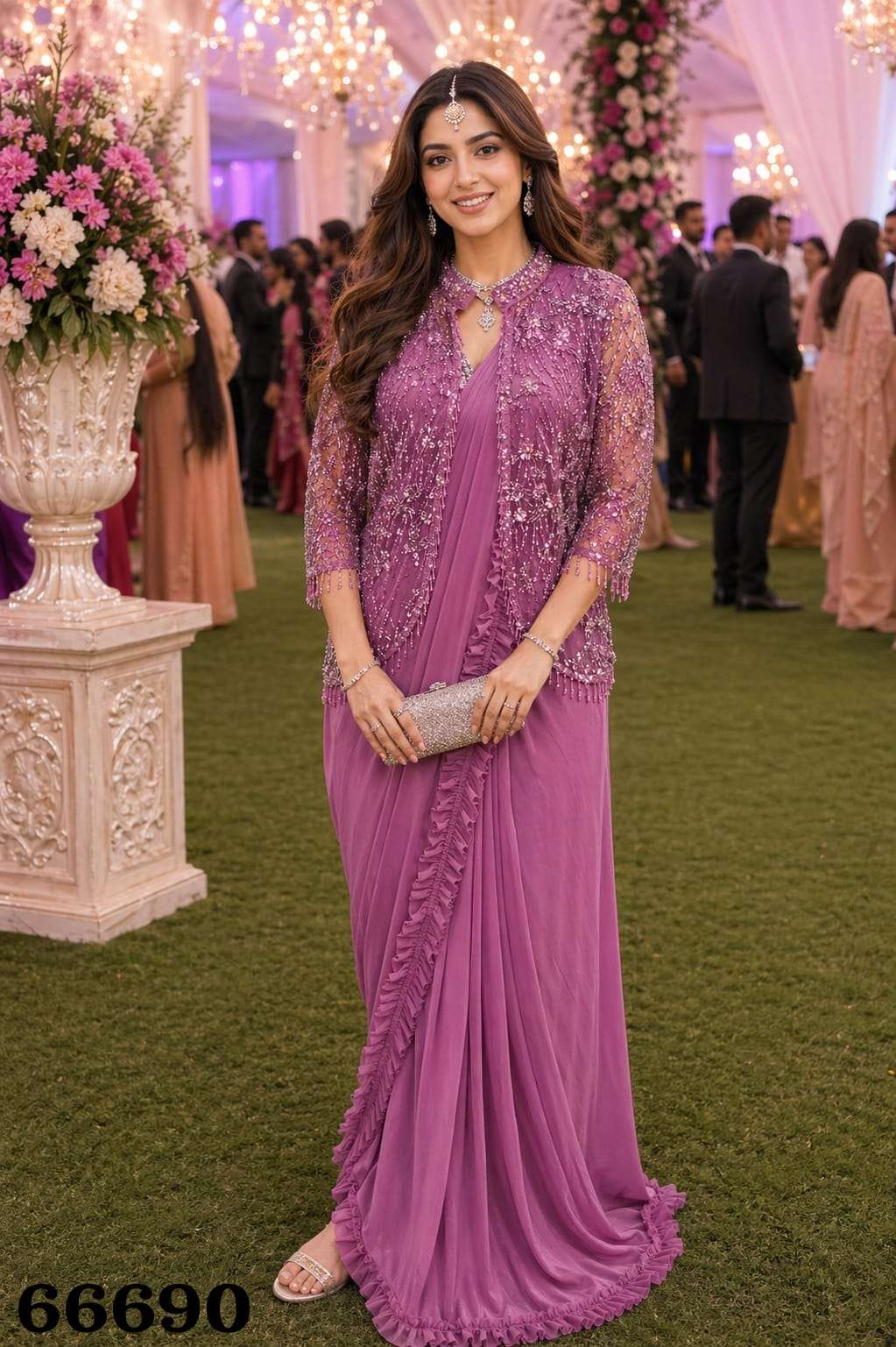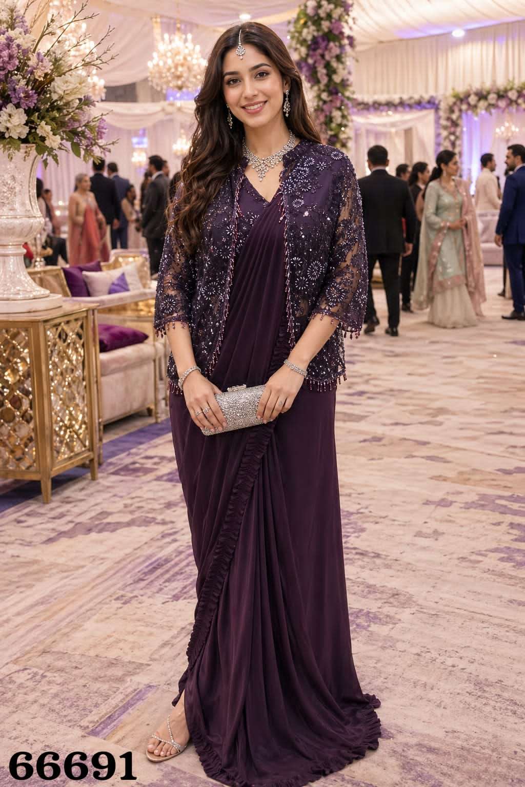 FABRIC - REAL PREMIUM LYCRA ( READY TO WEAR SAREE WITH FULL BLOUSE & JACKET WORK 38 SIZE FULL STICH WITH 4 INCH MARJIN )