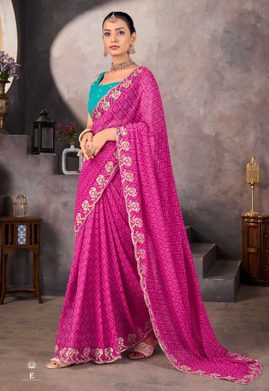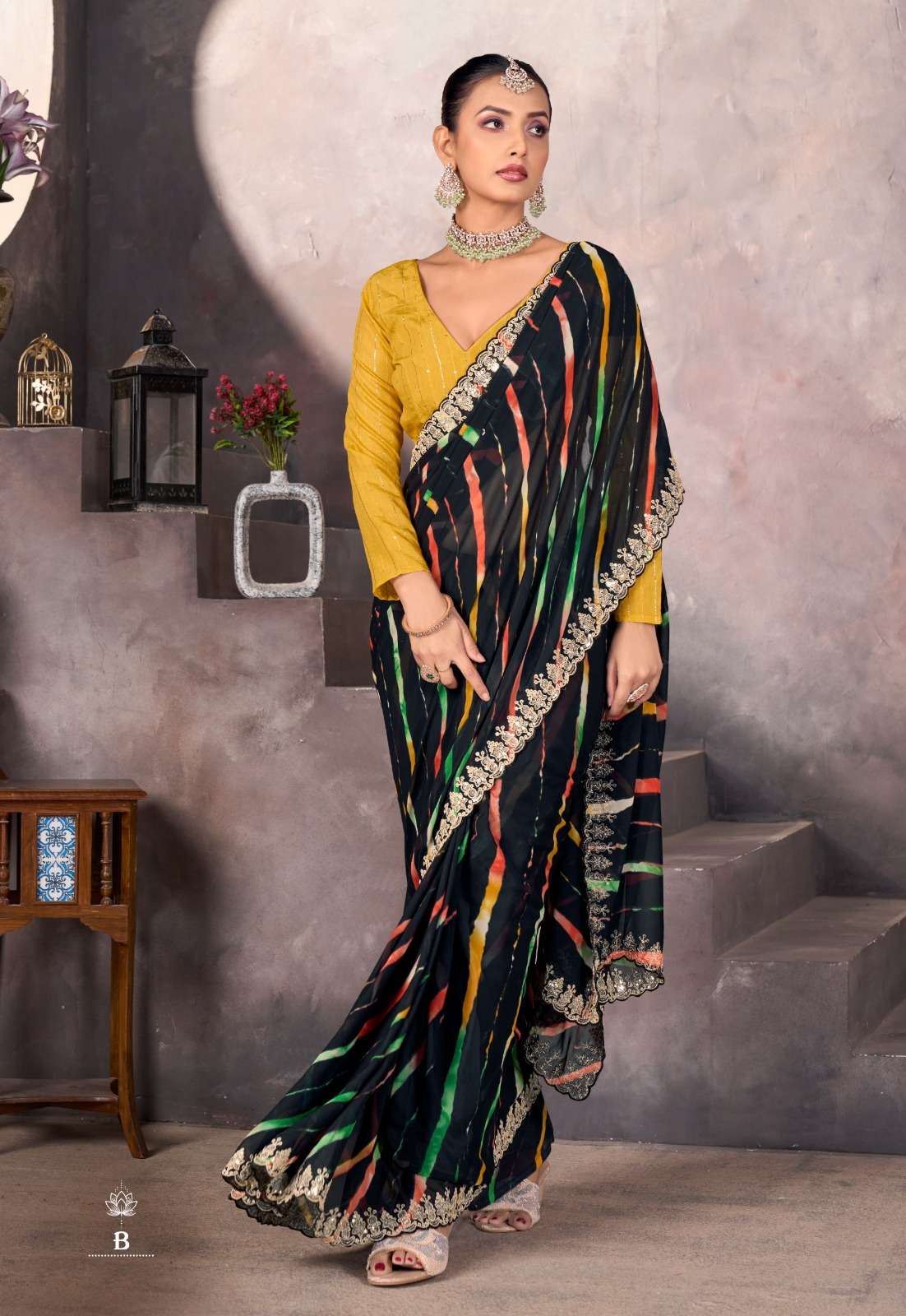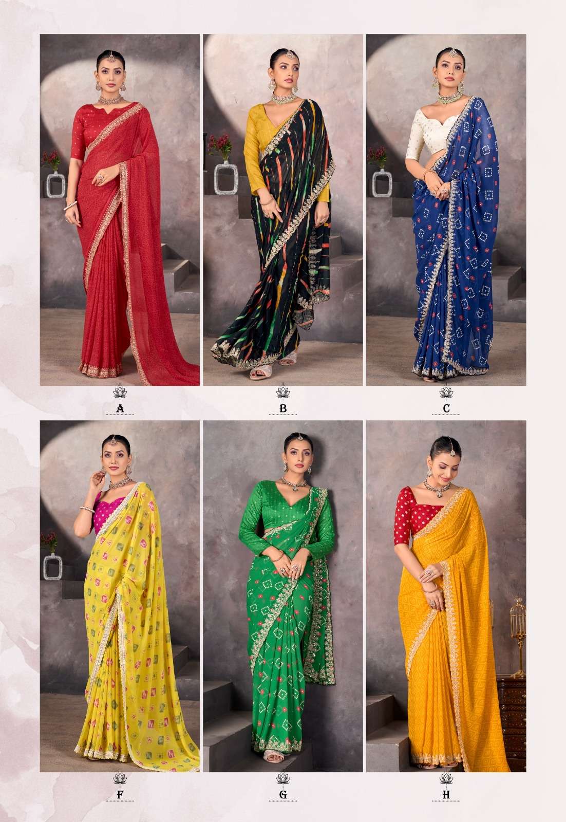 ➡️Catlog - *Sundri* ➡️Fabric - *Soft Georgette with Embroidery Border & Contrast Blouse* ➡️Rate - *925+5%*