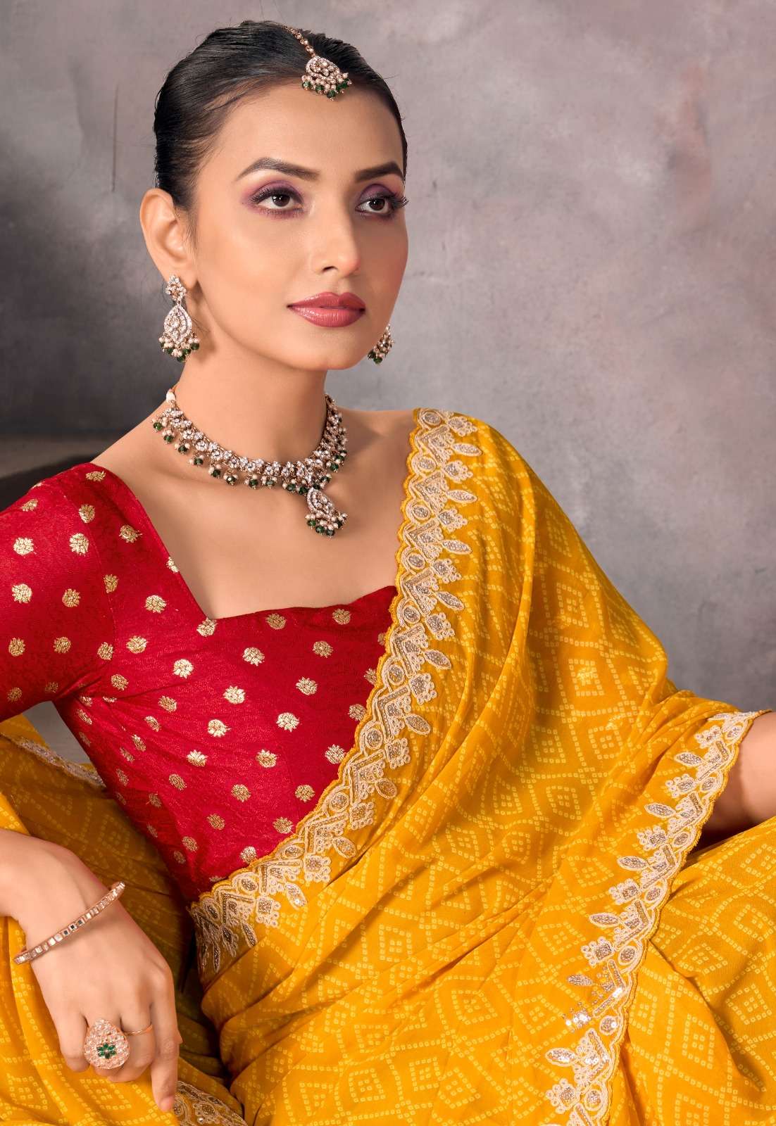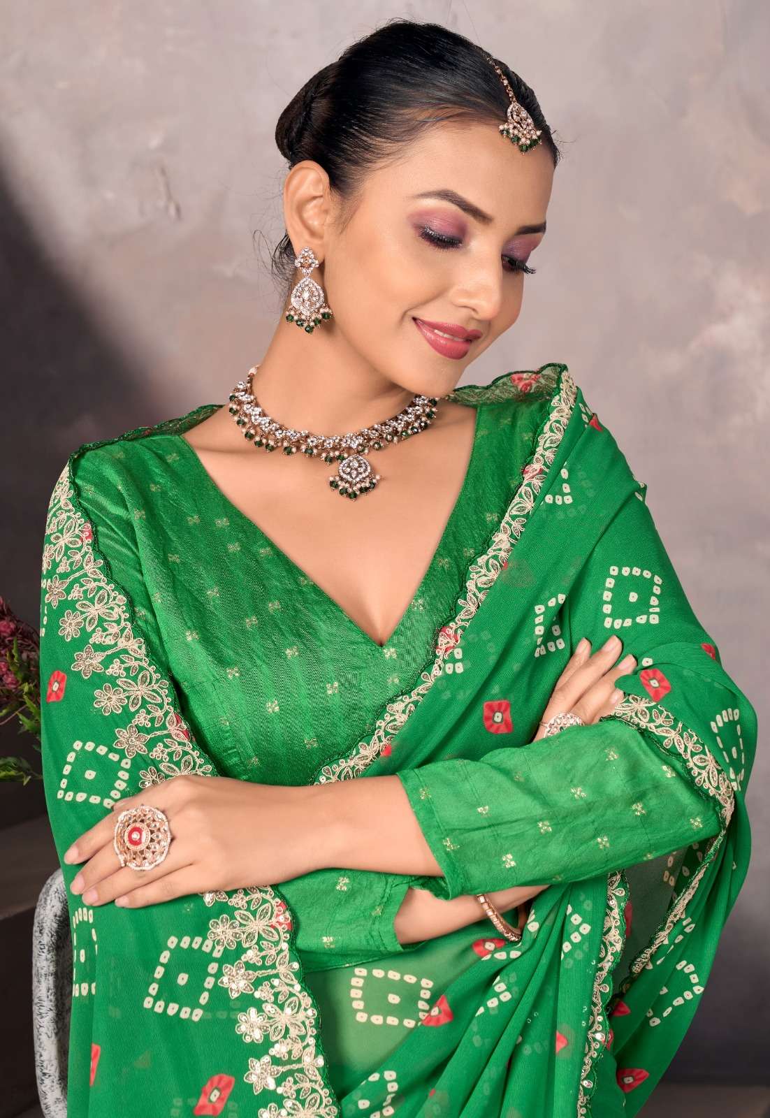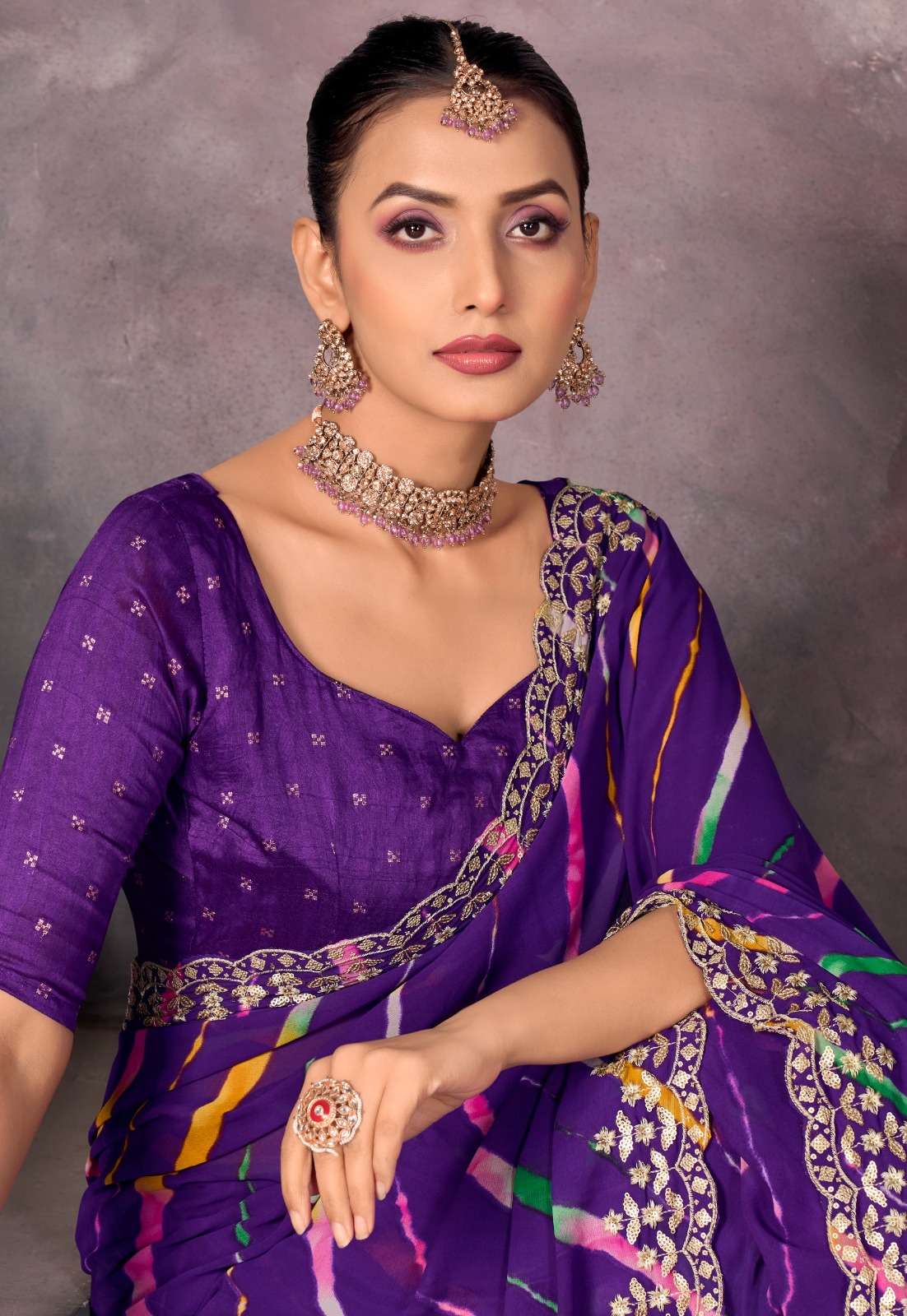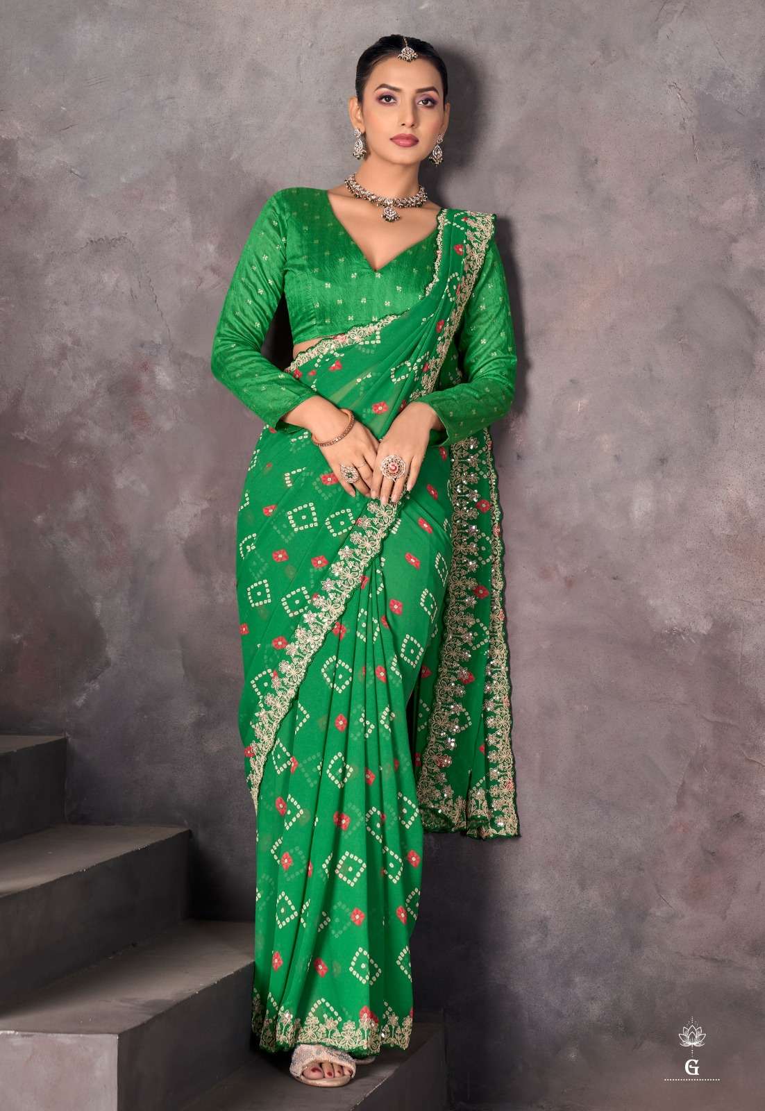 ➡️Catlog - *Sundri* ➡️Fabric - *Soft Georgette with Embroidery Border & Contrast Blouse* ➡️Rate - *925+5%*