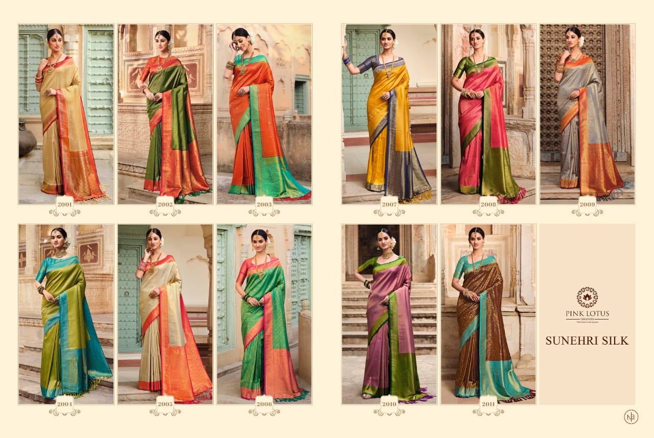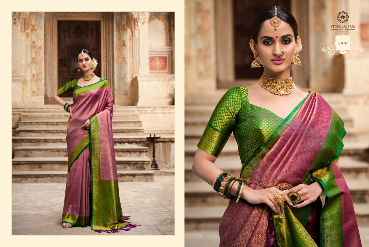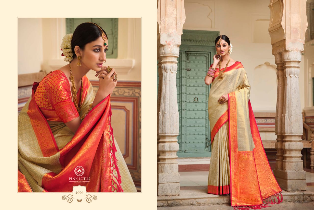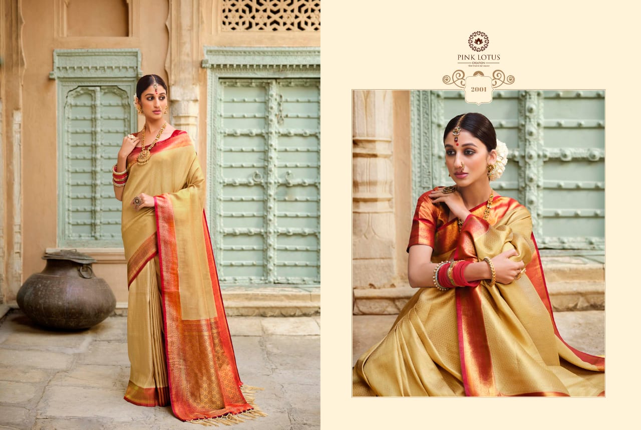 Sunheri Silk New Kanjivaram Silk Saree By Pink Lotus Single And Set Stockiest And Supplier From Surat