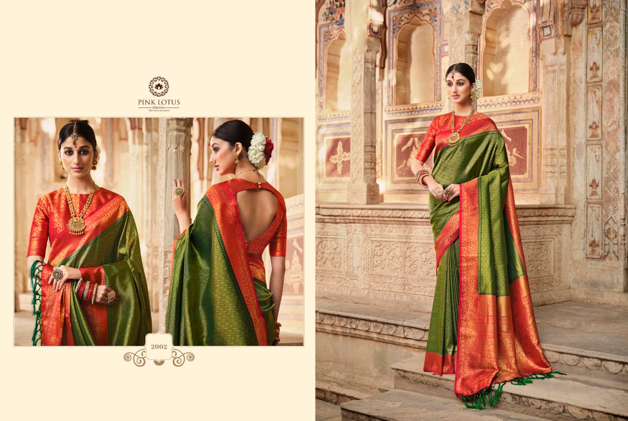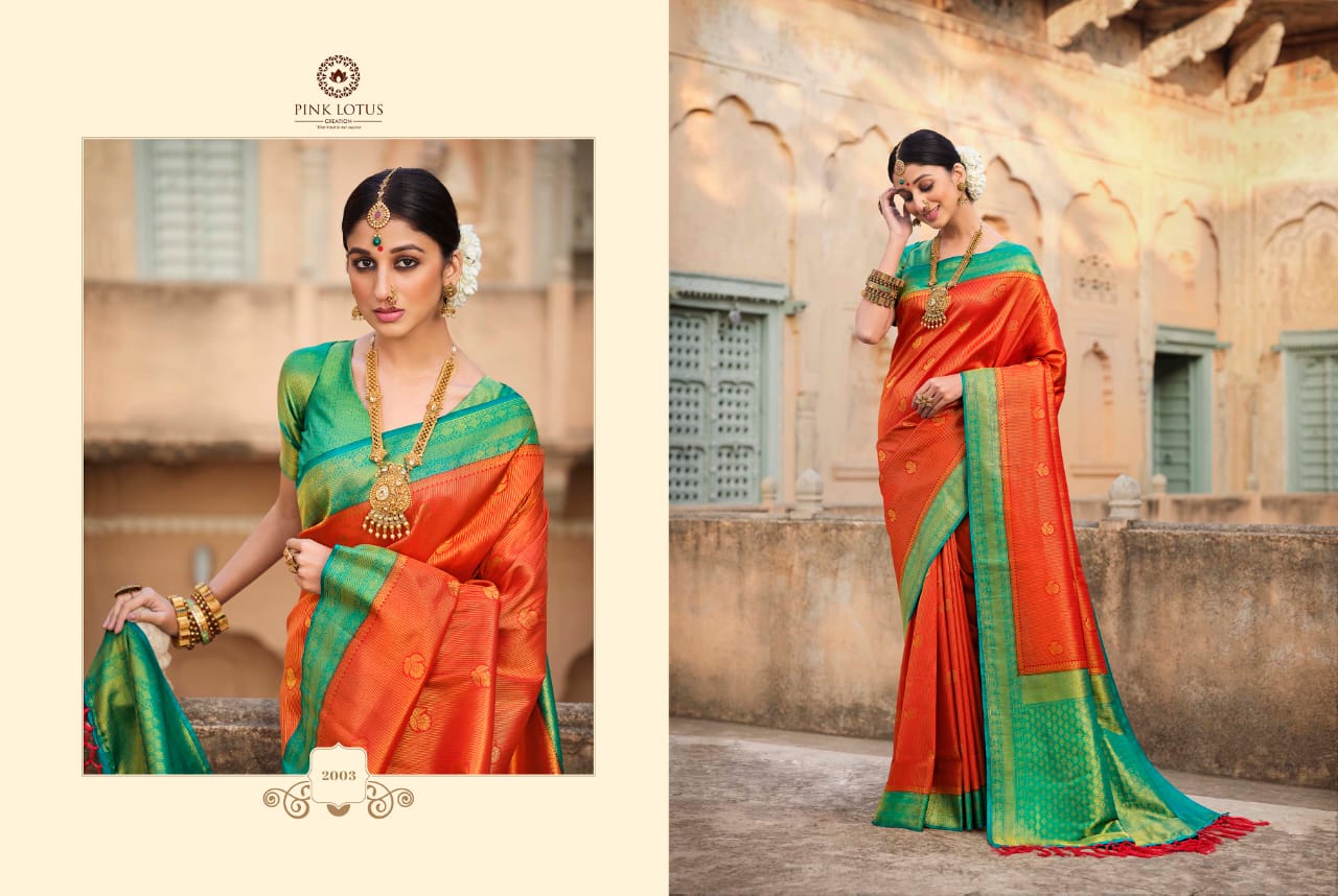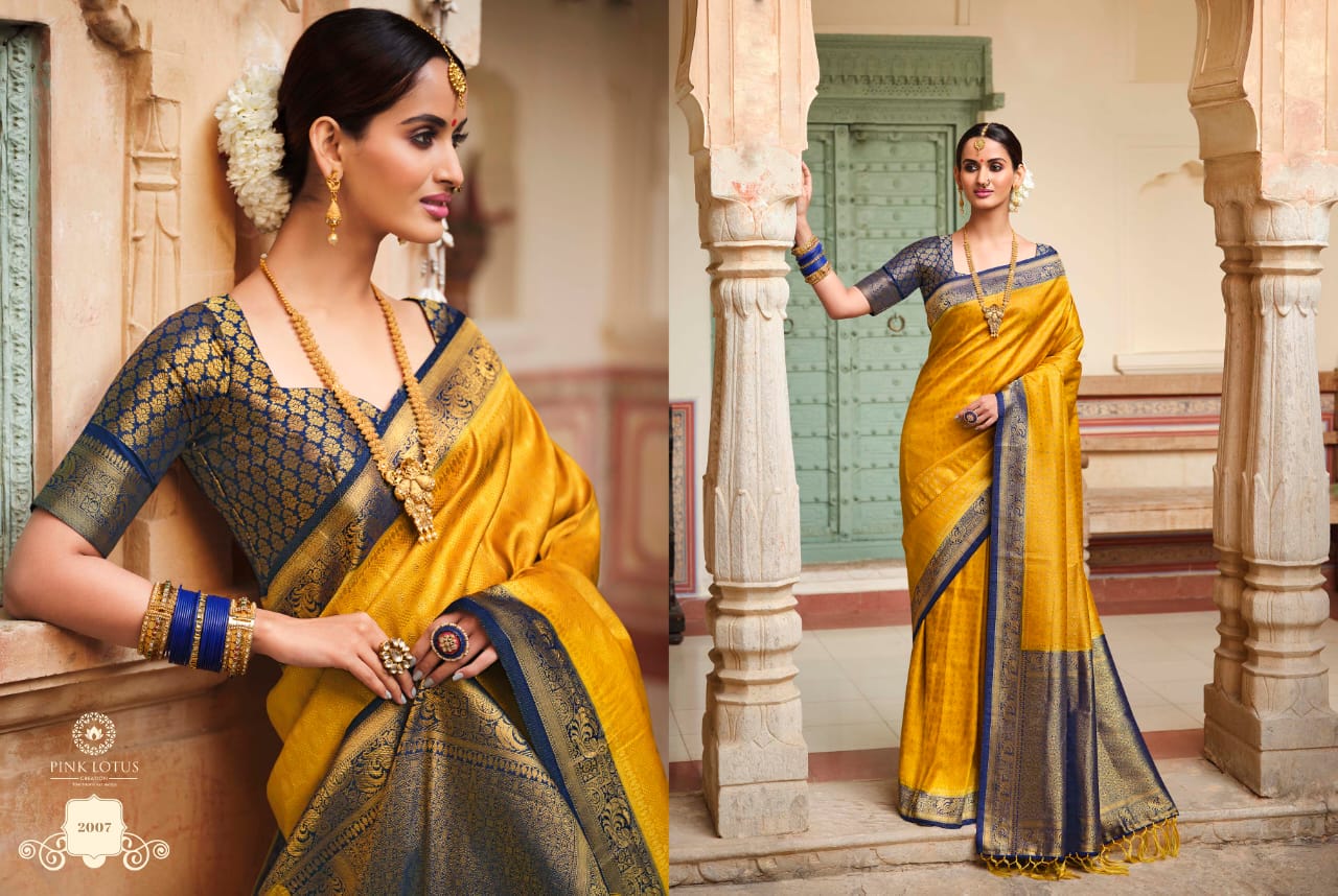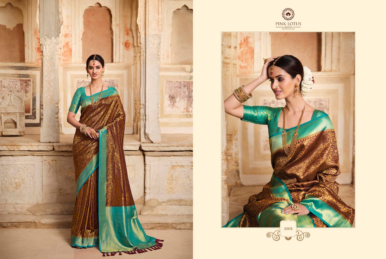 Sunheri Silk New Kanjivaram Silk Saree By Pink Lotus Single And Set Stockiest And Supplier From Surat